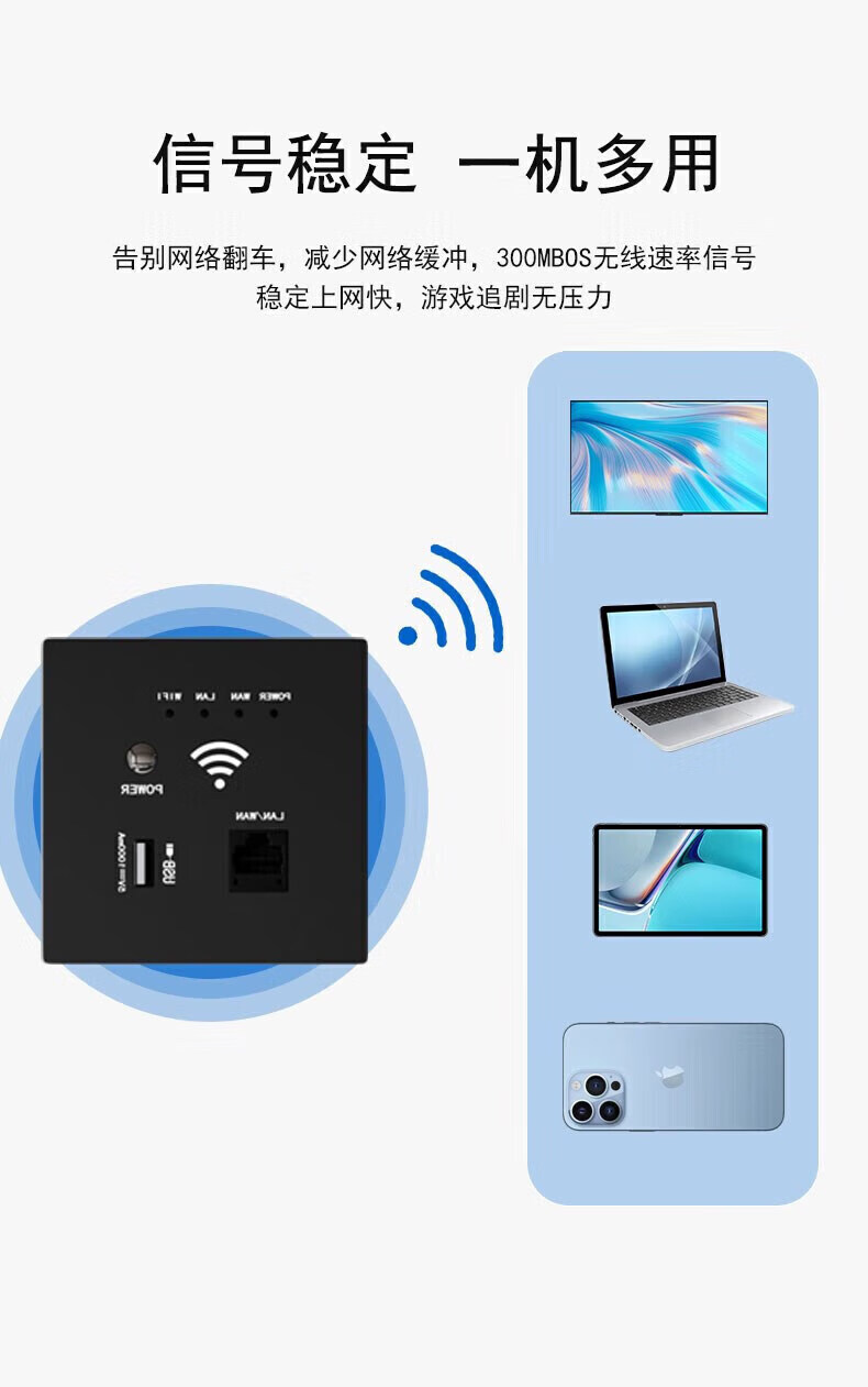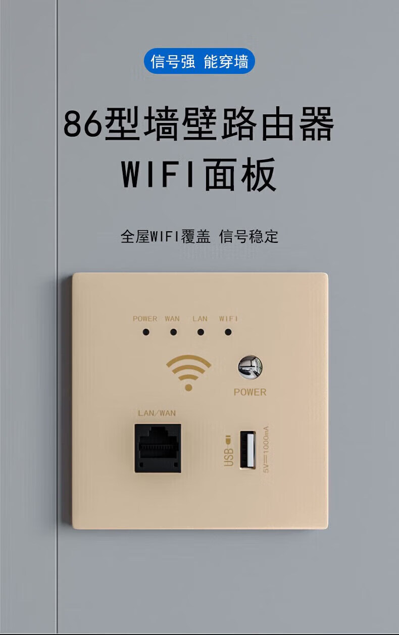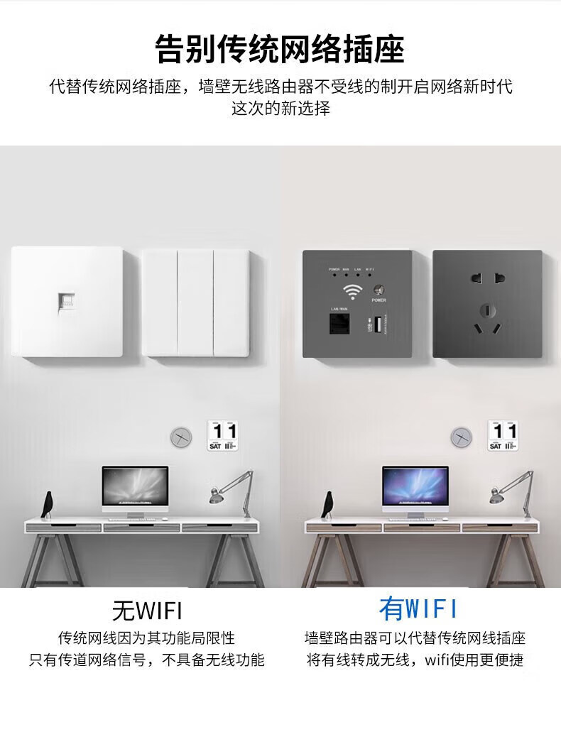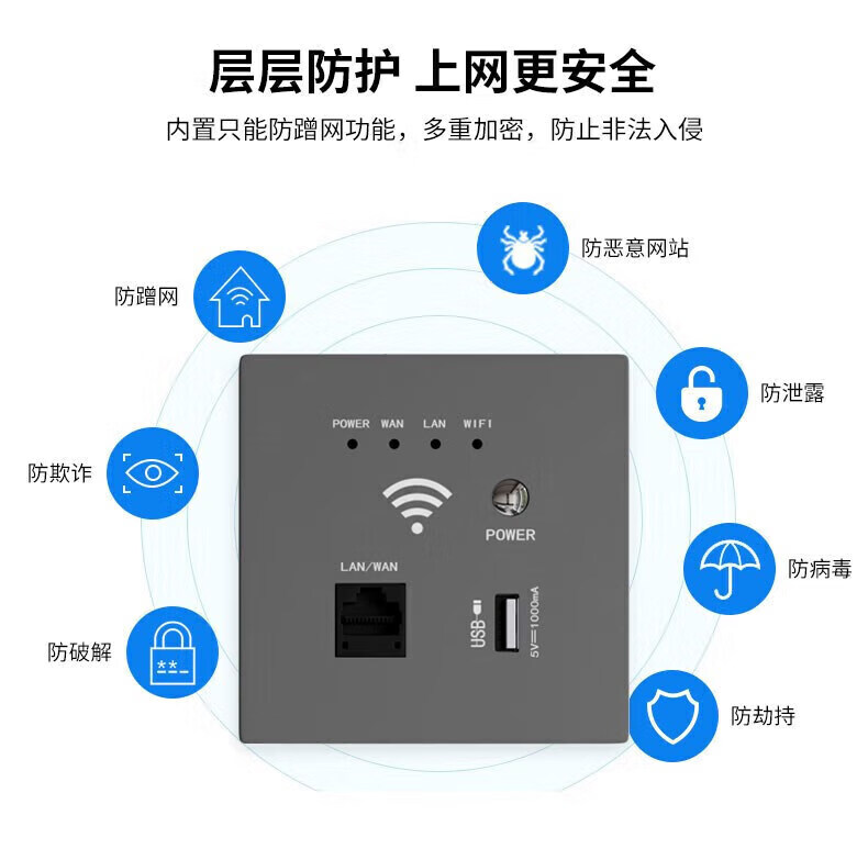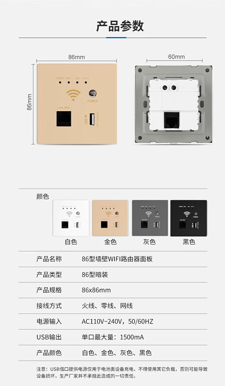 公正牛86型墙壁无线路由器千兆wifi插座酒入墙式AP智能面板灰色 标准款300M灰色零火线 标准款30