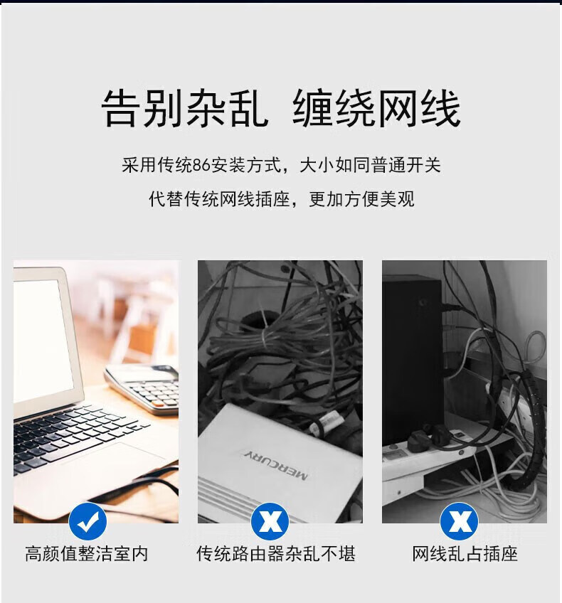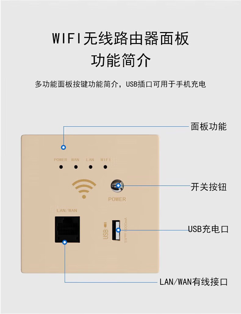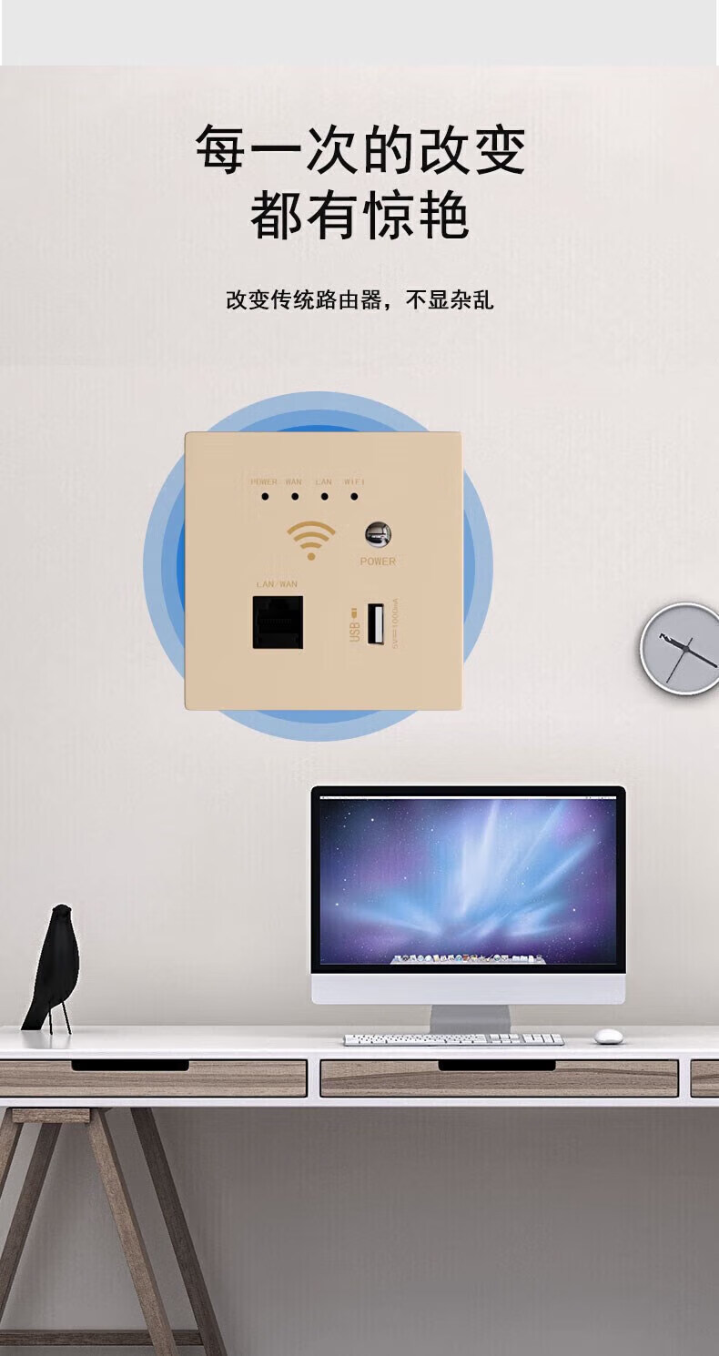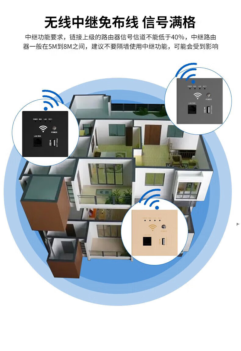 公正牛86型墙壁无线路由器千兆wifi插座酒入墙式AP智能面板灰色 标准款300M灰色零火线 标准款30