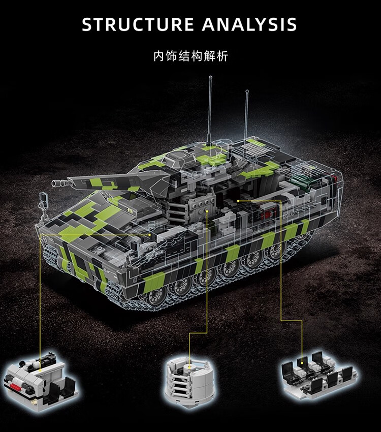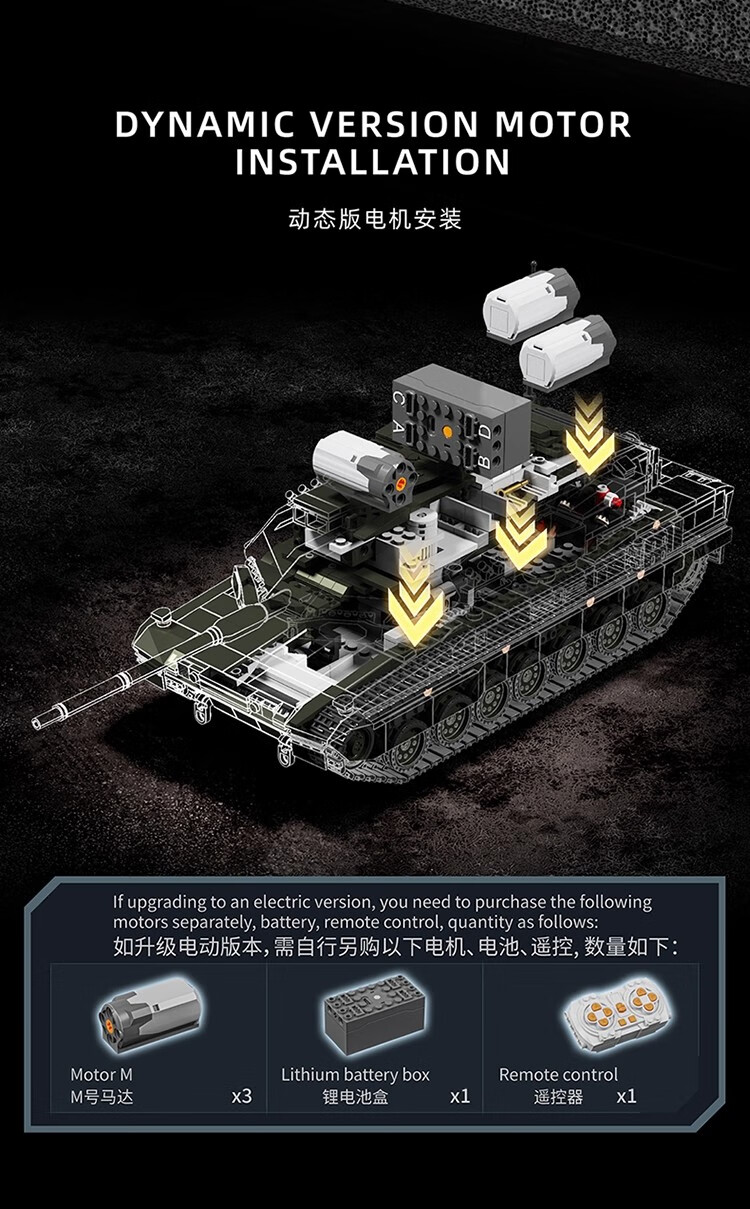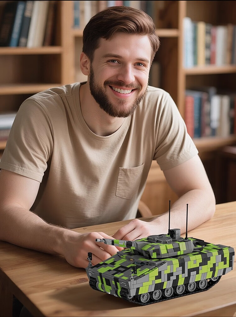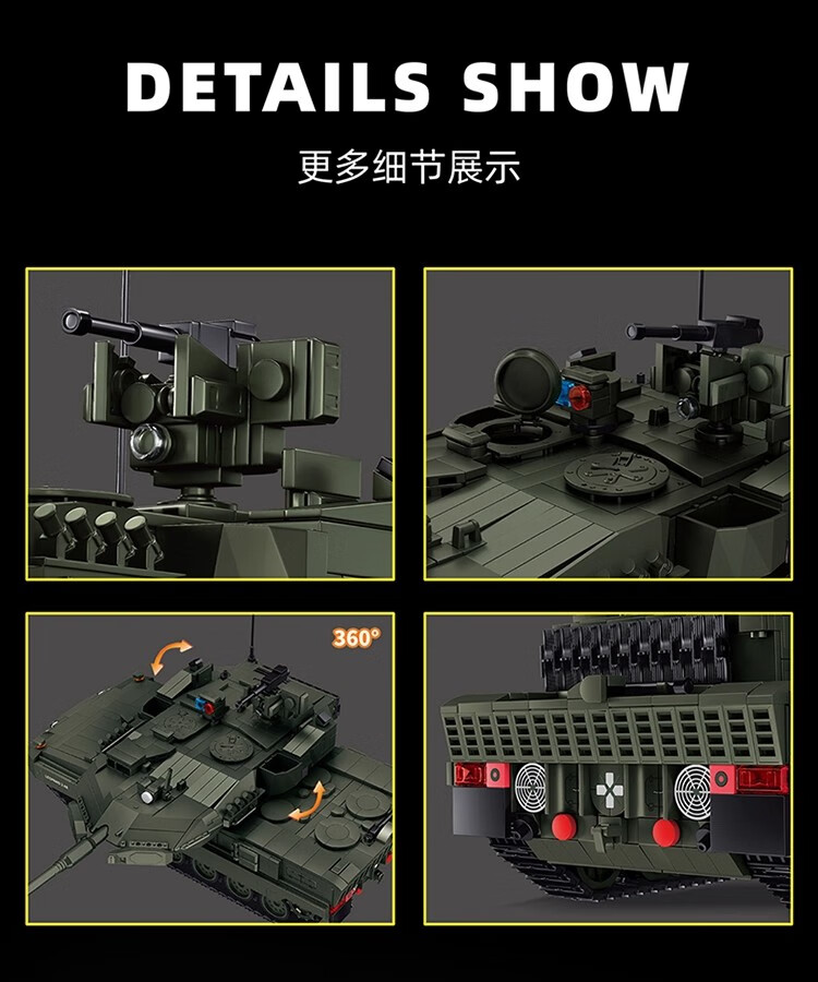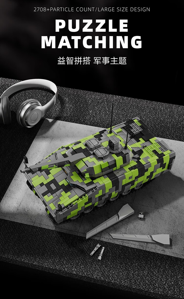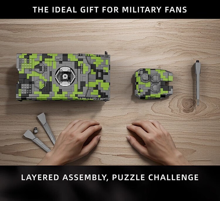 Fanqu Ferngesteuerter Panzerzerstörer, gepanzertes Kinderfahrzeug, zusammengebauter Baustein, Spielzeug, Junge, Militärserie, Modell, Geburtstagsgeschenk, ferngesteuerter K2 Black Panther Panzer, 611 Partikel