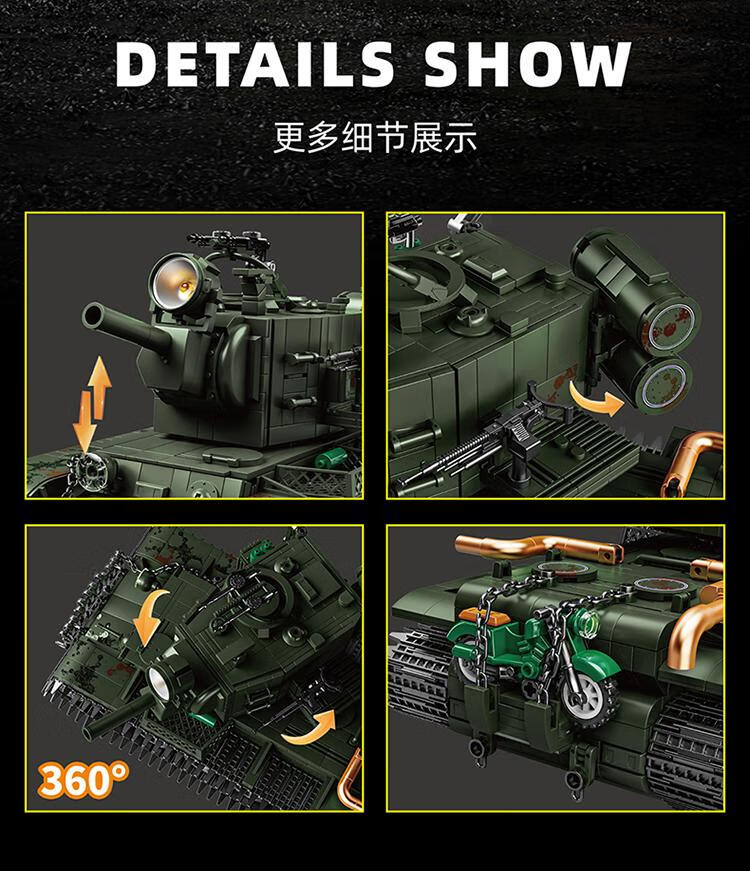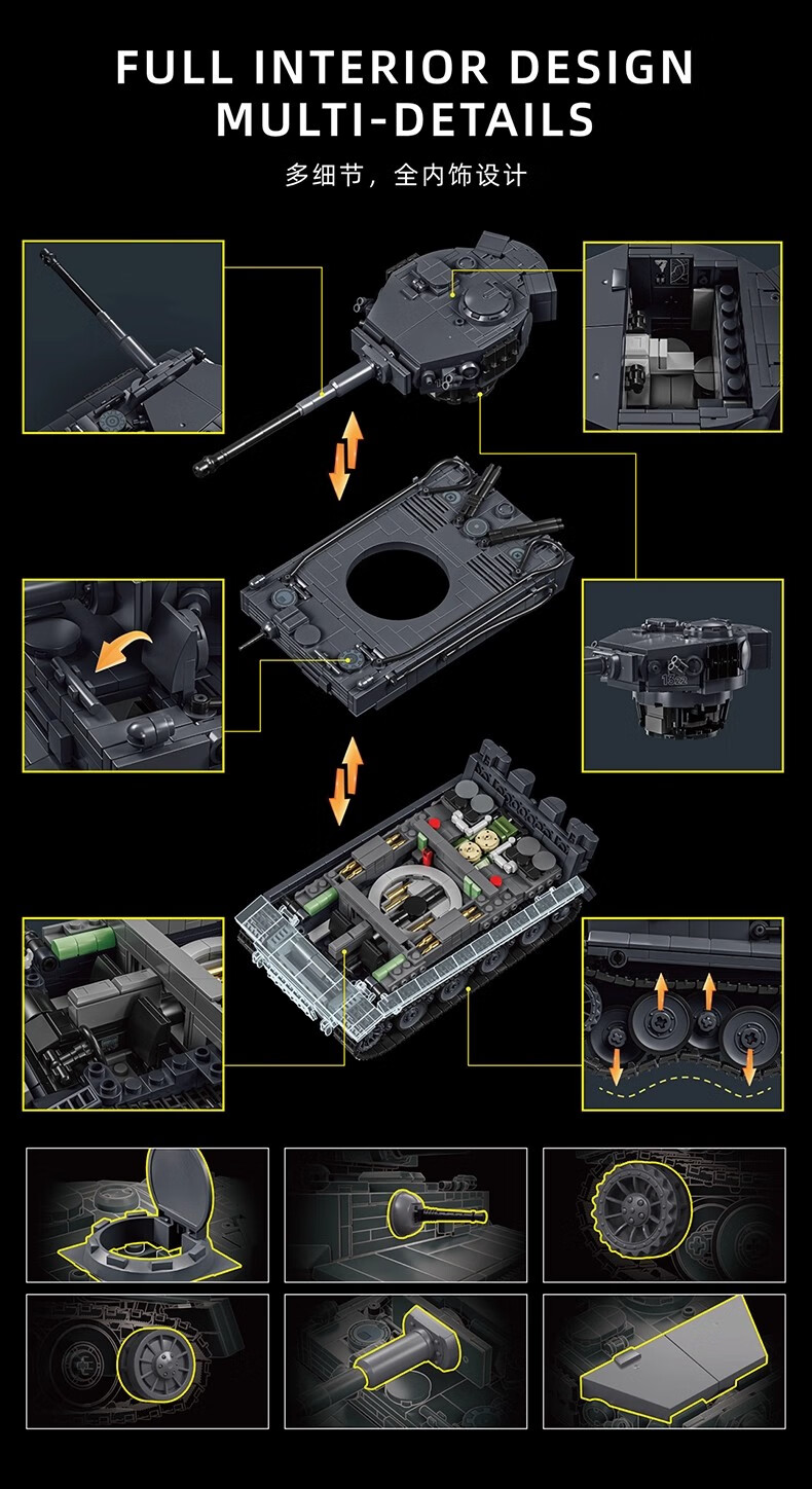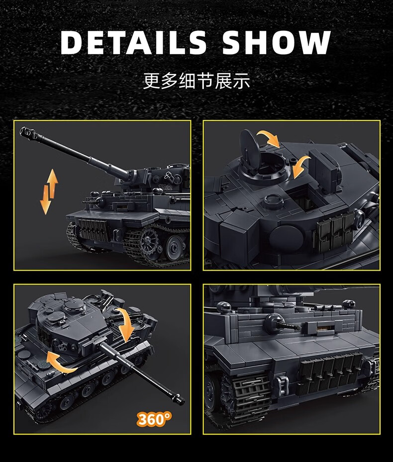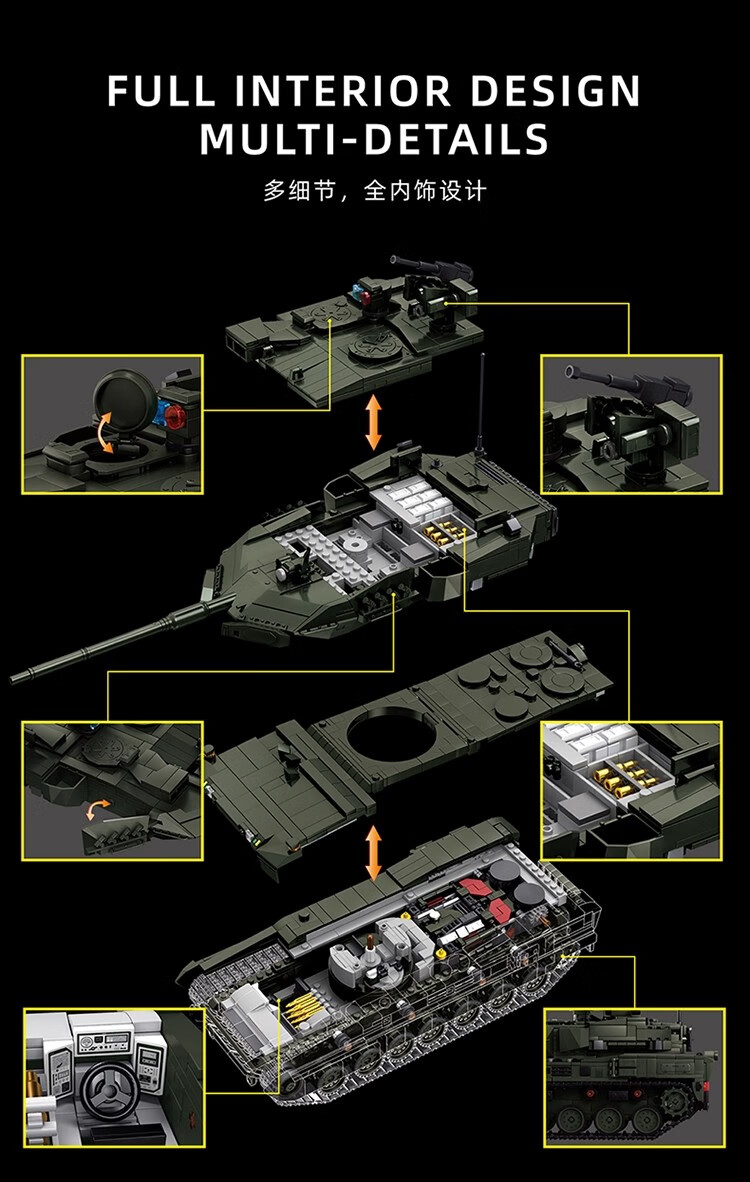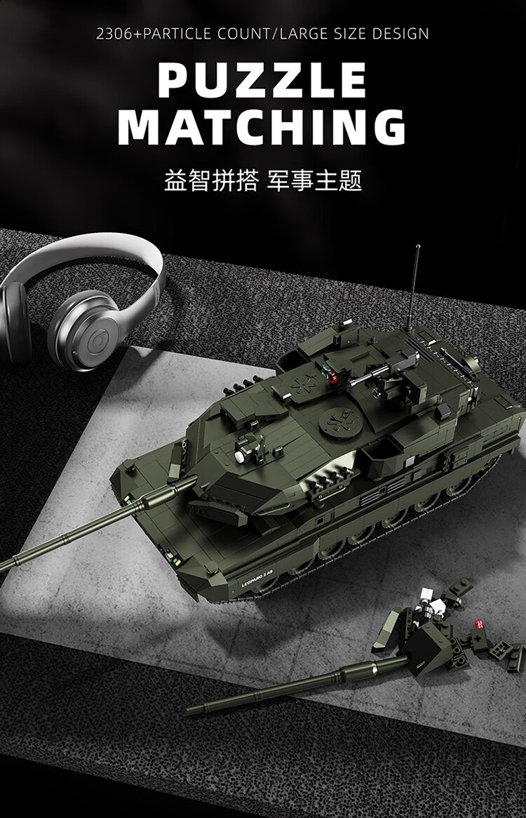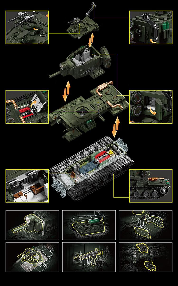 Fanqu Ferngesteuerter Panzerzerstörer, gepanzertes Kinderfahrzeug, zusammengebauter Baustein, Spielzeug, Junge, Militärserie, Modell, Geburtstagsgeschenk, ferngesteuerter K2 Black Panther Panzer, 611 Partikel
