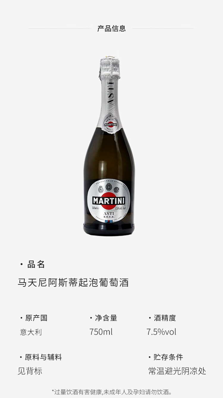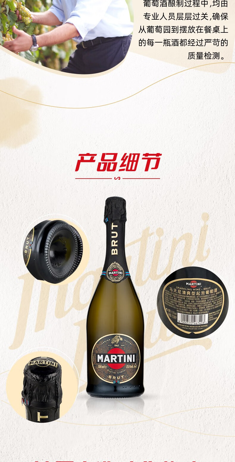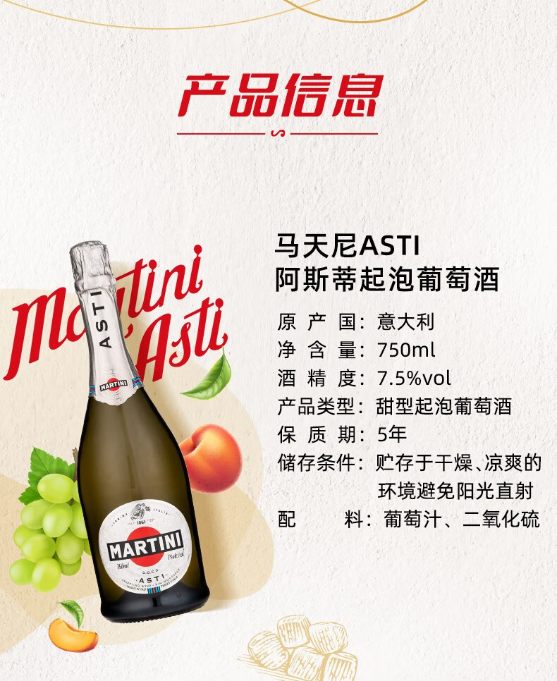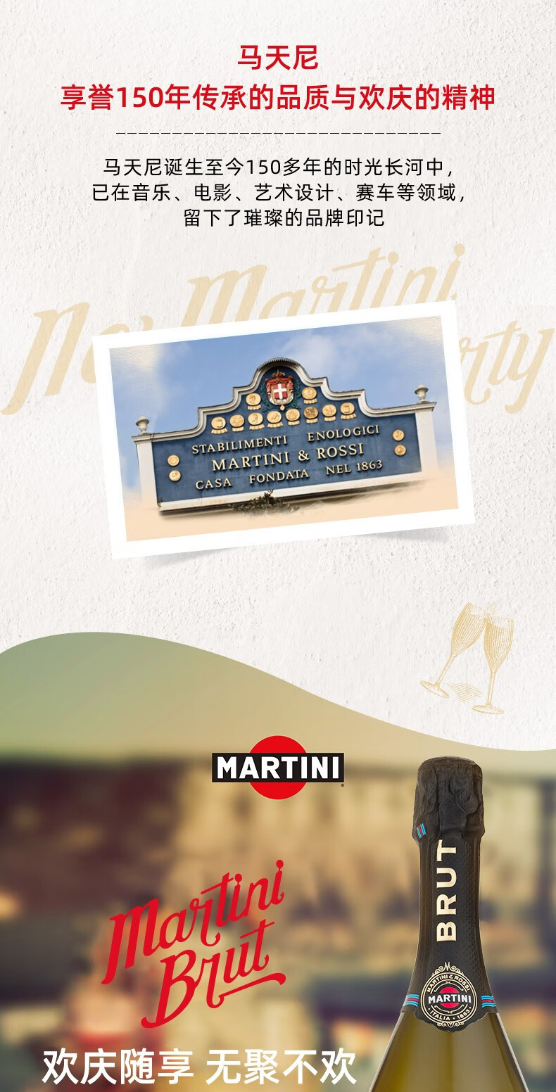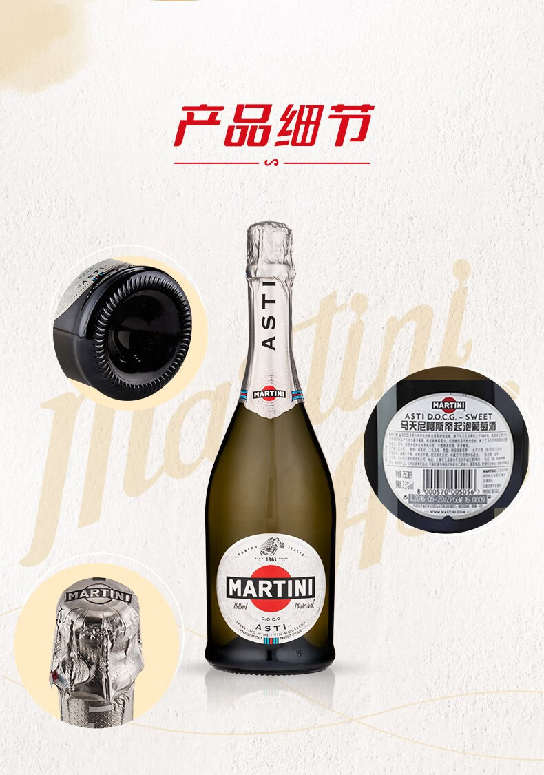 Martini genuine licensed sparkling wine slightly tipsy liqueur Xianshanlu foreign wine imported from Italy for holiday gifts Boge natural high-bubbly wine 750ml