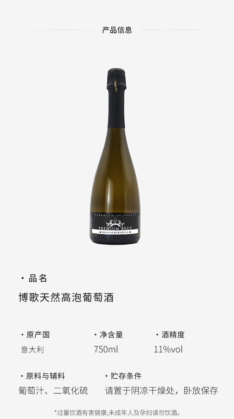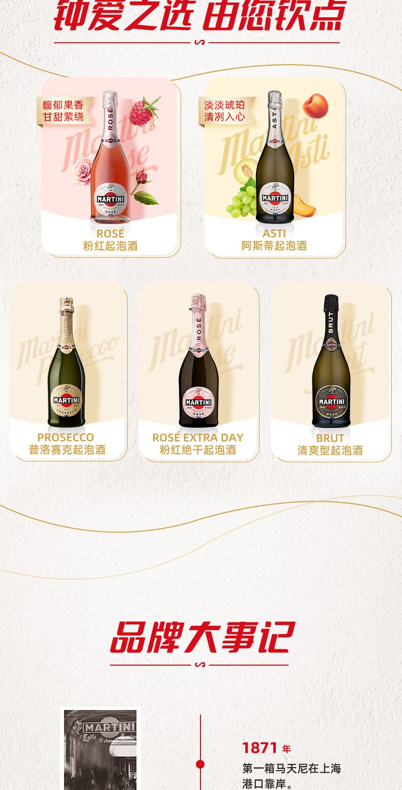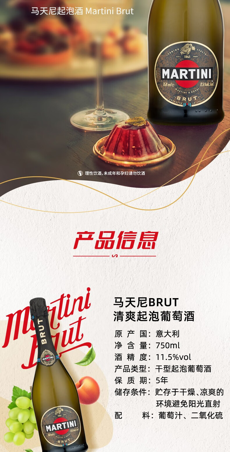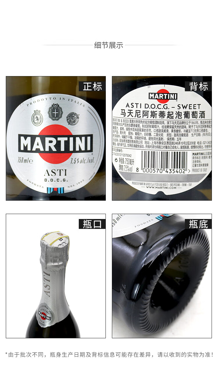 Martini genuine licensed sparkling wine slightly tipsy liqueur Xianshanlu foreign wine imported from Italy for holiday gifts Boge natural high-bubbly wine 750ml