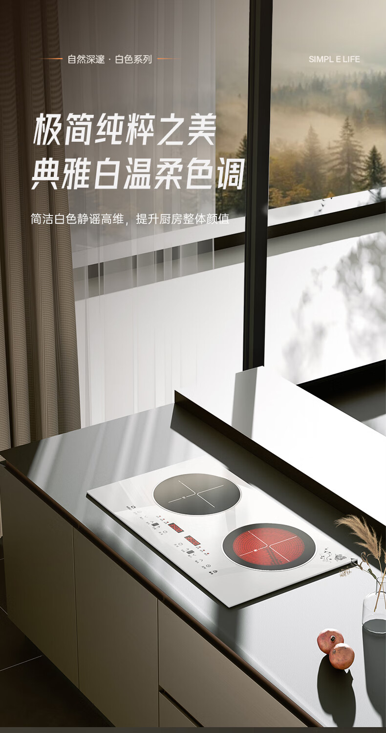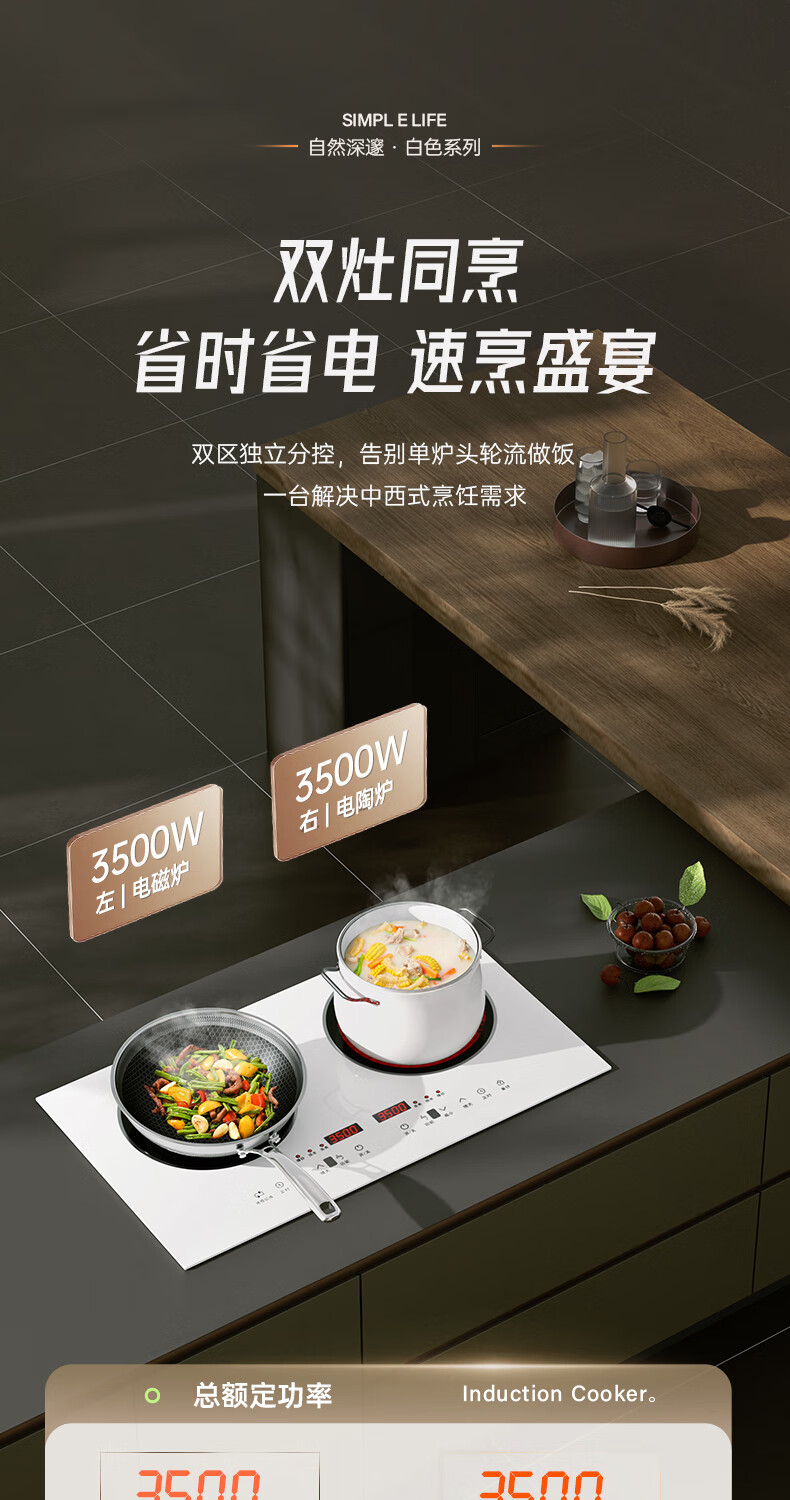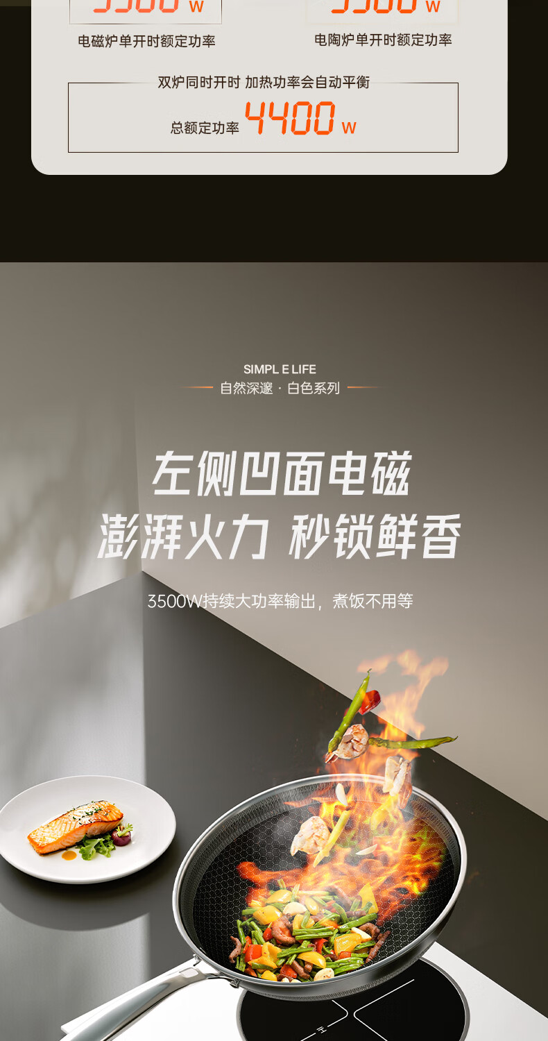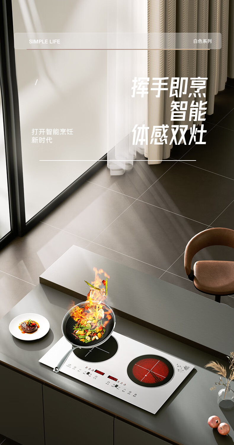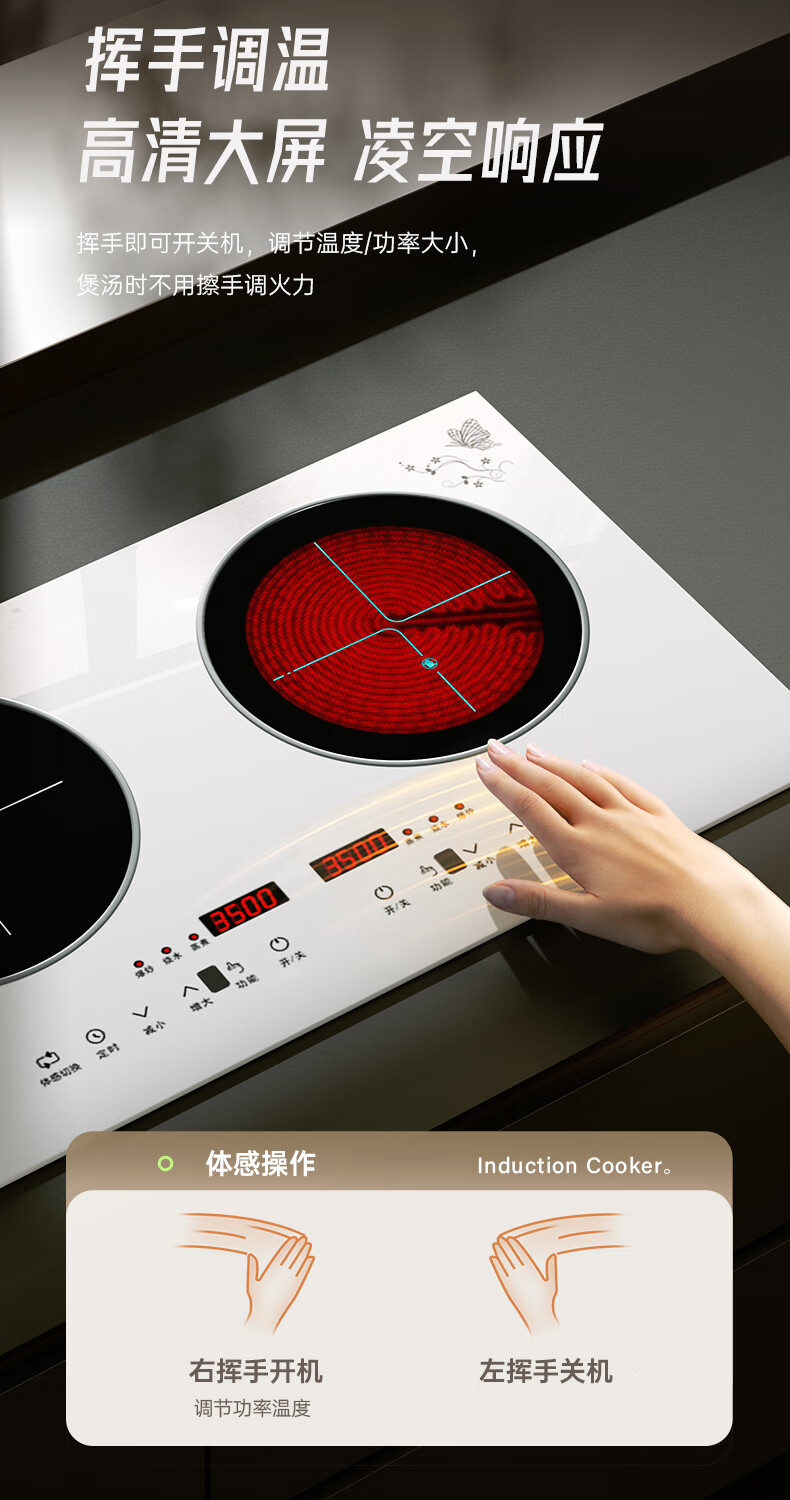 热情好太太白色4400W瓦大功率猛火双头平面电磁炉智能人机交互隔空操控家用电陶炉一体灶台镶嵌入式爆炒省电 白[套餐]-左平电磁3500W右平电陶3500W 智能体感(互控4400W)