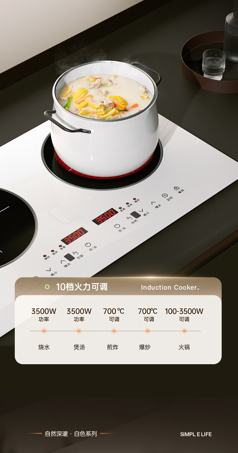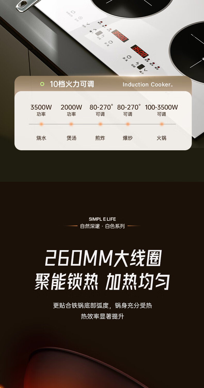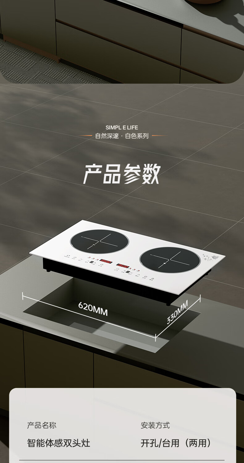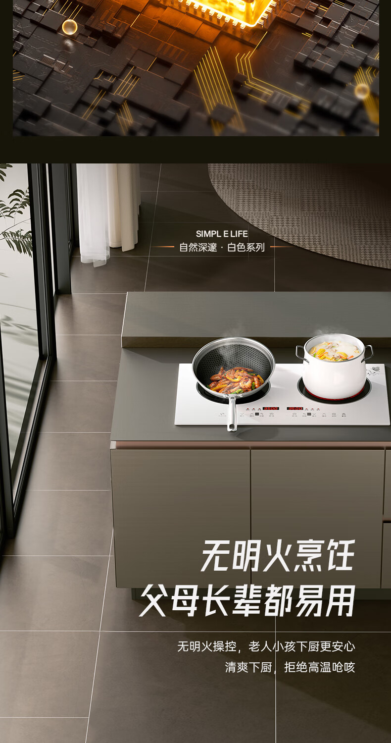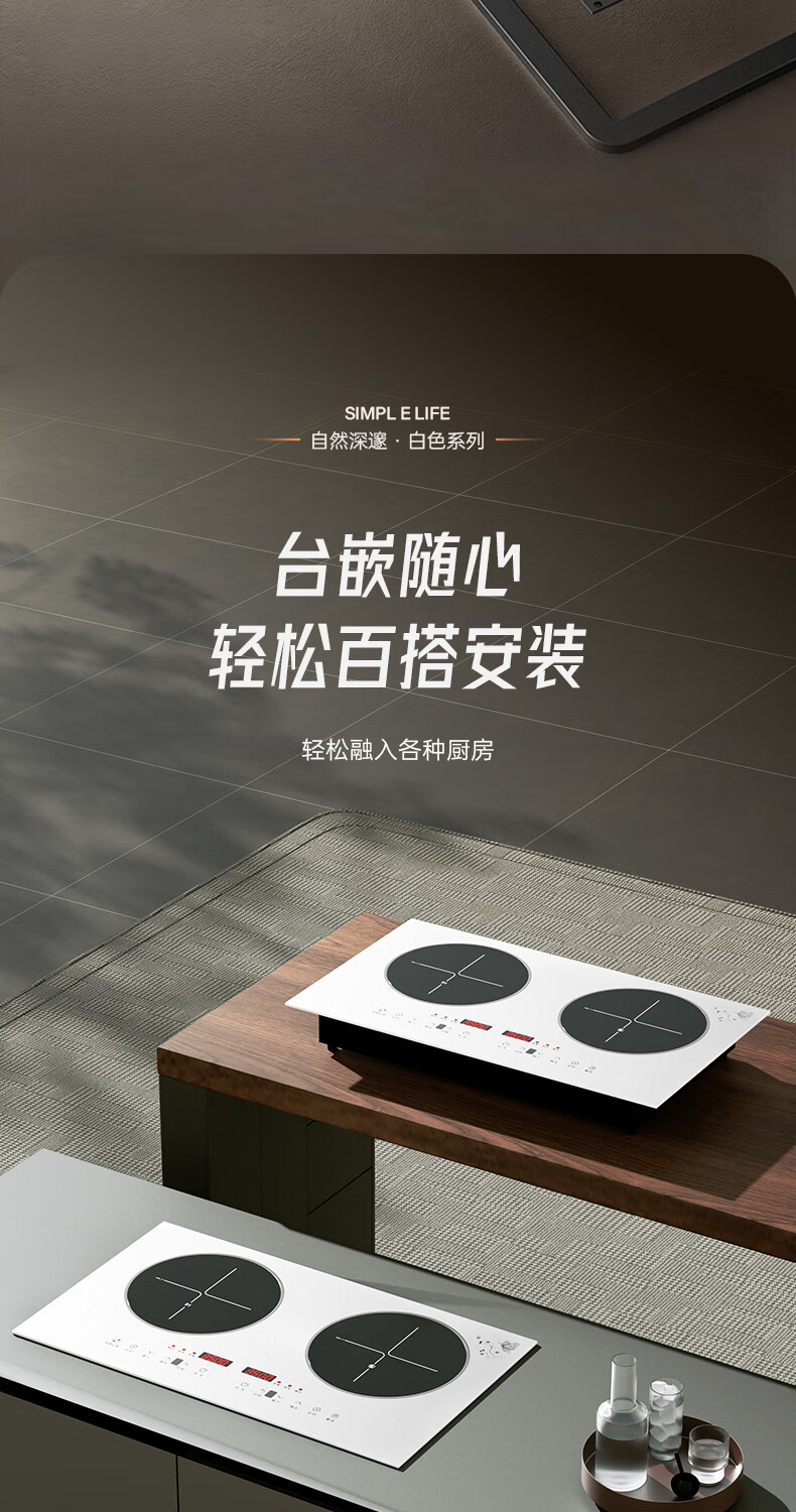 热情好太太白色4400W瓦大功率猛火双头平面电磁炉智能人机交互隔空操控家用电陶炉一体灶台镶嵌入式爆炒省电 白[套餐]-左平电磁3500W右平电陶3500W 智能体感(互控4400W)