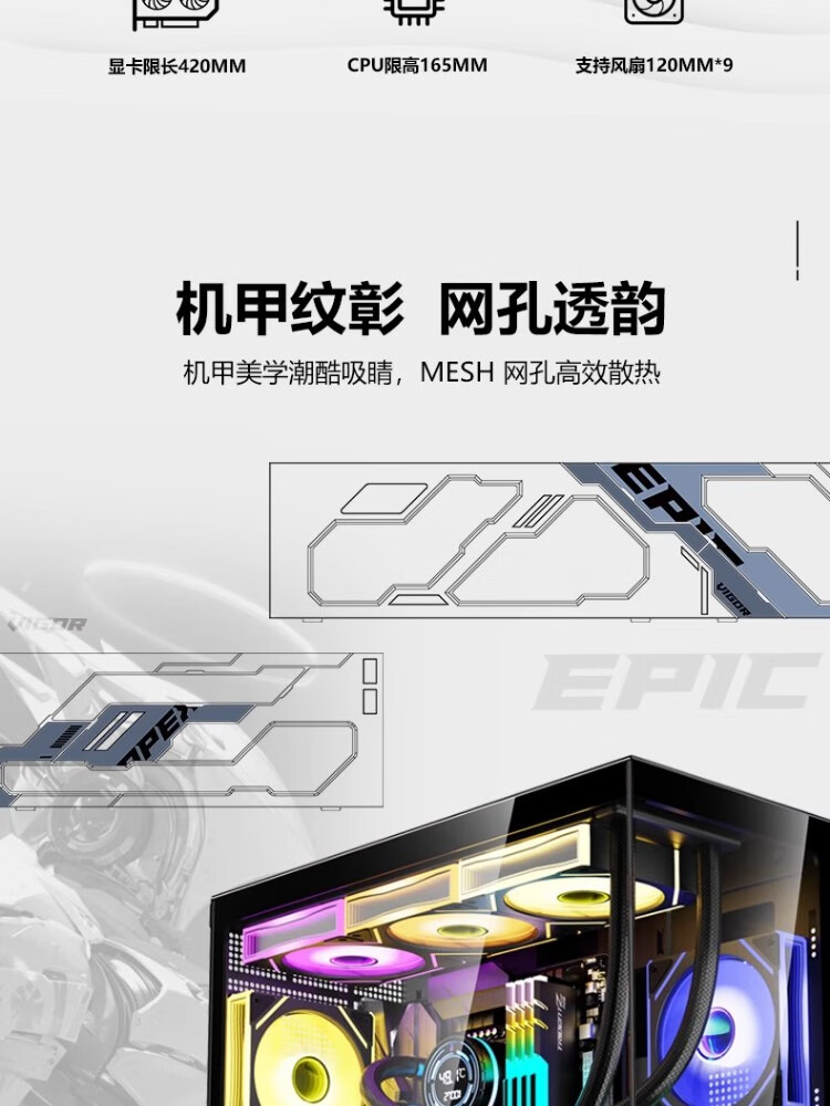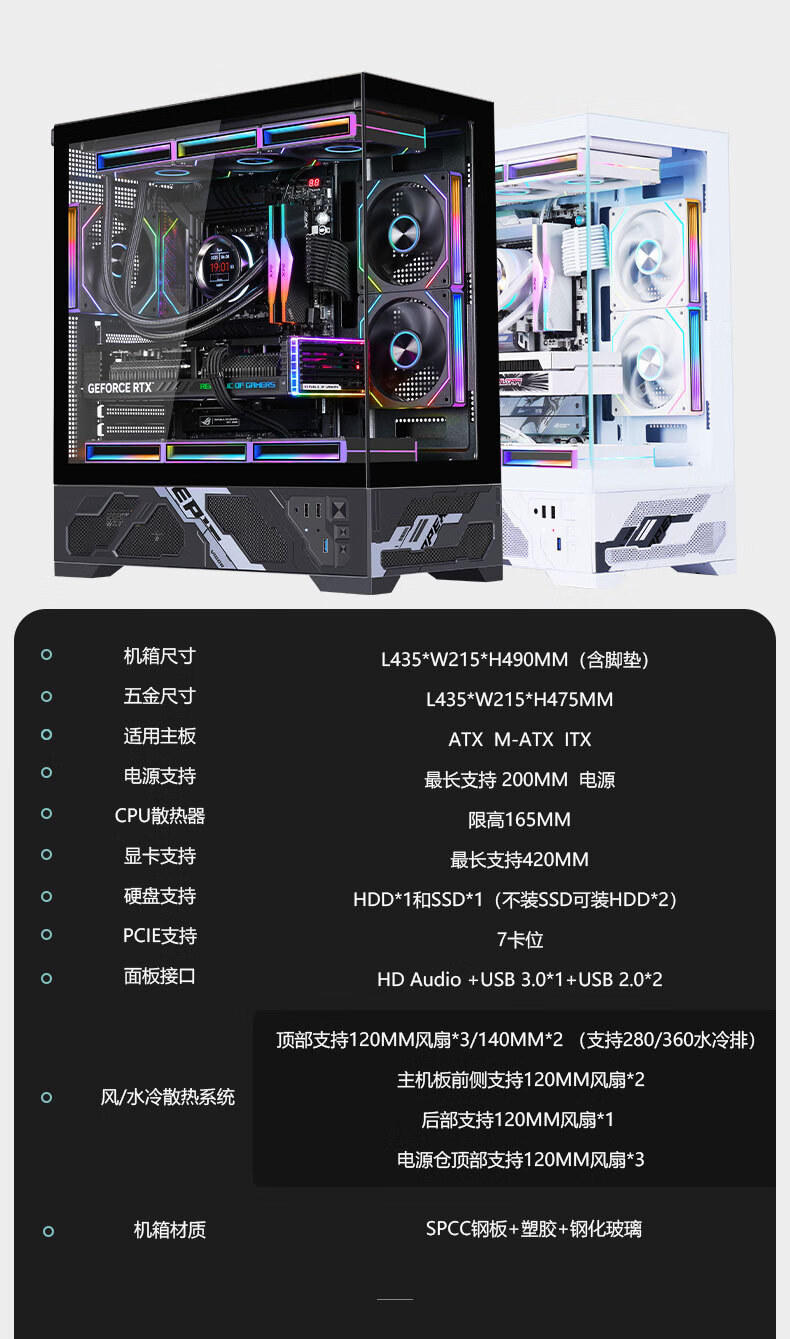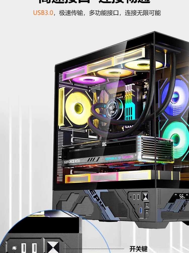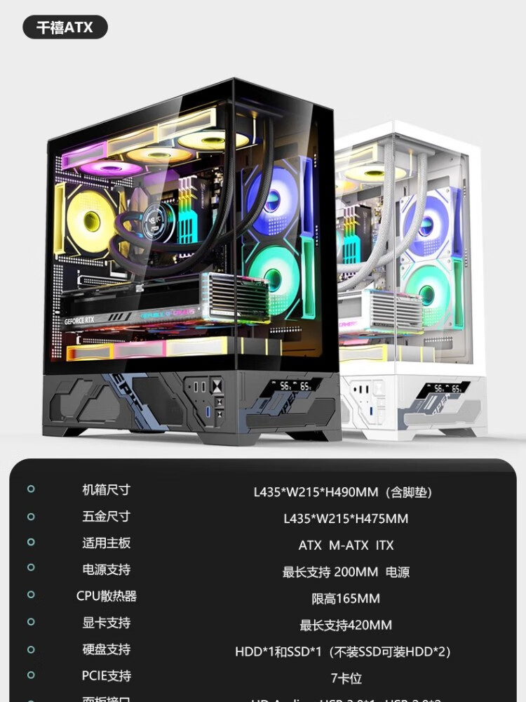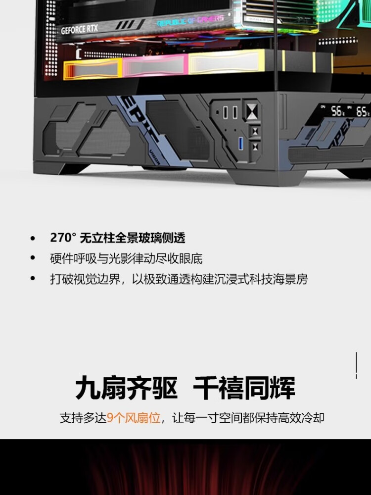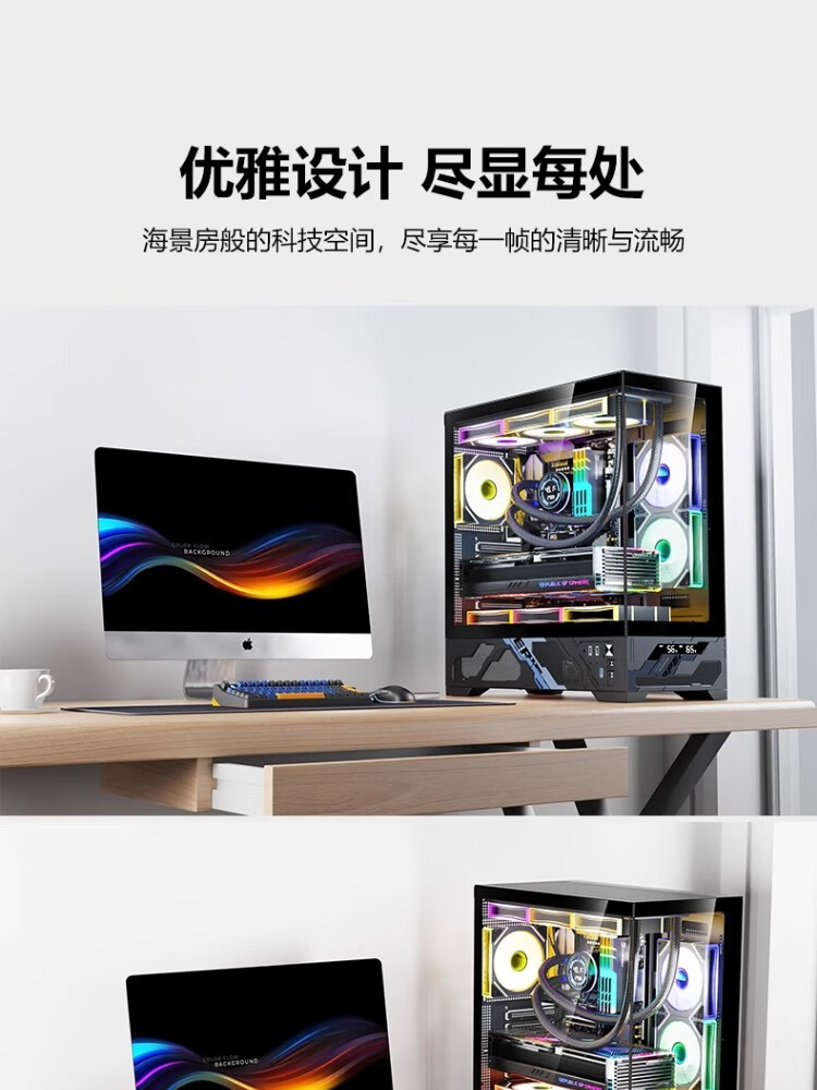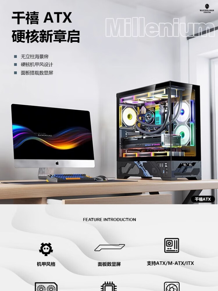 Wanjia Millennium ATX digital display version column-free sea view room chassis ATX motherboard 360 water-cooled desktop computer chassis temperature digital display 9 fan position large board 50 series long graphics card Millennium ATX standard white (digital display version)