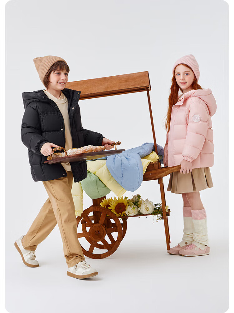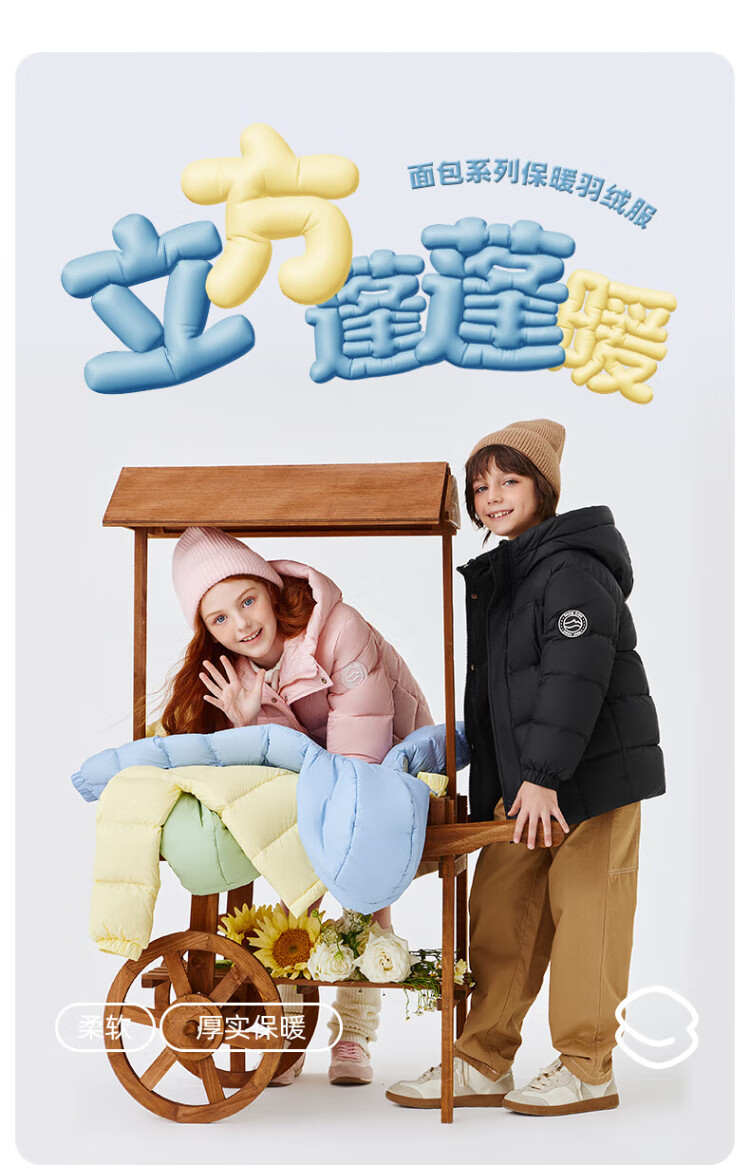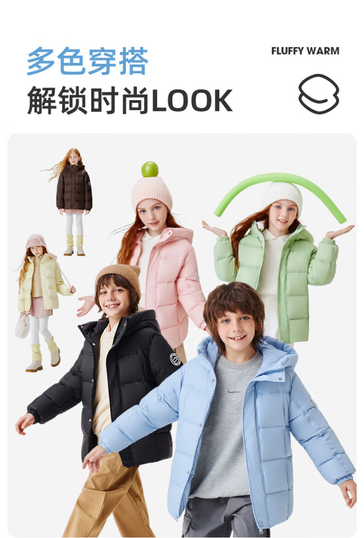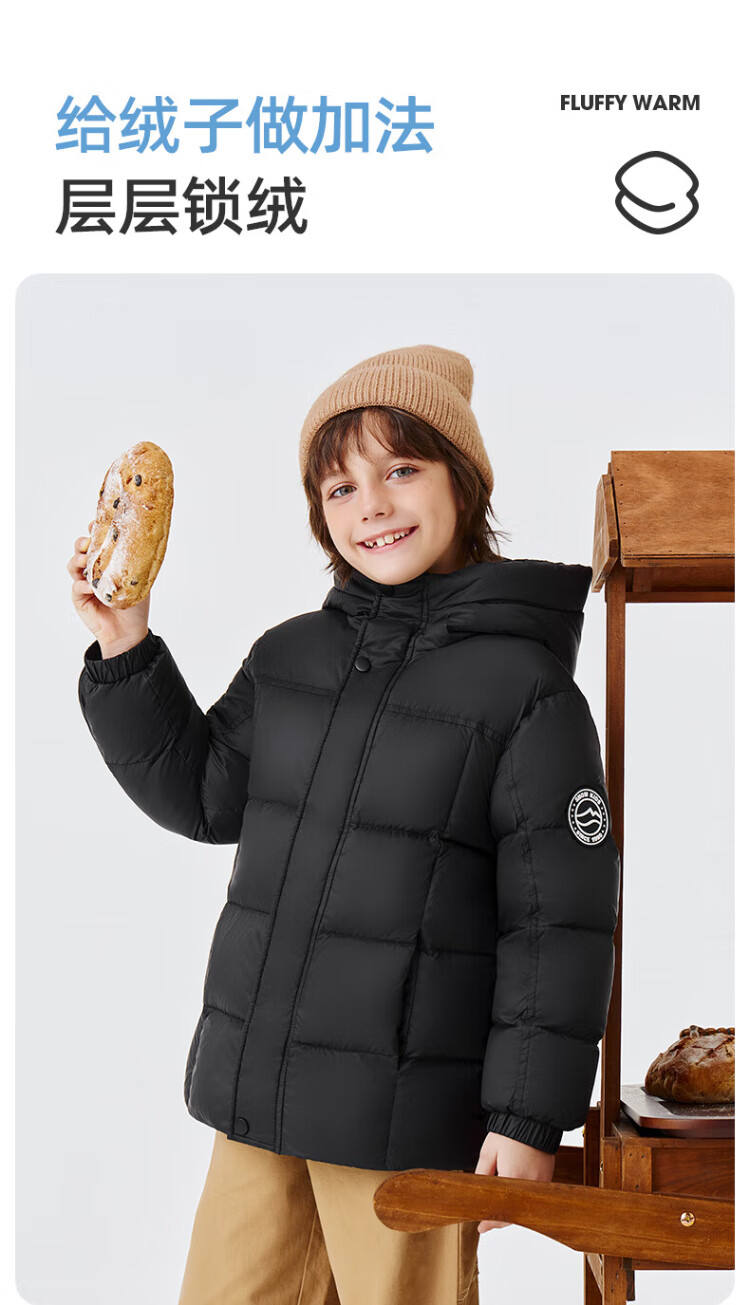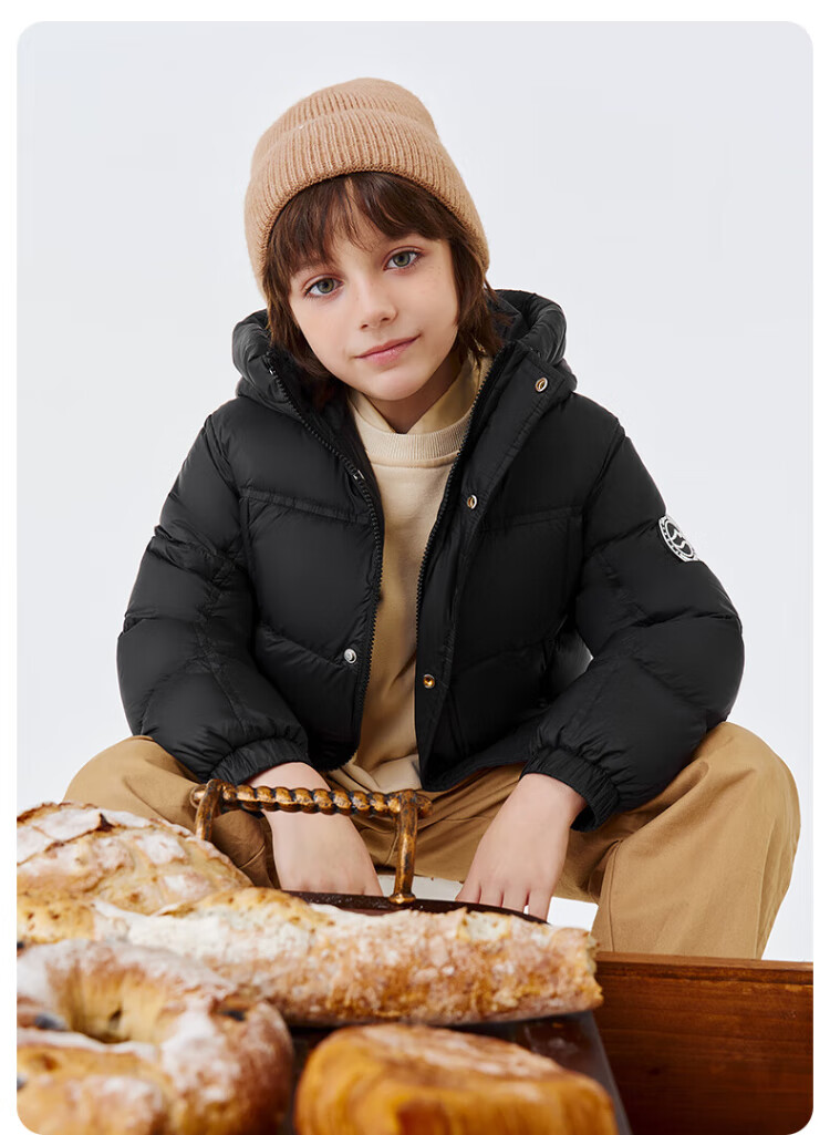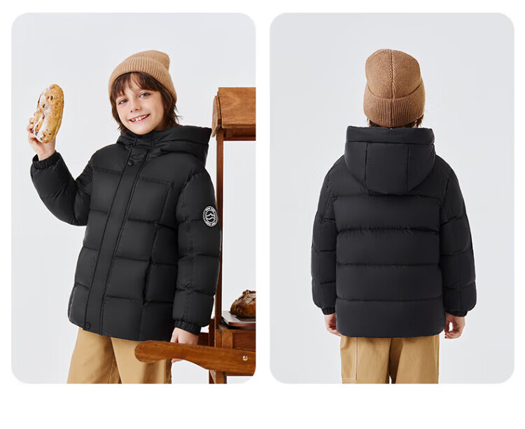 Flying in the Snow Children's Down Jacket for Boys and Girls Autumn and Winter New Thick Versatile Coldproof and Warm Bread Jacket Black 150