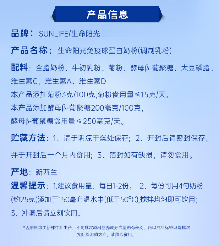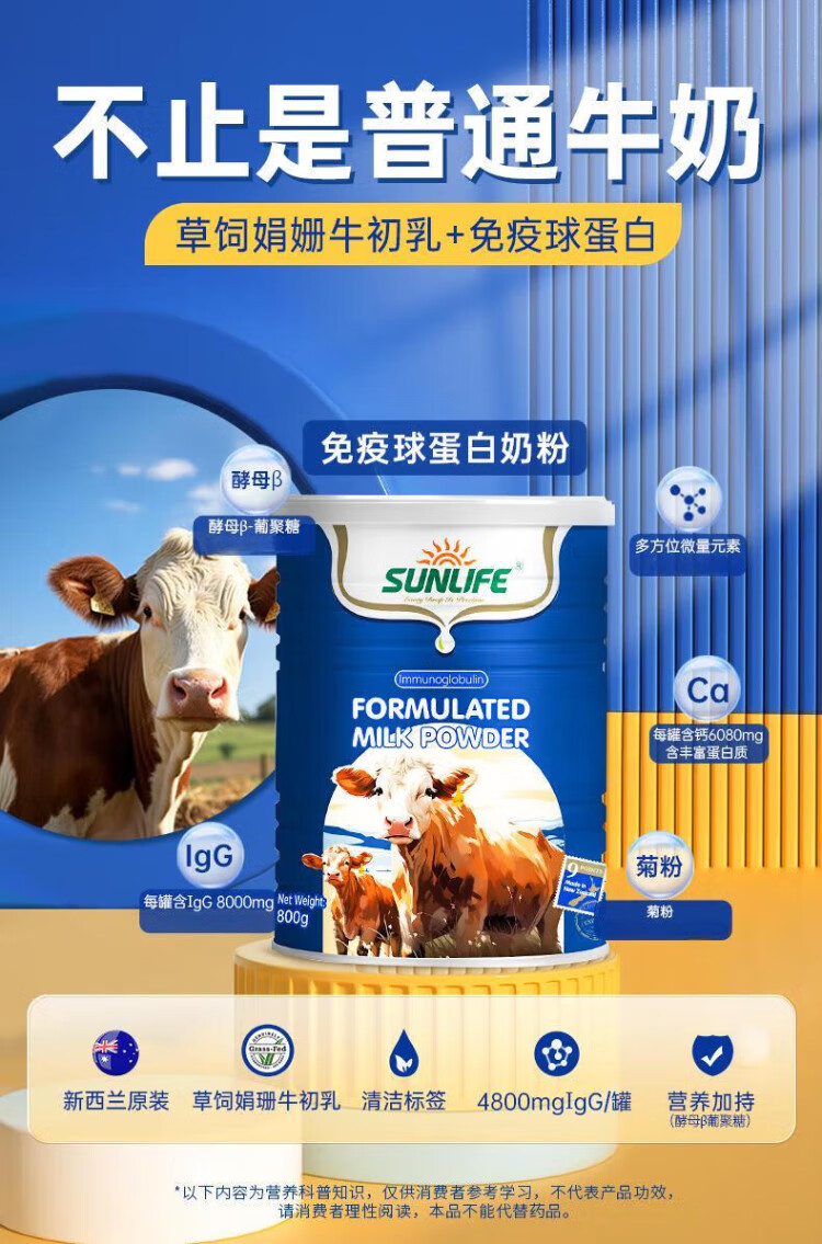 Life Sunshine Immune Protein Milk Powder 20% Immunoglobulin Modulated Milk Powder 800g/can New Zealand imported colostrum one can