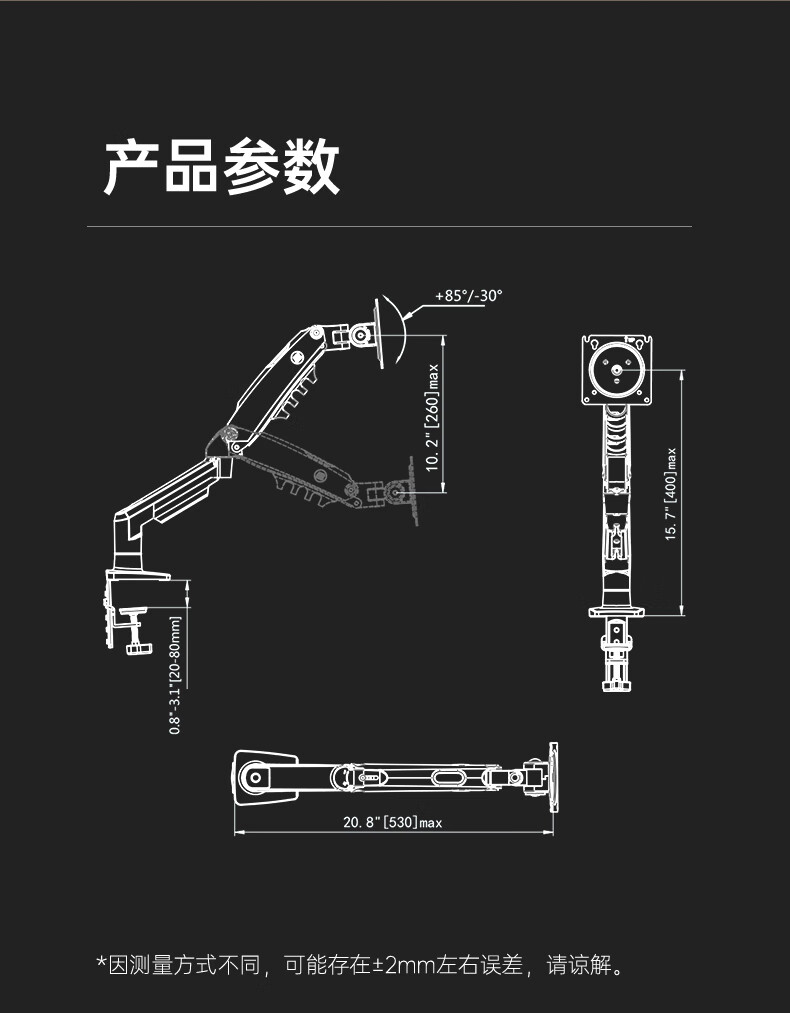 NB (ERGONOMISCH) NB Computer-Monitorständer, Roboterarm, Dual-Screen-Monitor, einziehbarer, anhebbarer, freitragender Ständer, Basissäulenstil, schwarz, 2–9 kg tragende Unterstützung, umgedrehte Installation