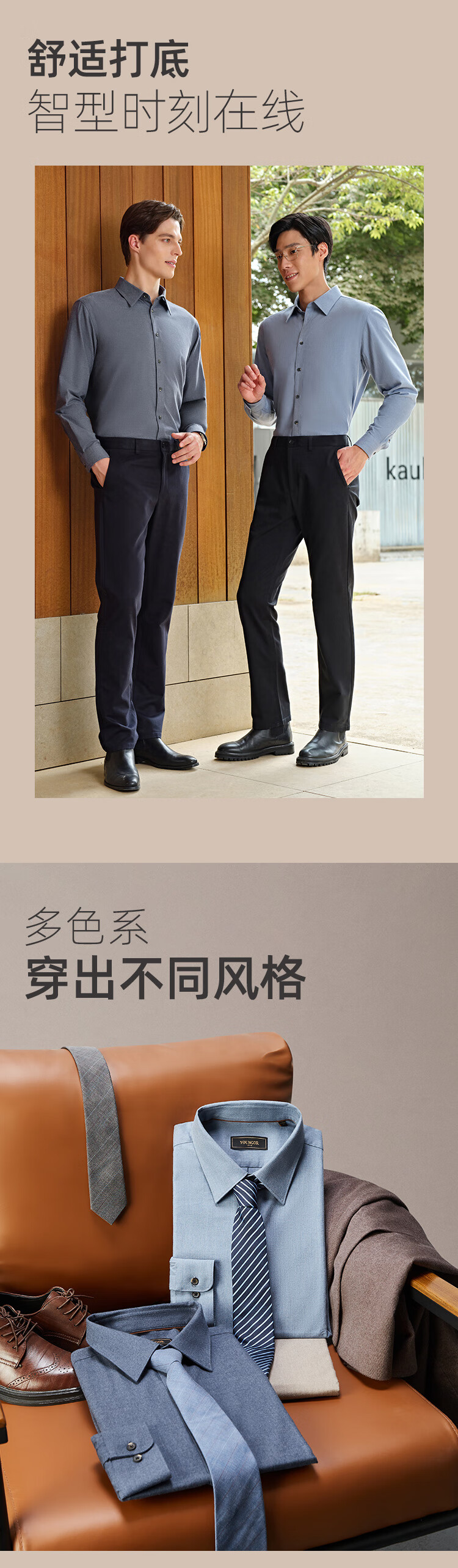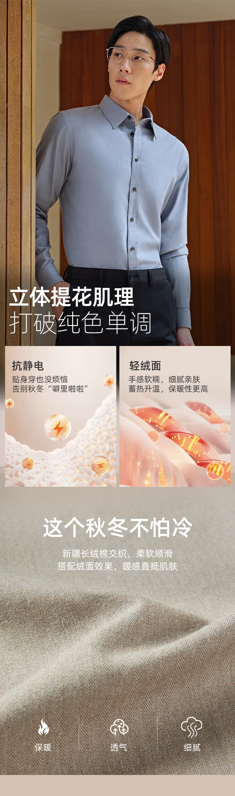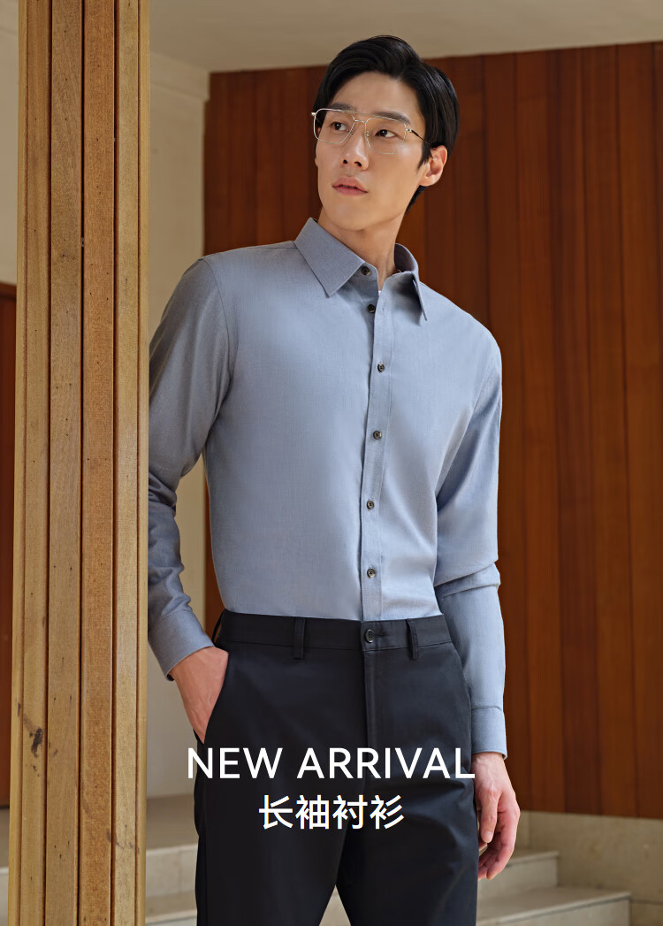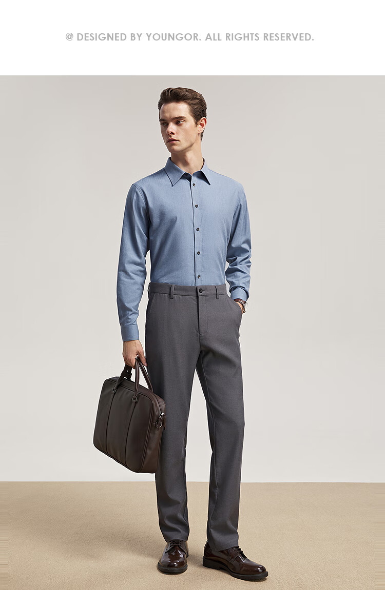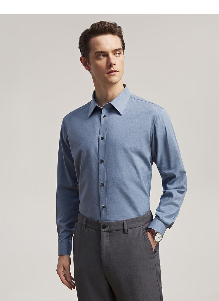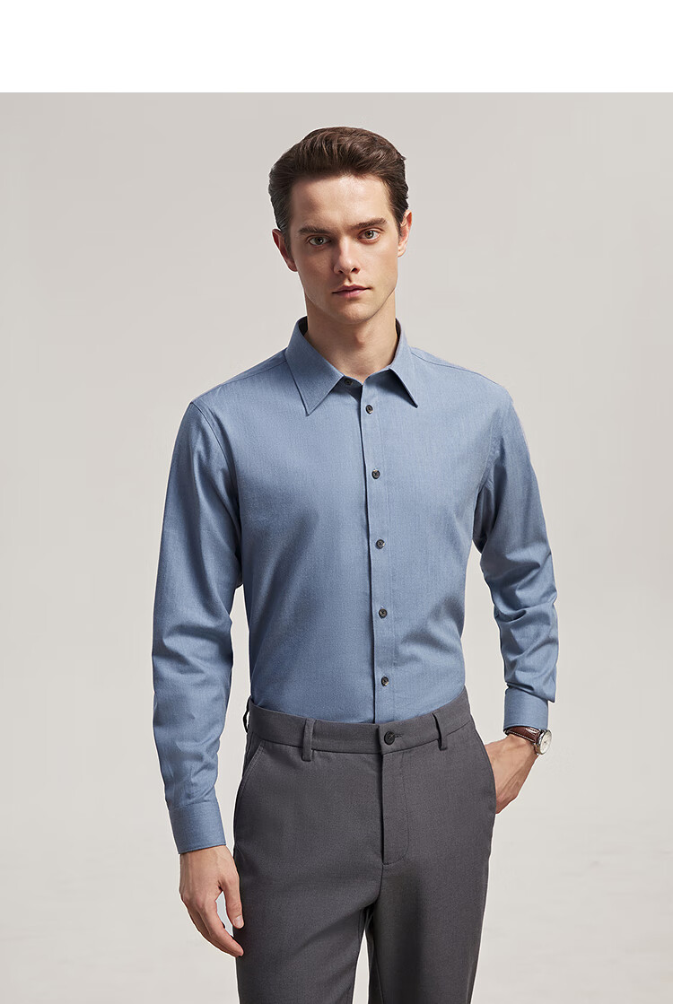 Chemise à manches longues Youngor tissu mélangé de coton pour hommes chemise de couleur unie en velours complet chaud et confortable 2025 nouveau produit bleu VLRM119689HJA 41 (175/96A)