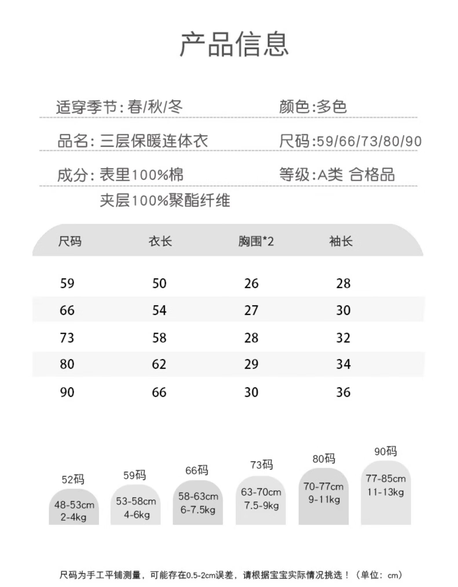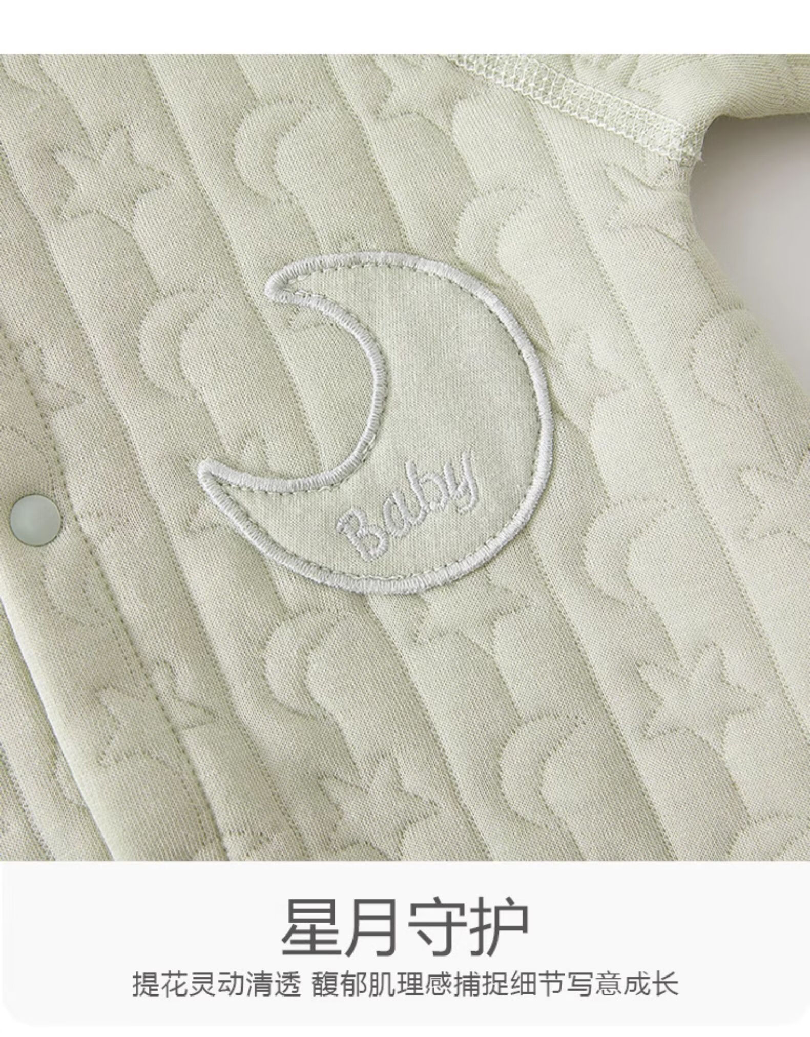 JOYNCLEON baby jumpsuit pure cotton spring and autumn newborn clothes for men and women, quilted warm folio clothes, medium-open star-yue milk white, 59cm, 1-3 months, weight 3.5-6.9kg