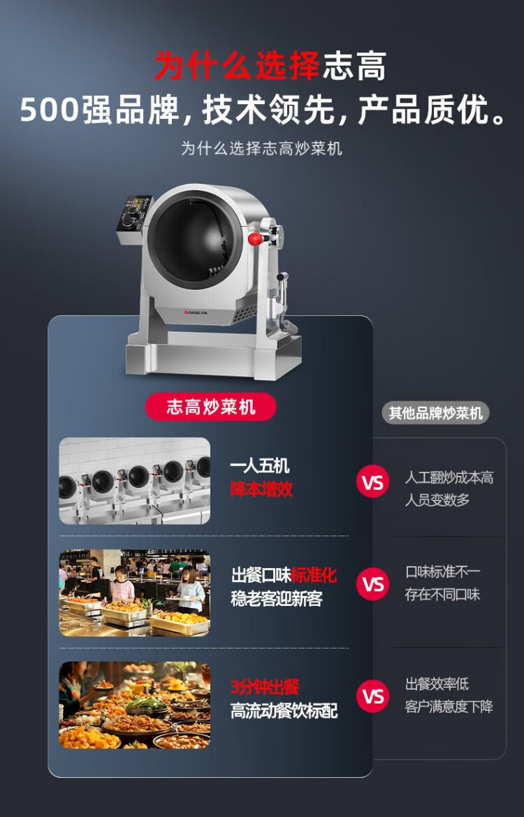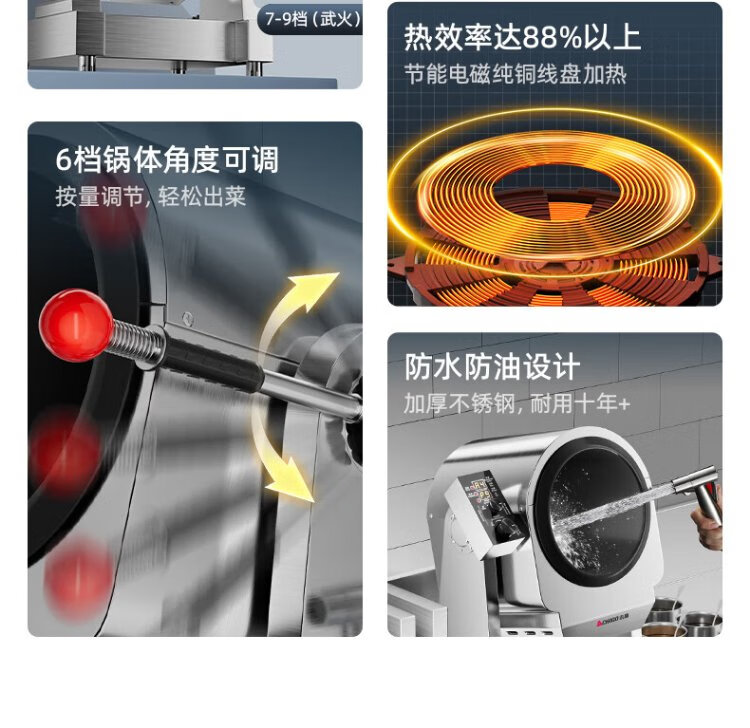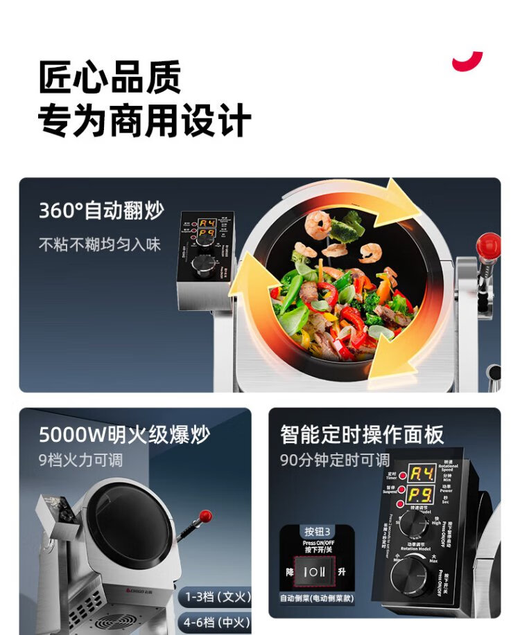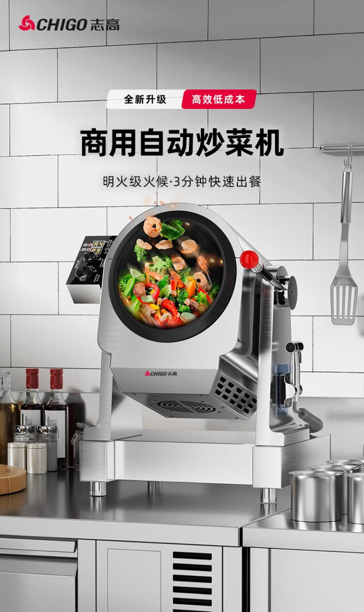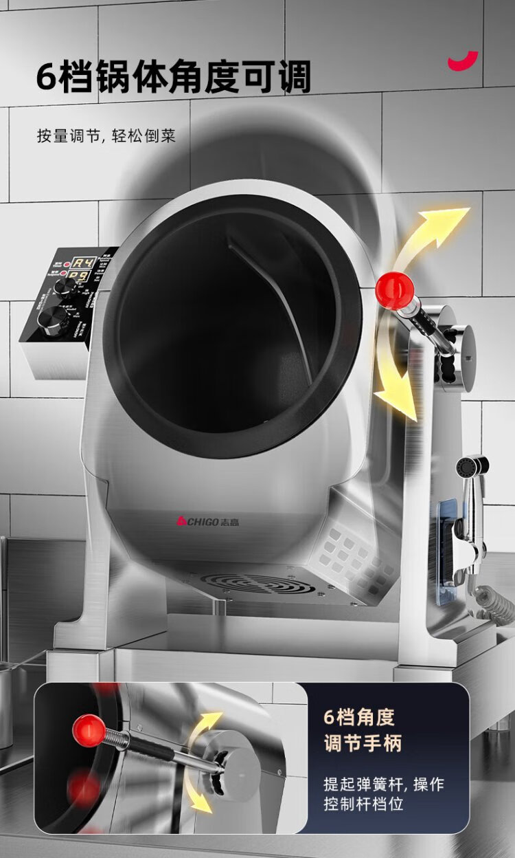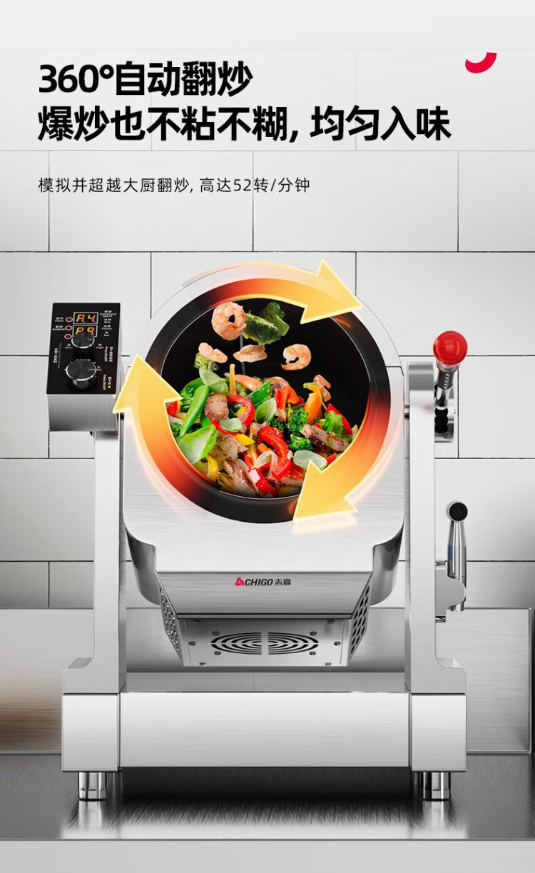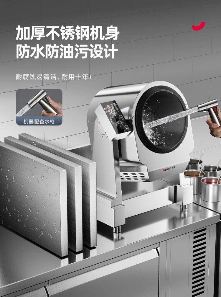 CHIGO cooking machine commercial intelligent drum cooking robot rice machine stir-fry electromechanical wok multi-function water gun takeaway catering canteen kitchen hotel canteen automatic cooking machine 400 electric dish pouring | 8kw | 3-layer coating | timing | 4-level waterproof