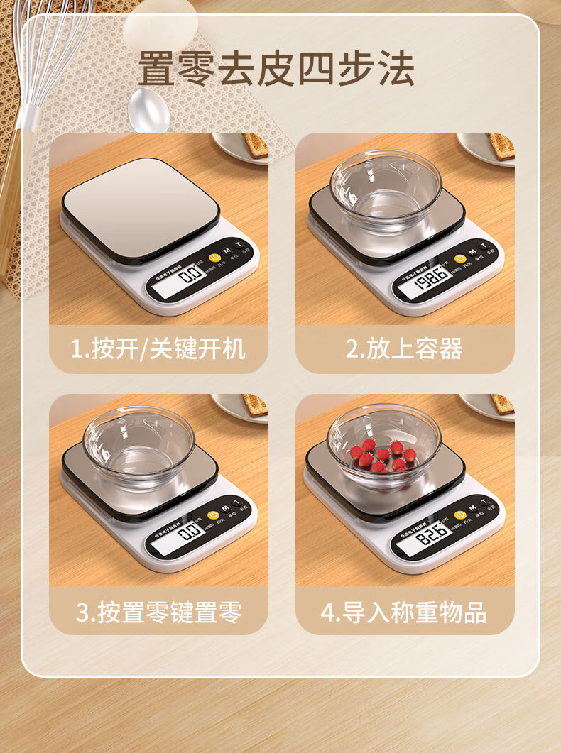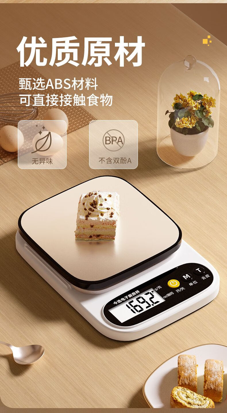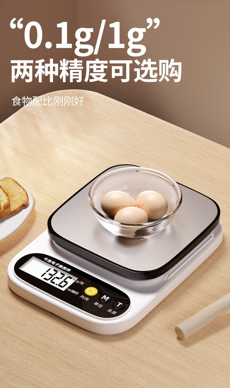 【张晨光代言】电子秤克称厨房秤高精度0.1g食物电子称中药材小型精准茶叶克称珠宝秤 充电款ABS秤面5kg/0.1g