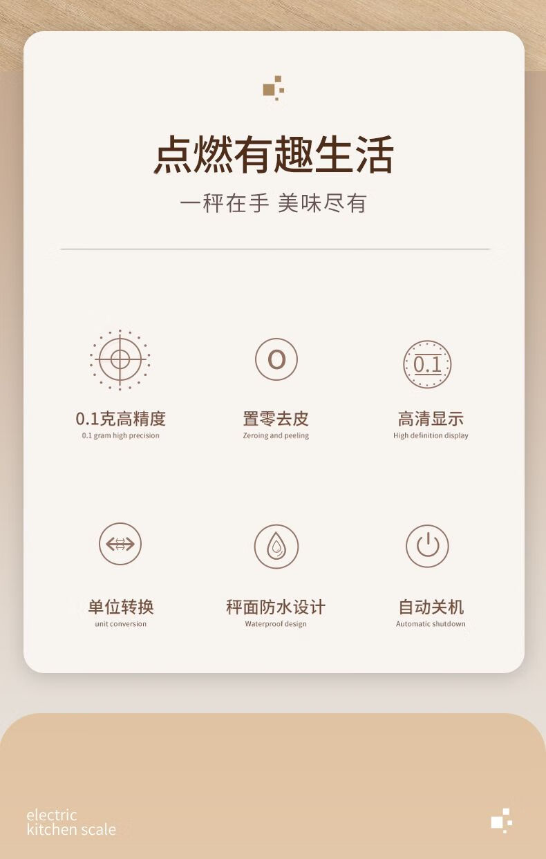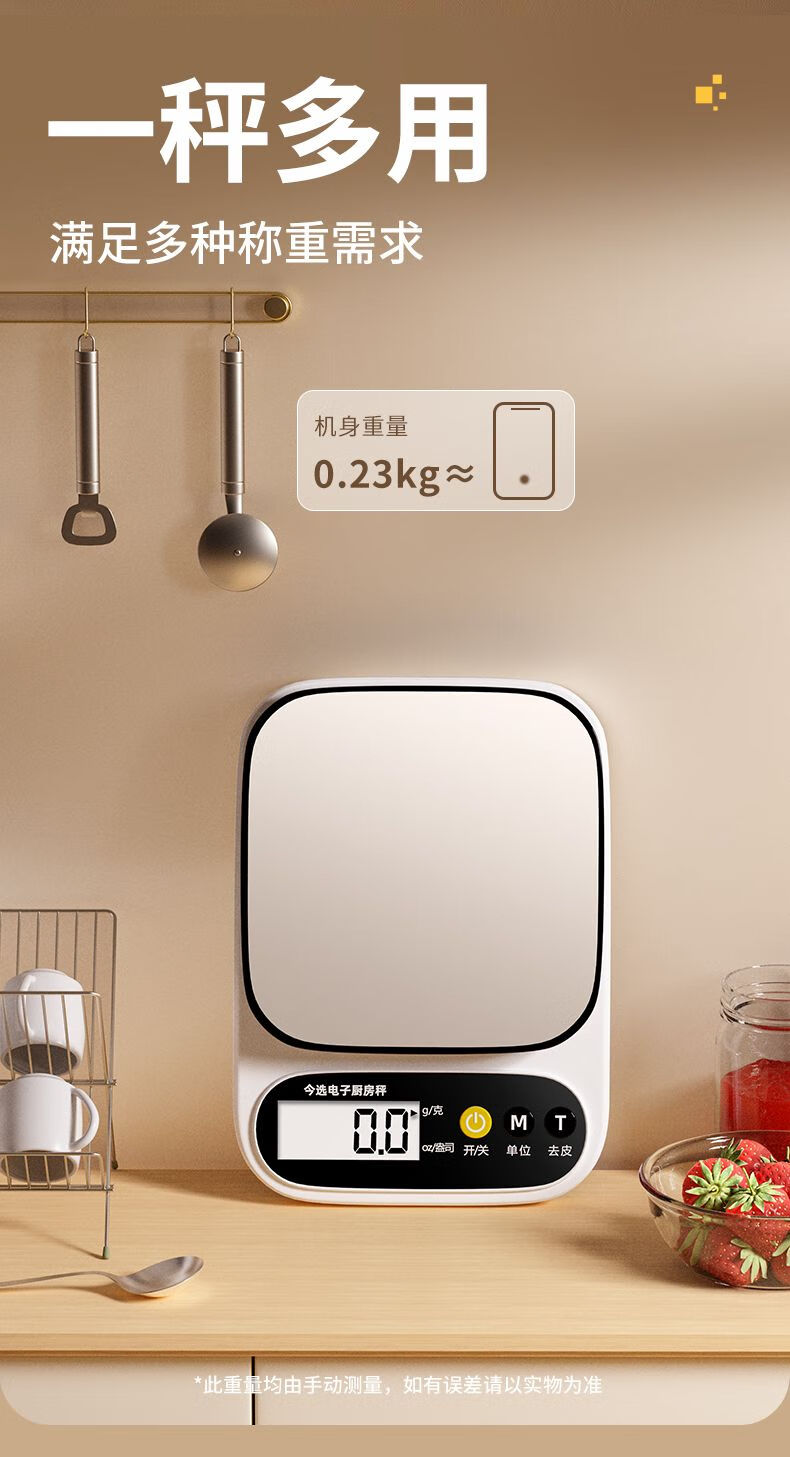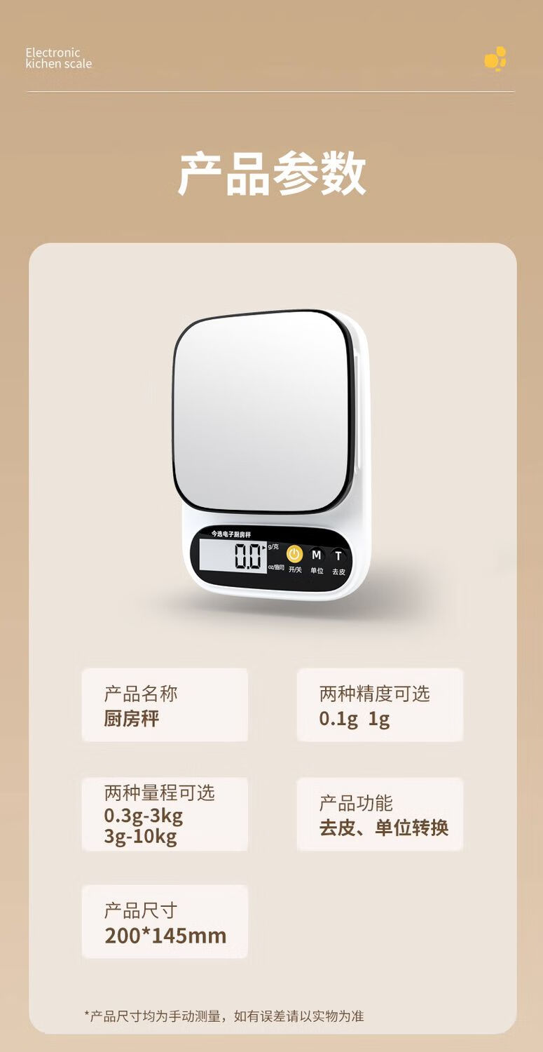 【张晨光代言】电子秤克称厨房秤高精度0.1g食物电子称中药材小型精准茶叶克称珠宝秤 充电款ABS秤面5kg/0.1g