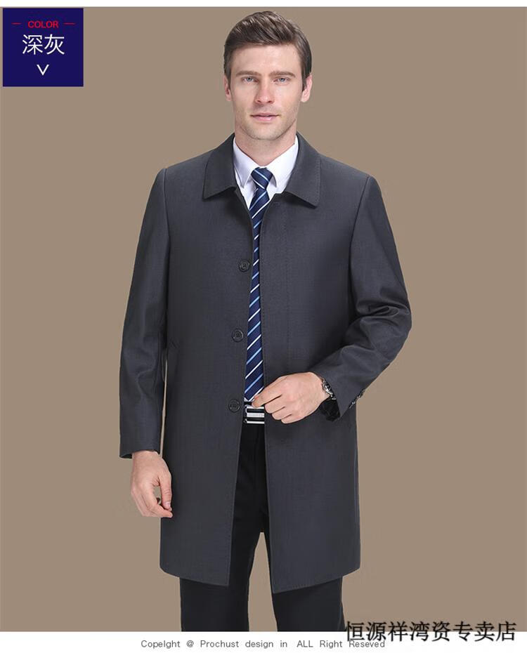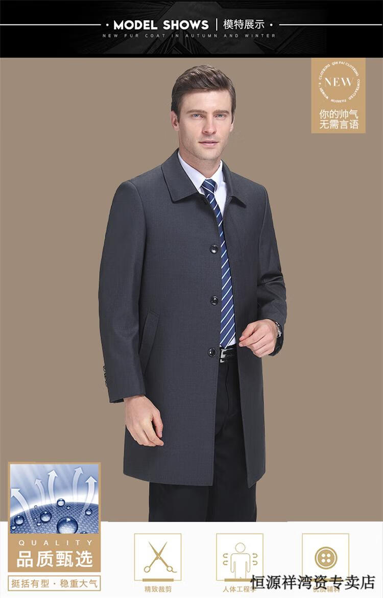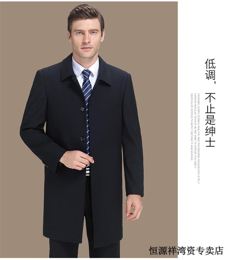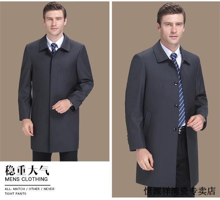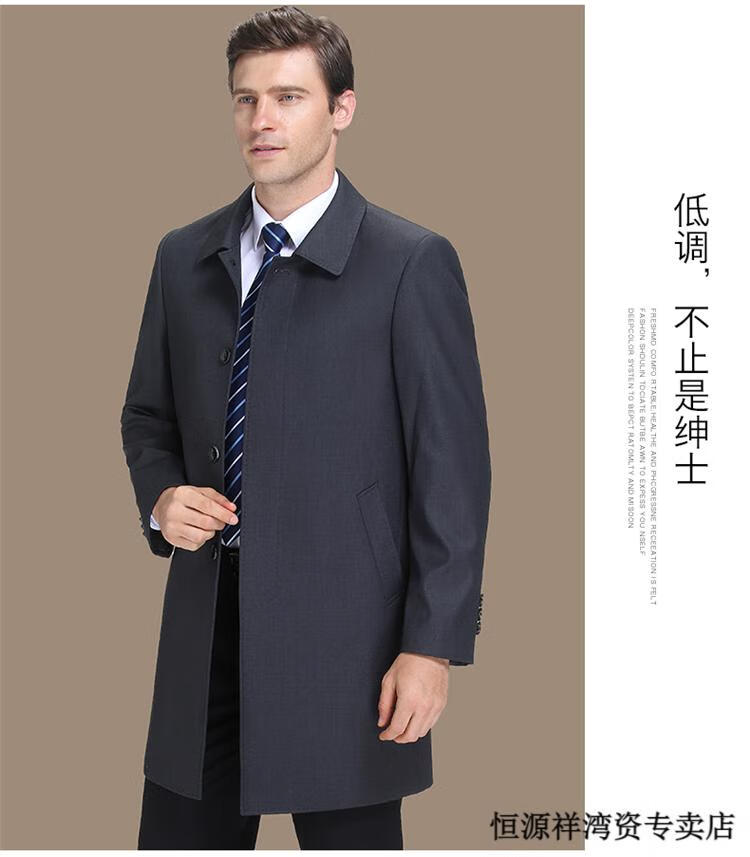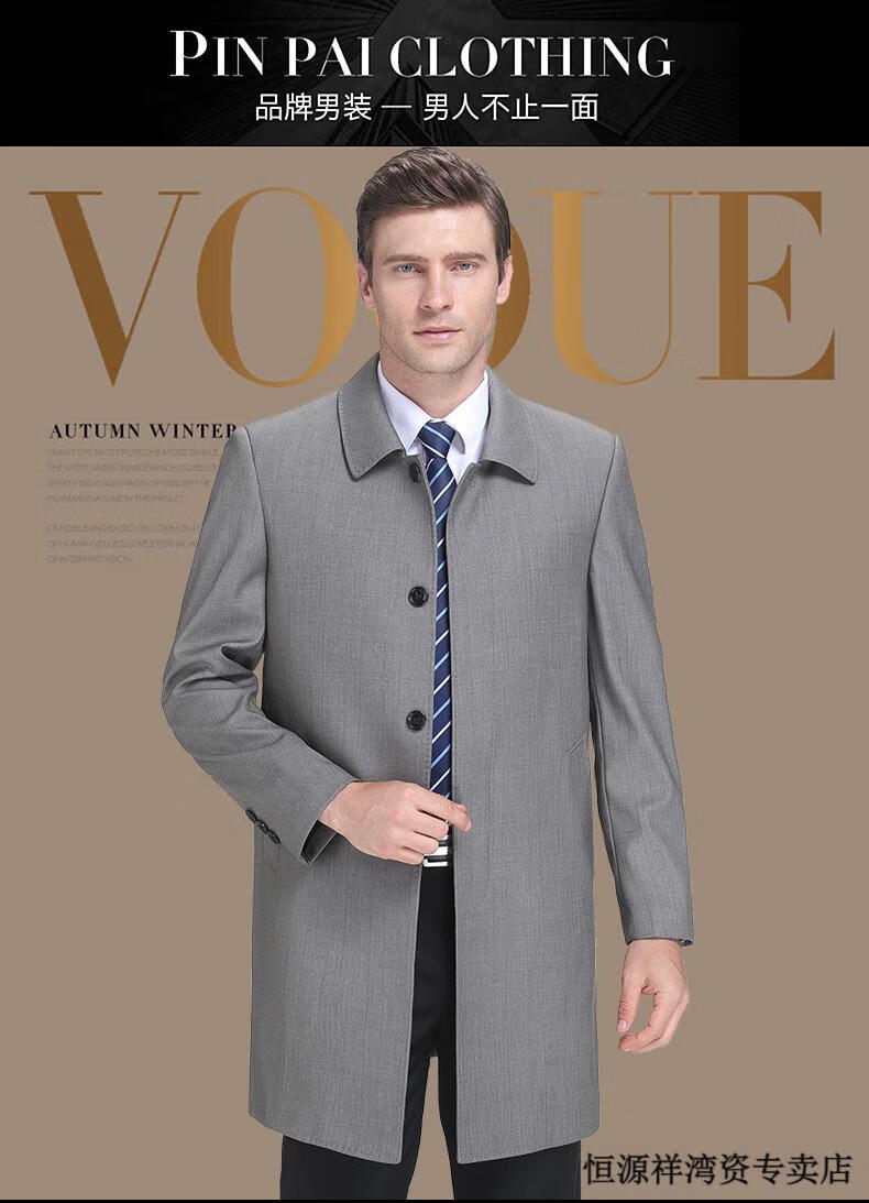 恒源祥风衣中长款男士翻领大码秋冬季新款加棉中老年爸爸装休闲大衣外套 浅咖 2XL 185