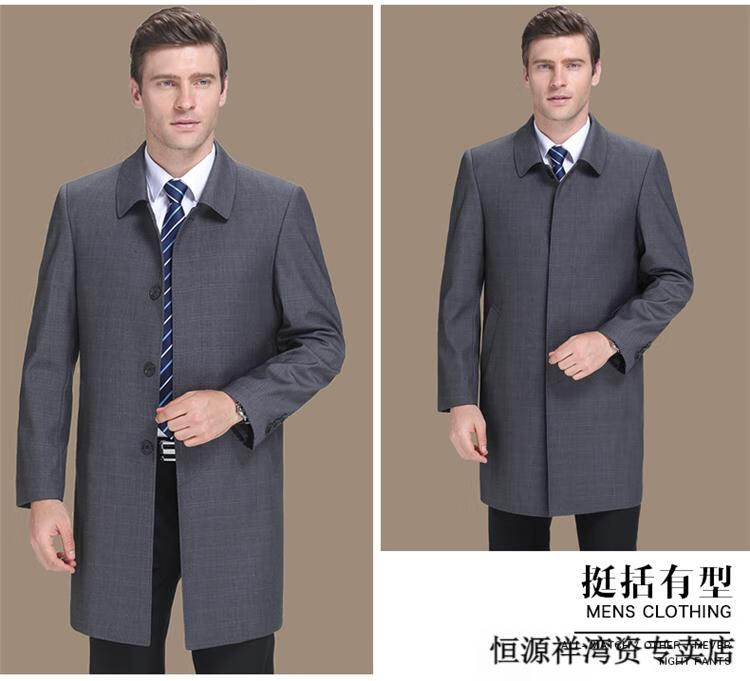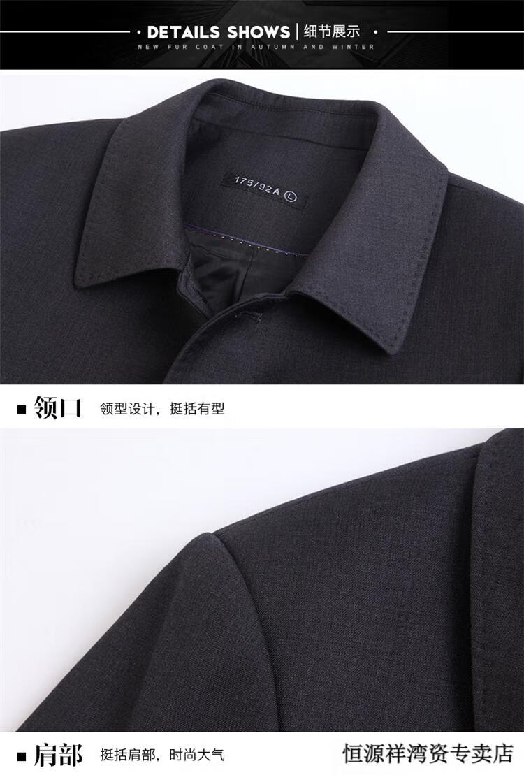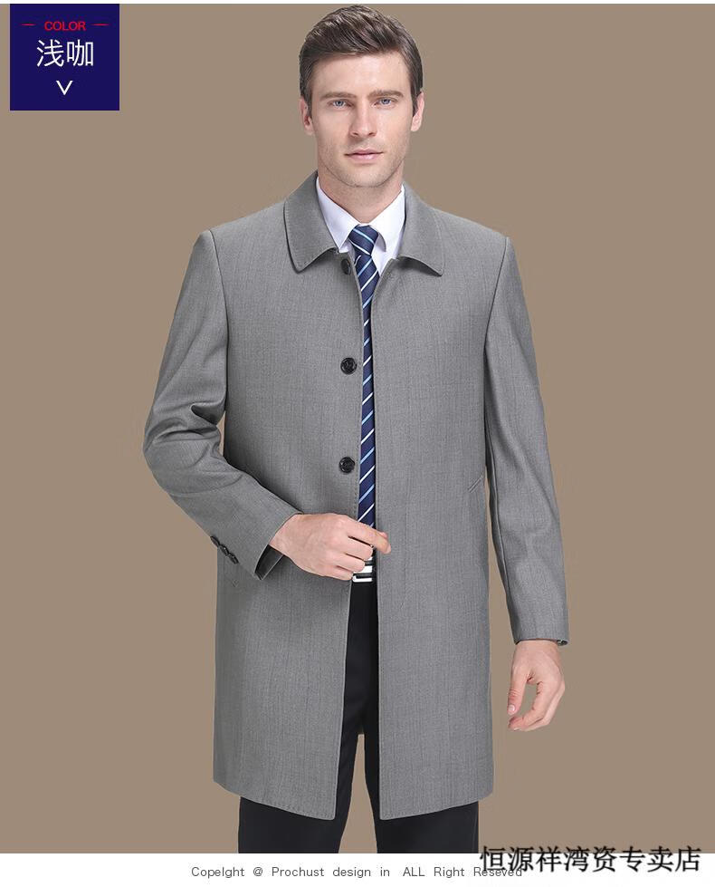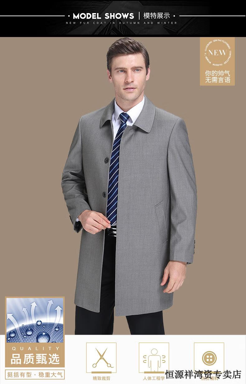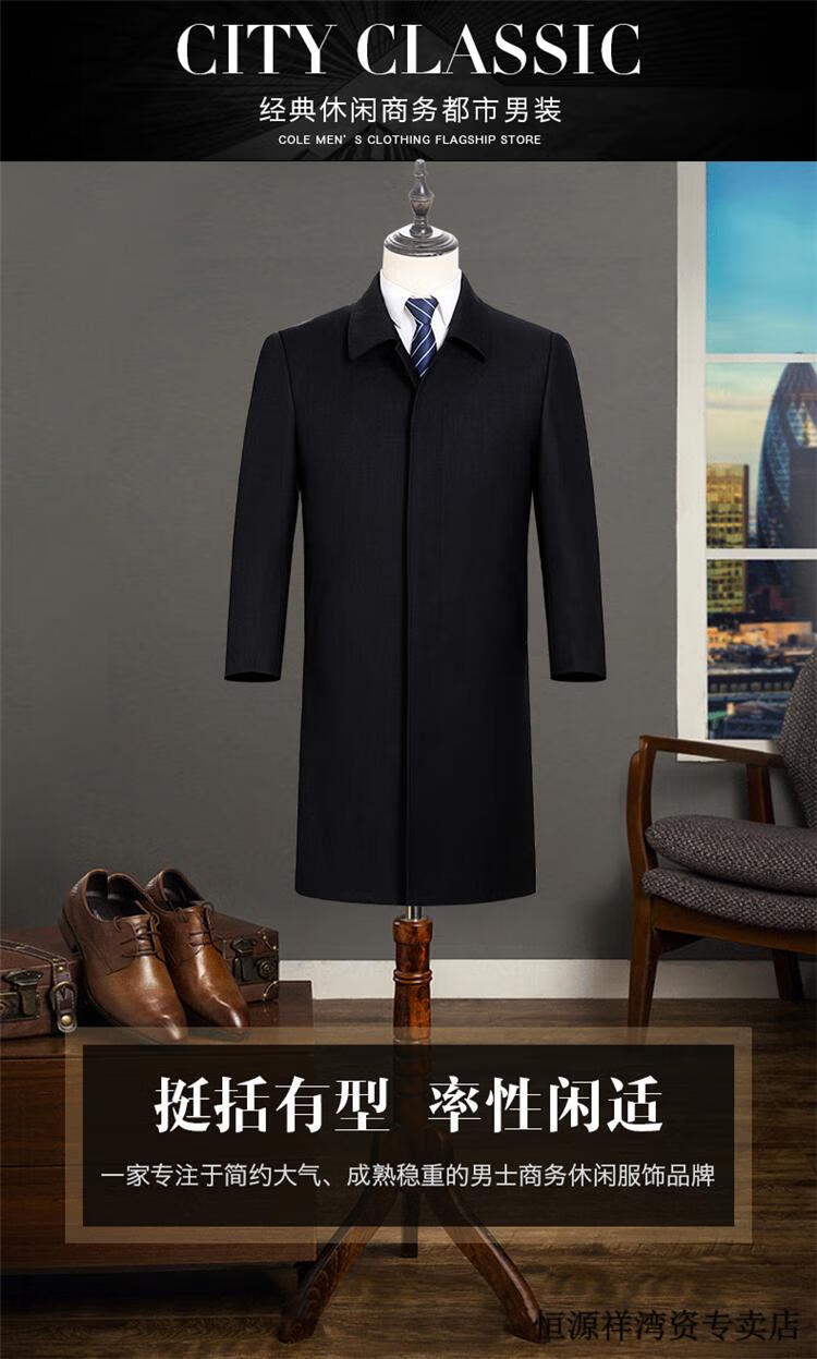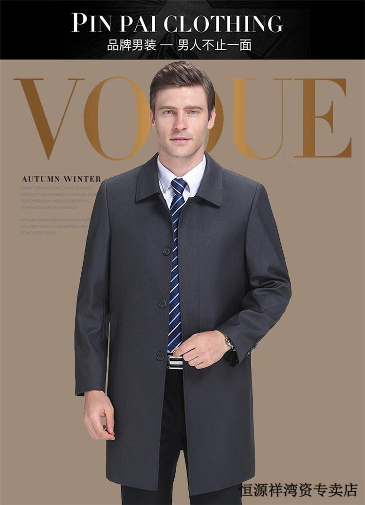 恒源祥风衣中长款男士翻领大码秋冬季新款加棉中老年爸爸装休闲大衣外套 浅咖 2XL 185