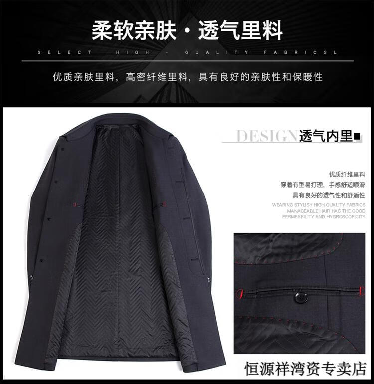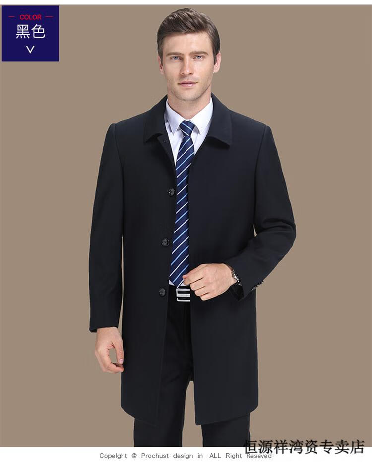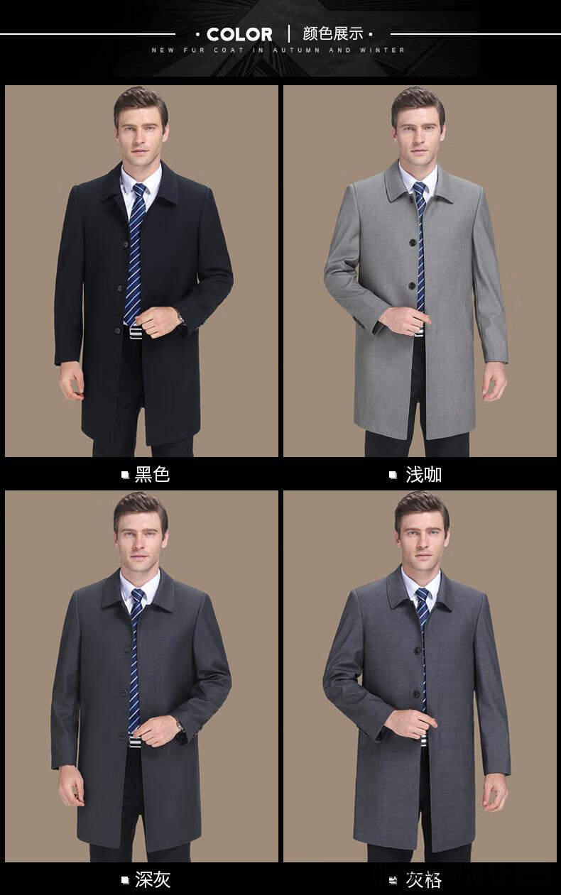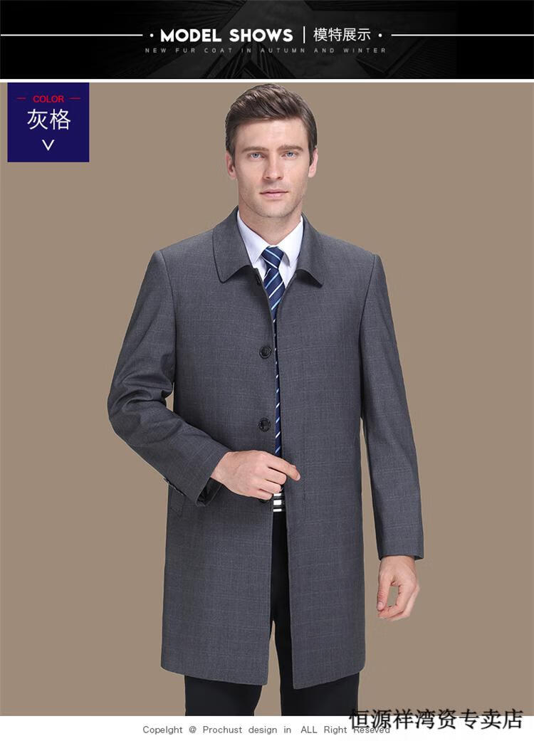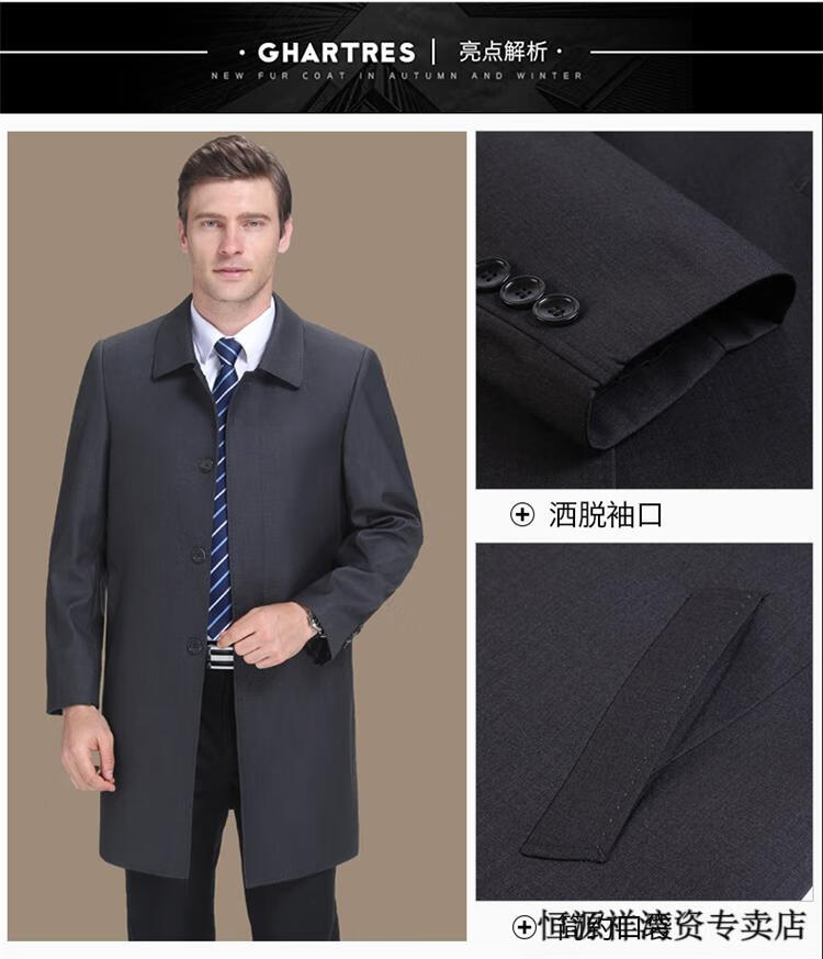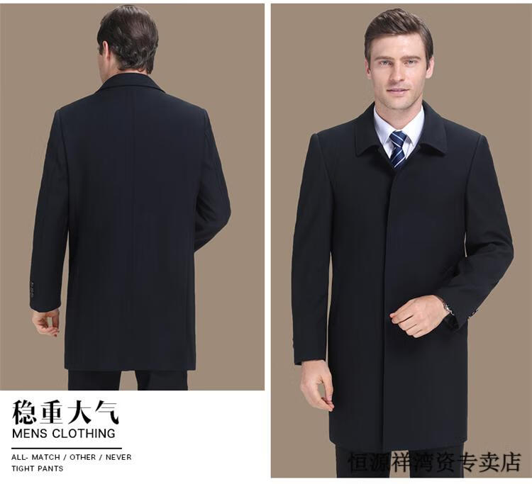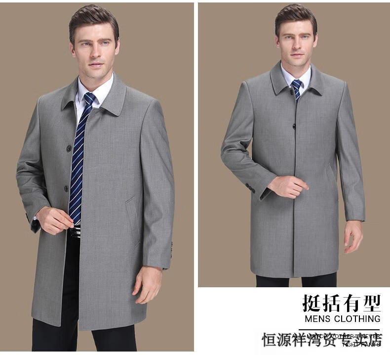 恒源祥风衣中长款男士翻领大码秋冬季新款加棉中老年爸爸装休闲大衣外套 浅咖 2XL 185