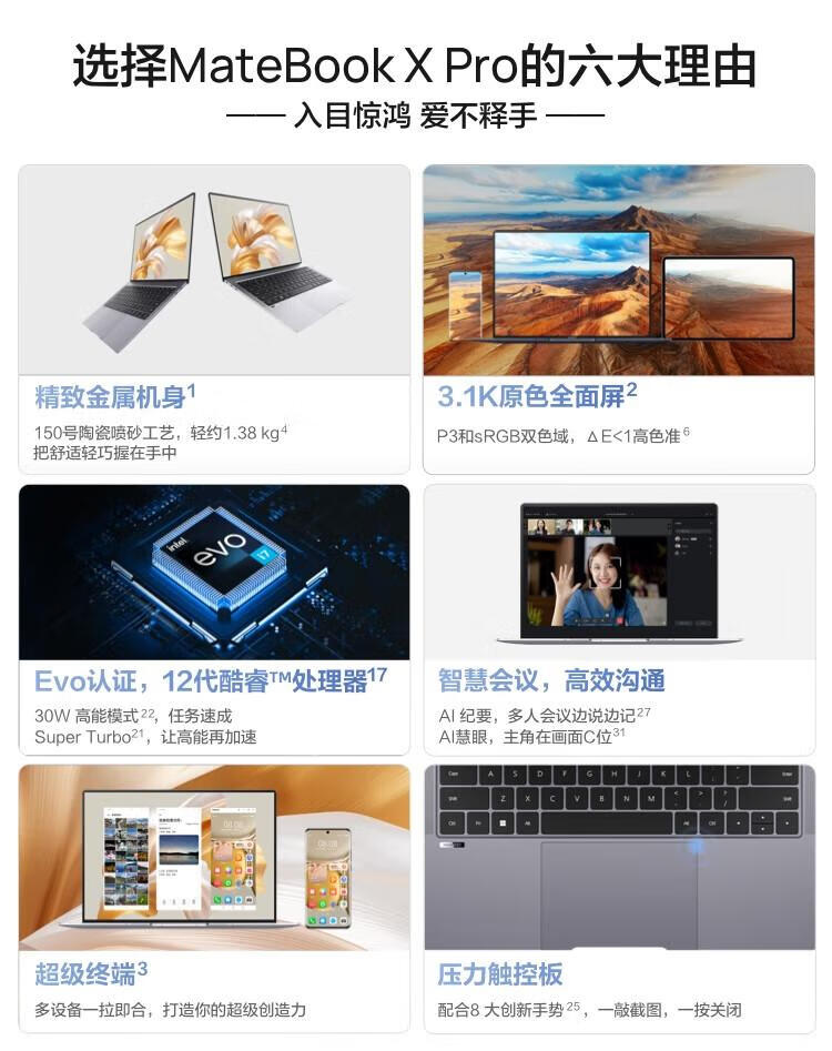 华为展机MateBook Xpro超轻薄高性能笔记本电脑办公本轻薄本游戏本 酷睿I7 10510-商务办公 中国大陆 16G-2T固态硬盘3K触摸屏