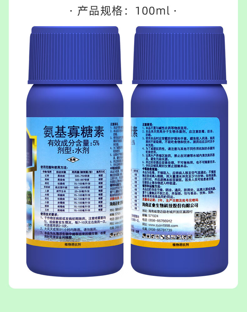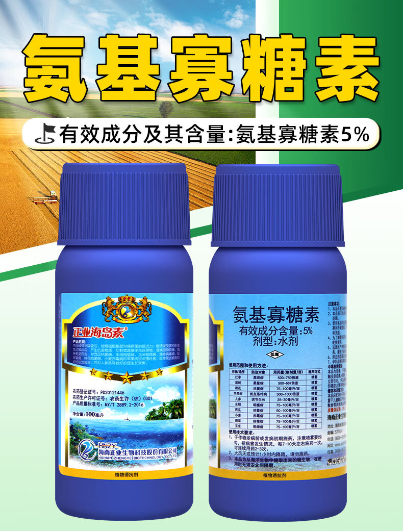正业海岛素5%氨基寡糖素烟草病毒病黑斑病稻瘟病枯萎病农药杀菌剂 100ml