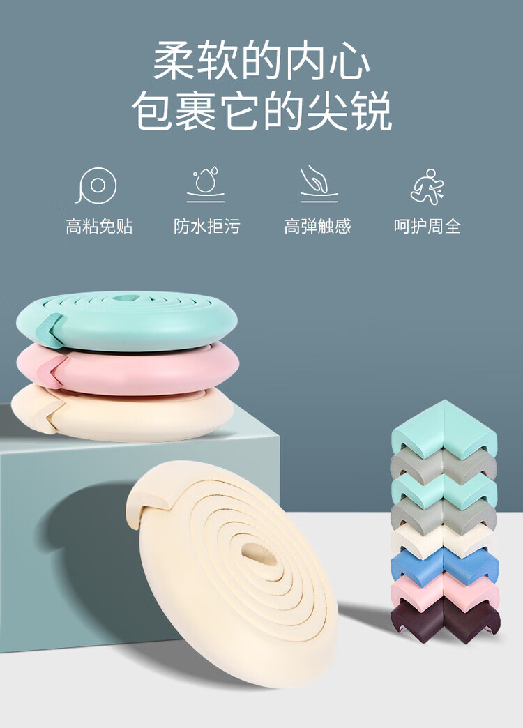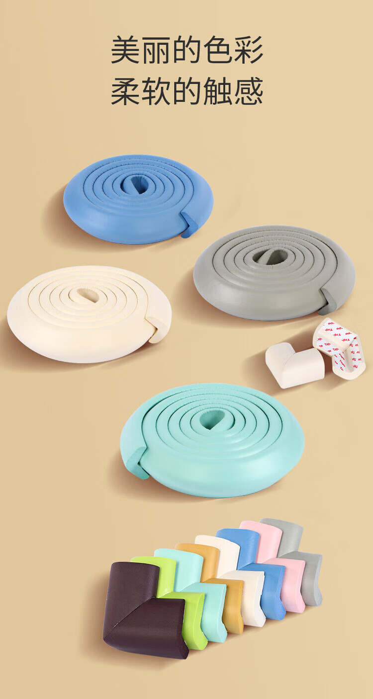 Anti-collision strips for children, environmentally friendly, non-toxic, sponge-wrapped corners, special soft bags for kindergarten, cotton strips, tile corners, beige, 5 meters, adhesive-backed version, peel and stick + 10 anti-collision strips