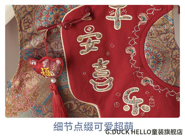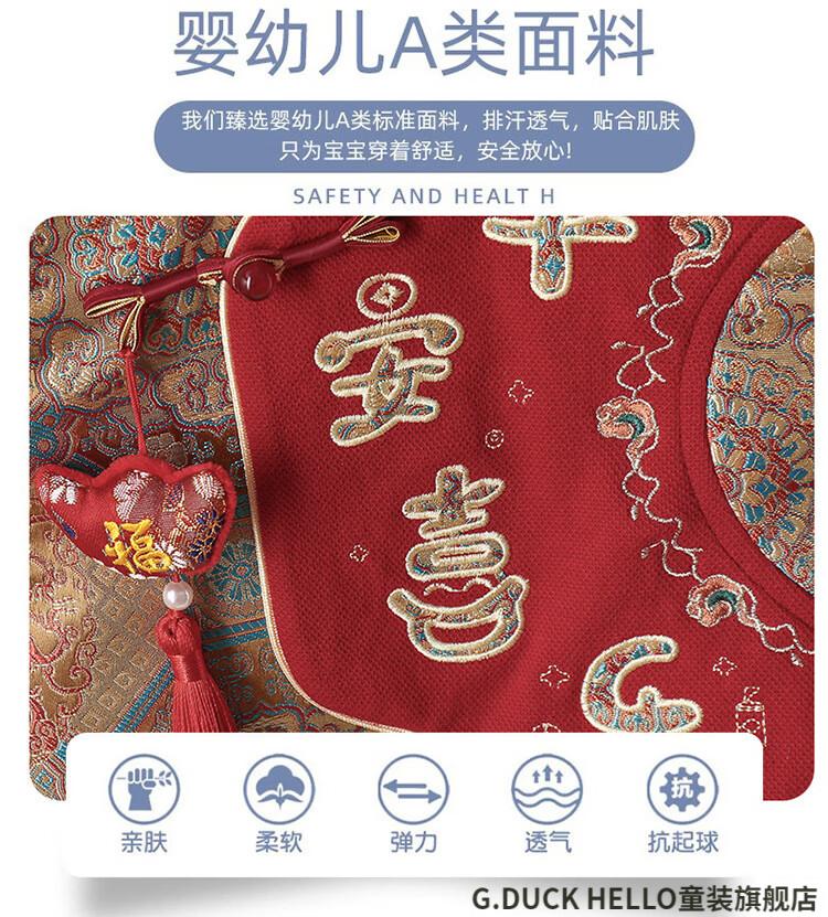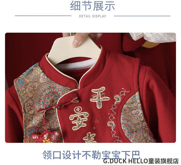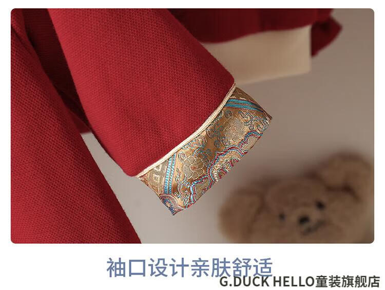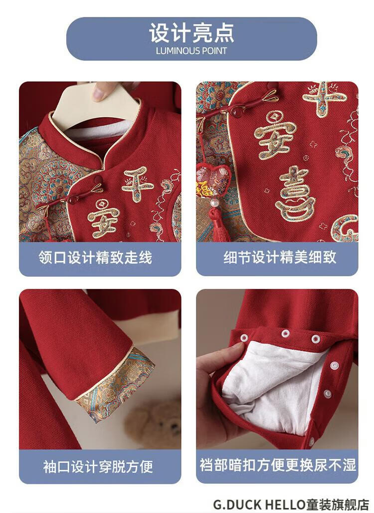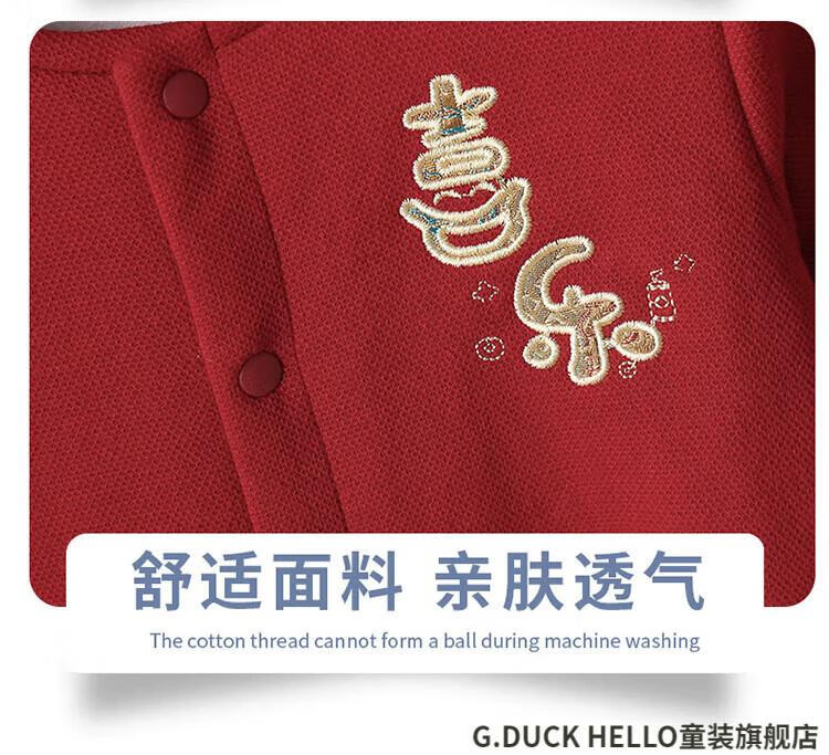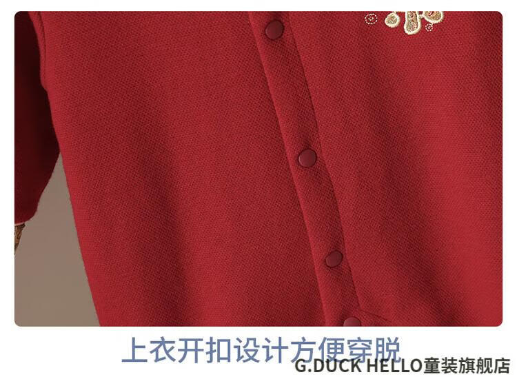 G.DUCKKIDS小黄鸭婴儿连体衣春秋中国风新生儿衣服满月百天男女宝宝周岁礼服 红色连体衣 66cm 66码0-3月建议宝宝4-6公斤