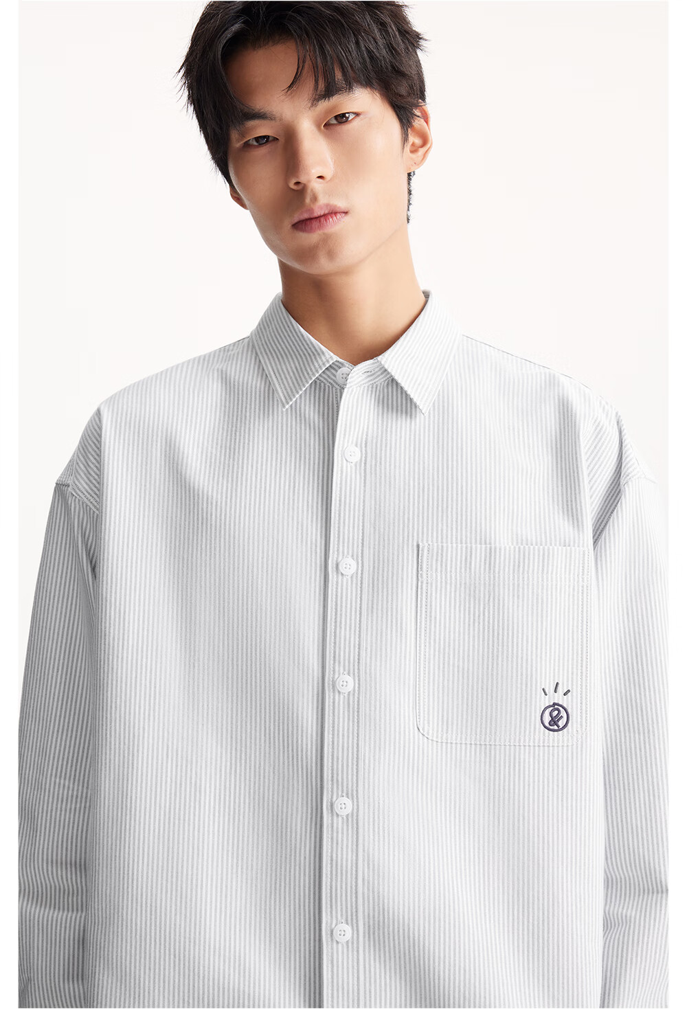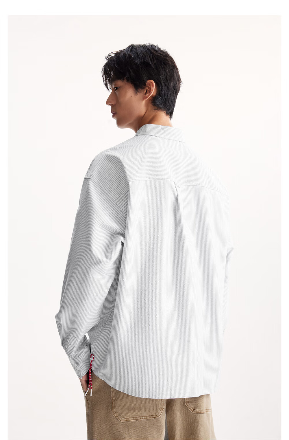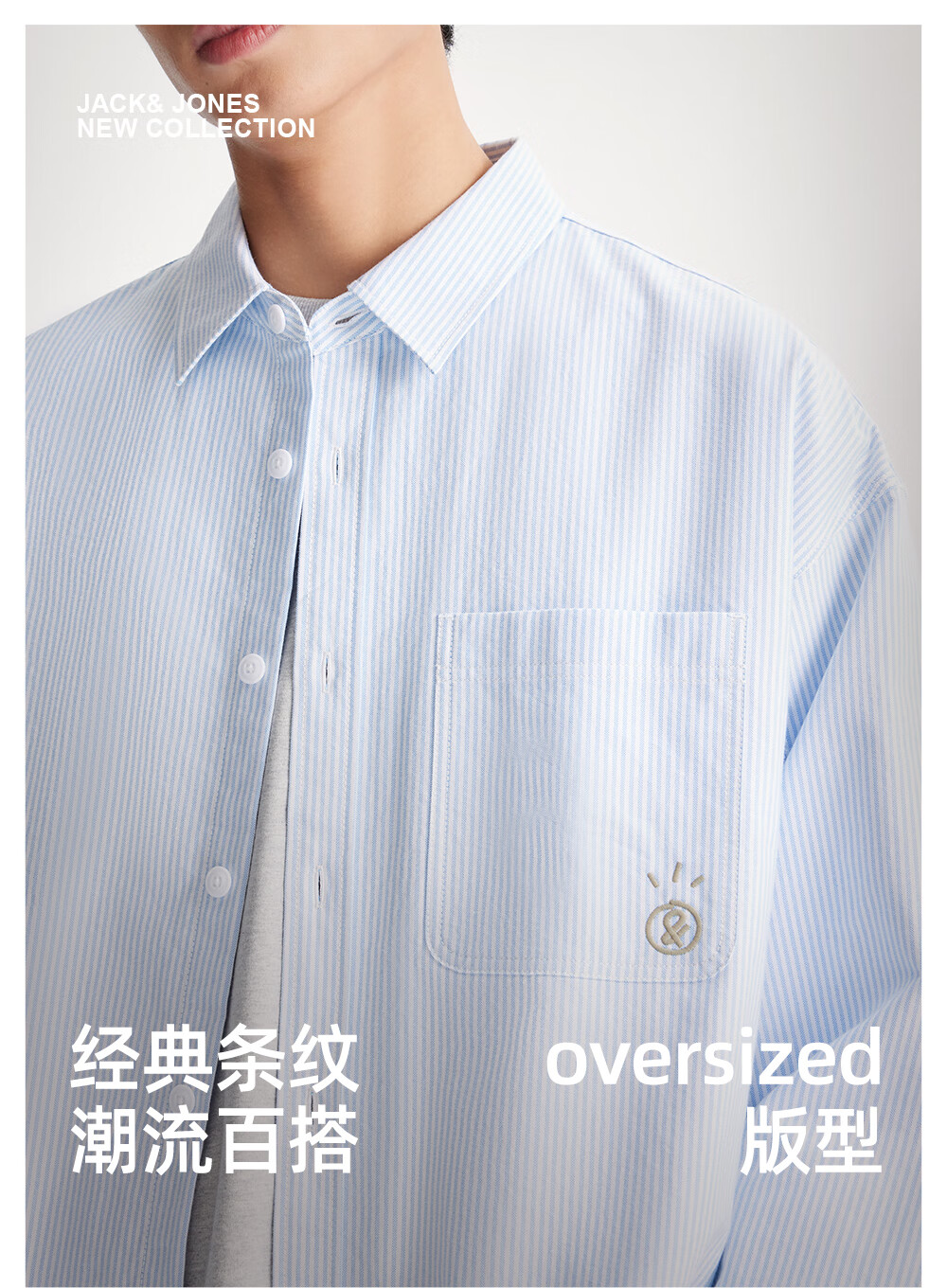 杰克·琼斯(JACK&JONES)【衣启赢运】 男装25年秋季衬衫男纯棉竖条纹宽松休闲长袖衬衫 灰白色 常规 M 偏大,建议拍小一码