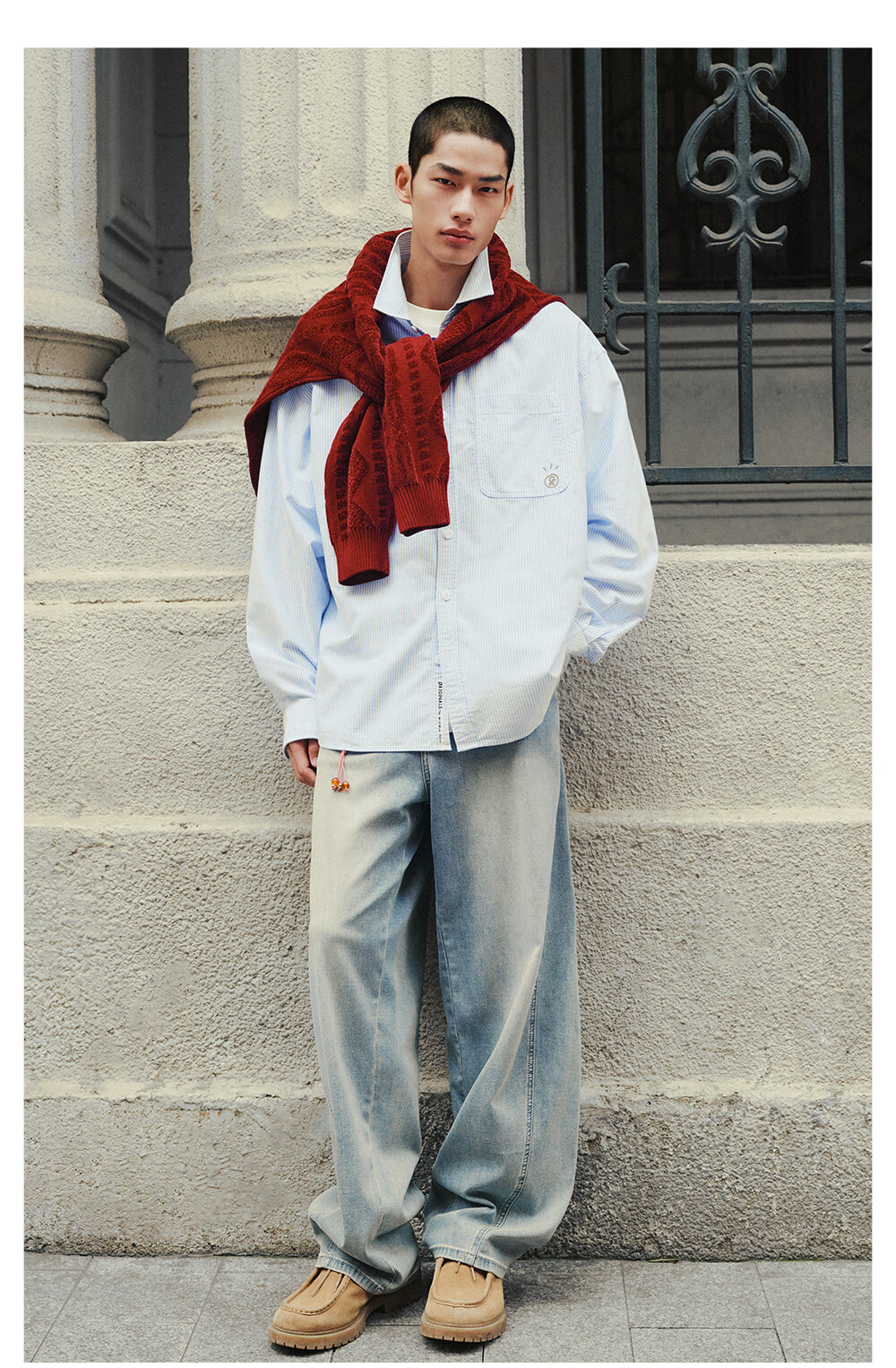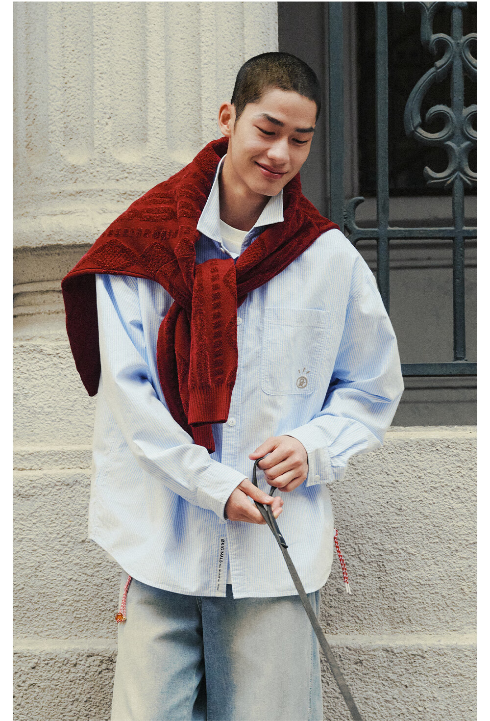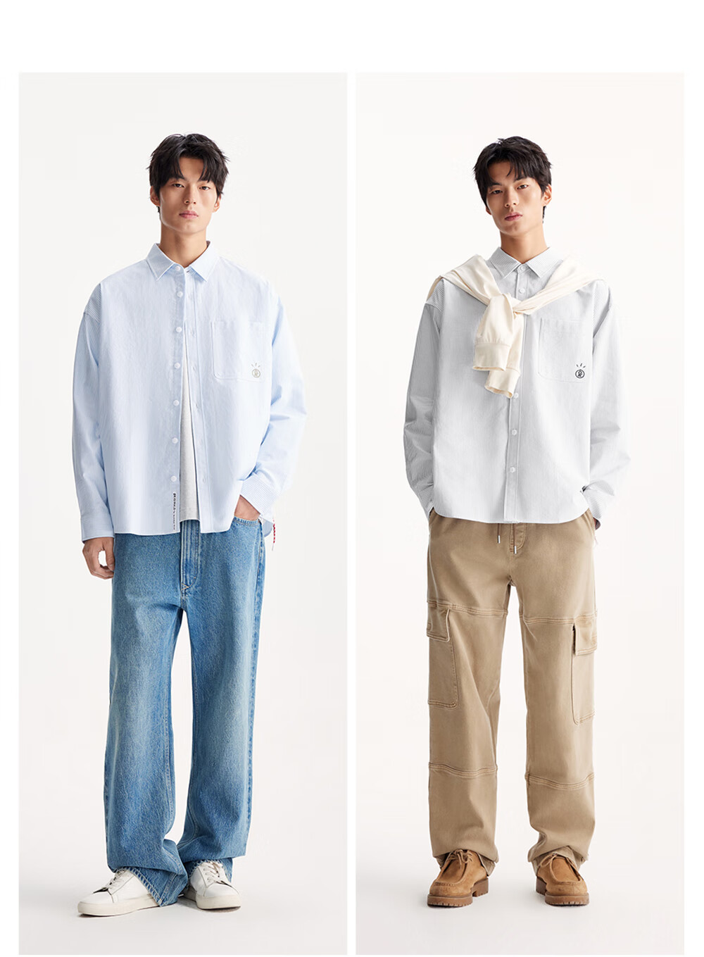 杰克·琼斯(JACK&JONES)【衣启赢运】 男装25年秋季衬衫男纯棉竖条纹宽松休闲长袖衬衫 灰白色 常规 M 偏大,建议拍小一码