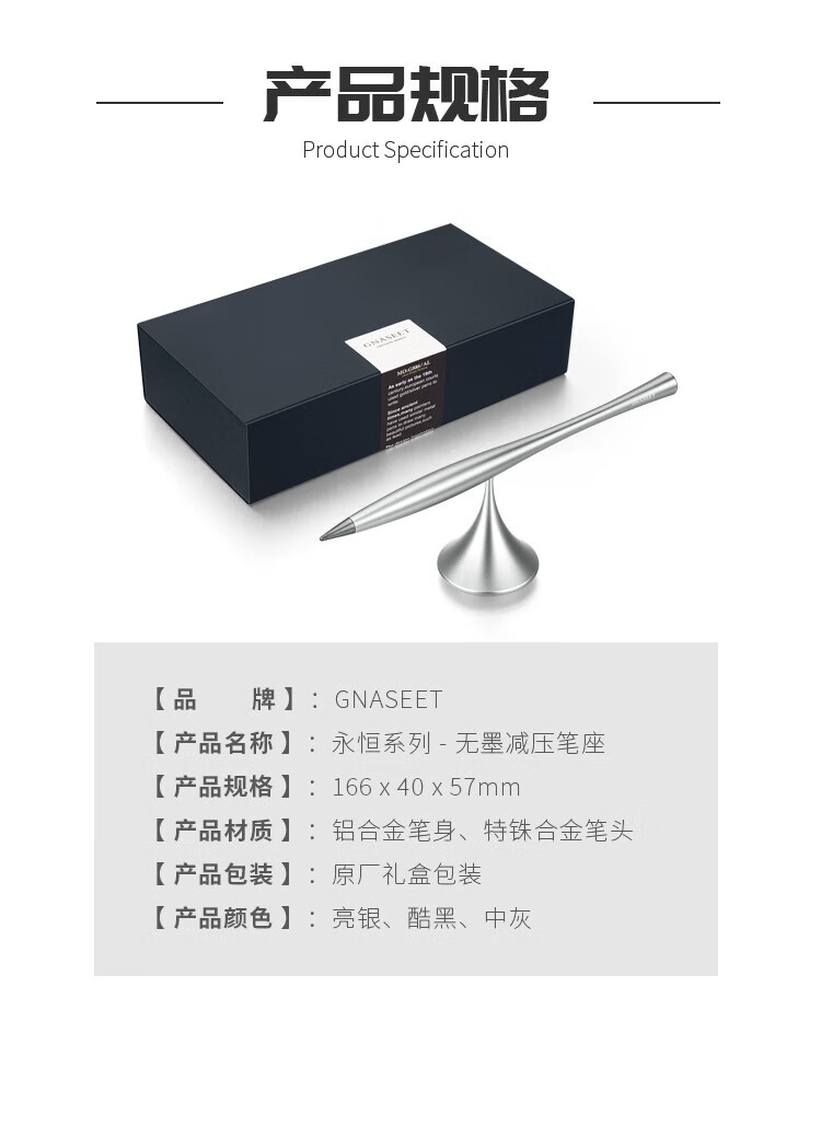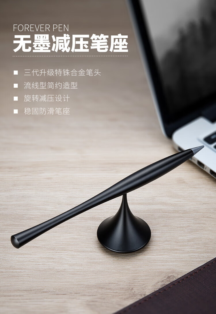 礼加心 写不完的笔金属永恒笔不用墨水金属铝合金笔创意礼品笔年会礼品logo定制圣诞节礼物男生女生 永恒笔-黑色-批量定制专拍