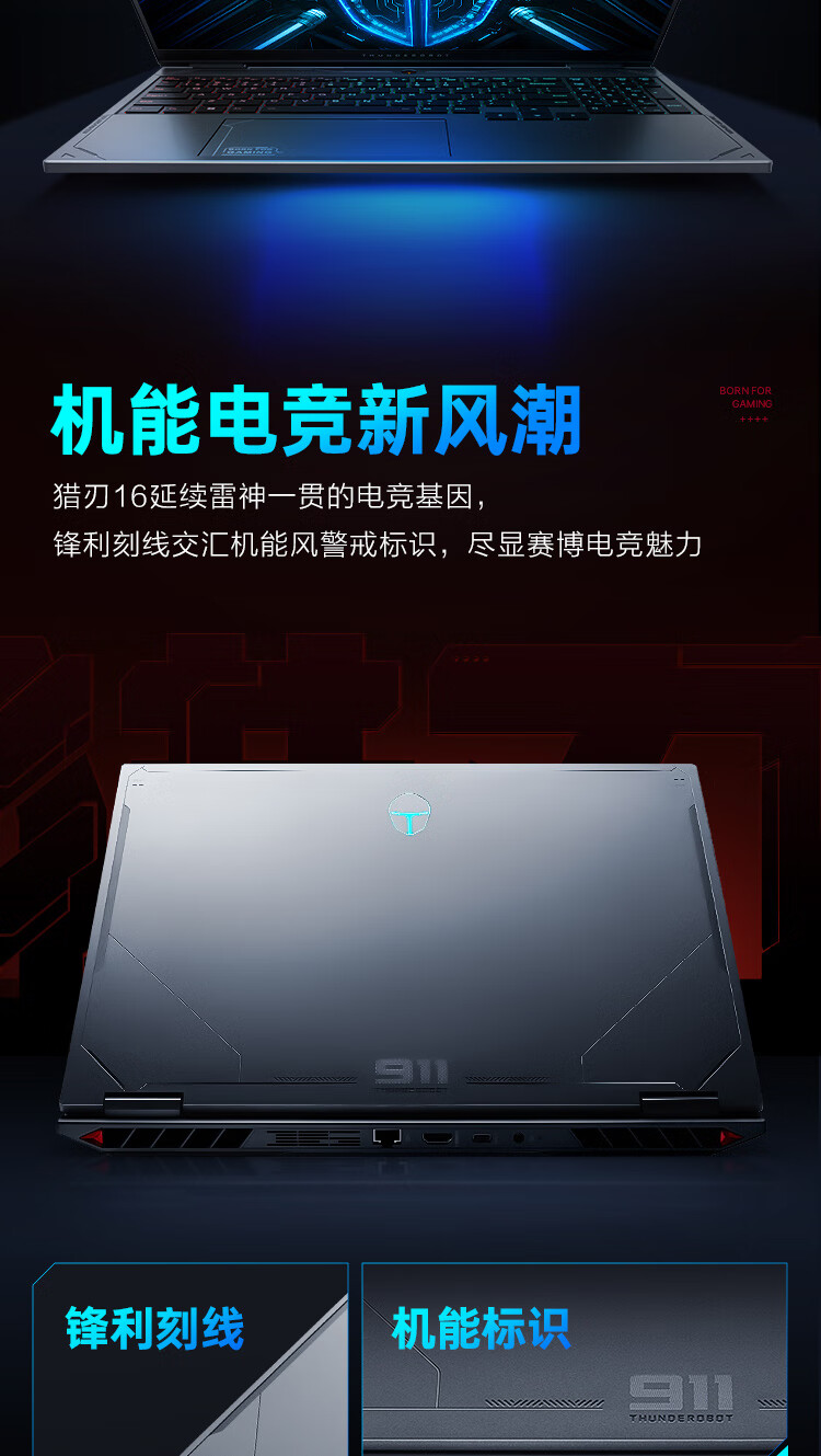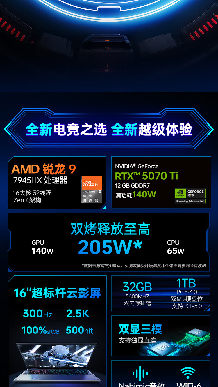 雷神猎刃16/S锐龙R9-7945HX满血RTX5070Ti电竞游戏本16英寸设计AI编程办公笔记本电脑 R9-7945HX|5070Ti|300Hz云影屏 32G内存|1T高速固态