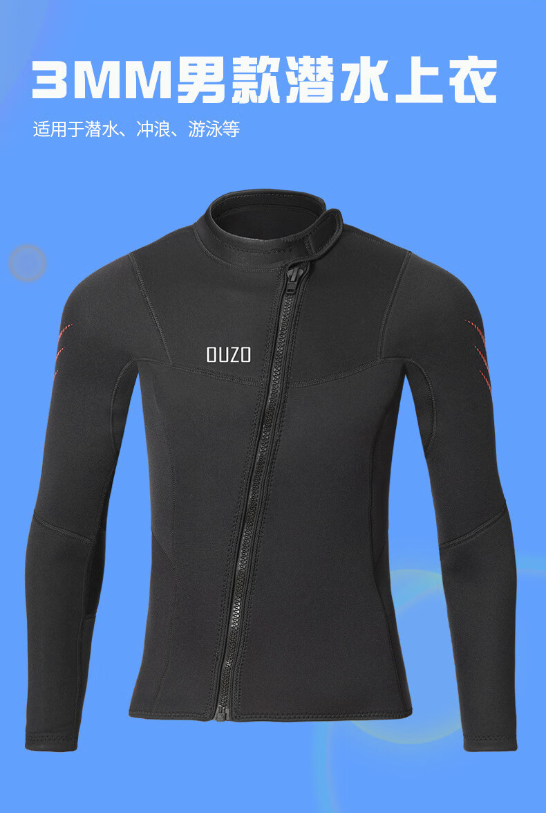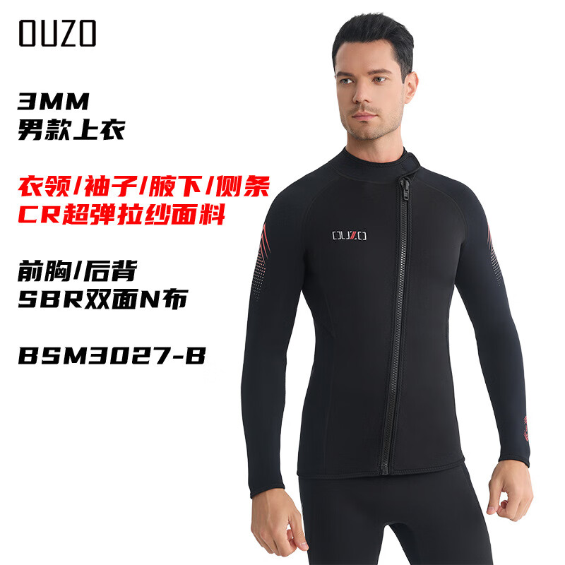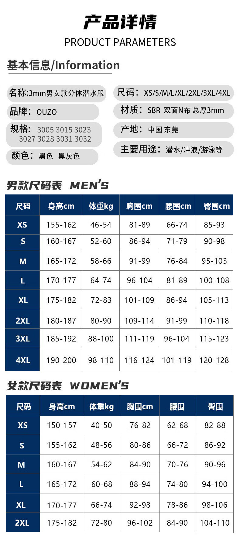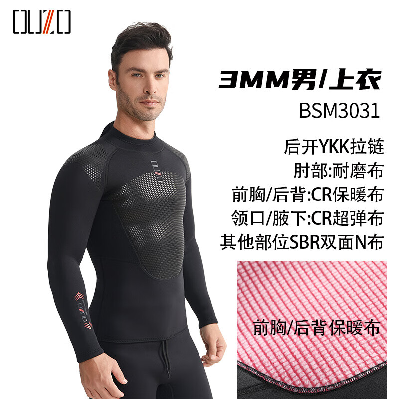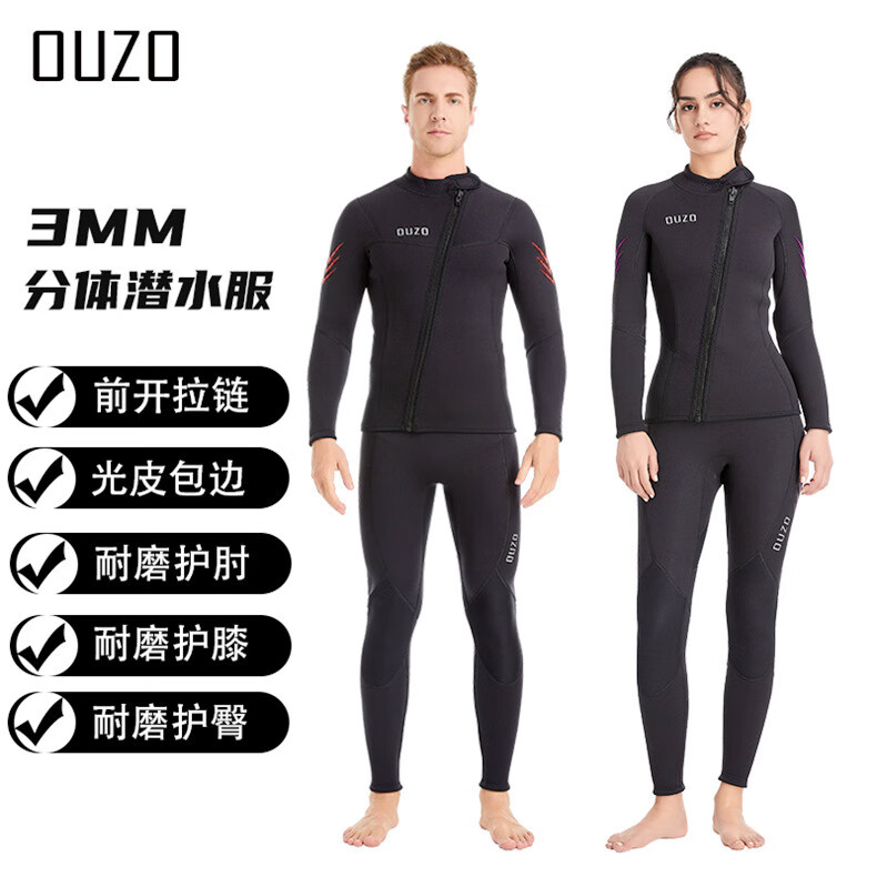 3 mm Neoprenanzug OUZO Herren- und Damen-Split-Neoprenanzug, kältebeständig, warmes Oberteil, Hose, Schnorcheln, Surfen, Winter-Badeanzug, Herren/schwarze Hose BKM3027-B L
