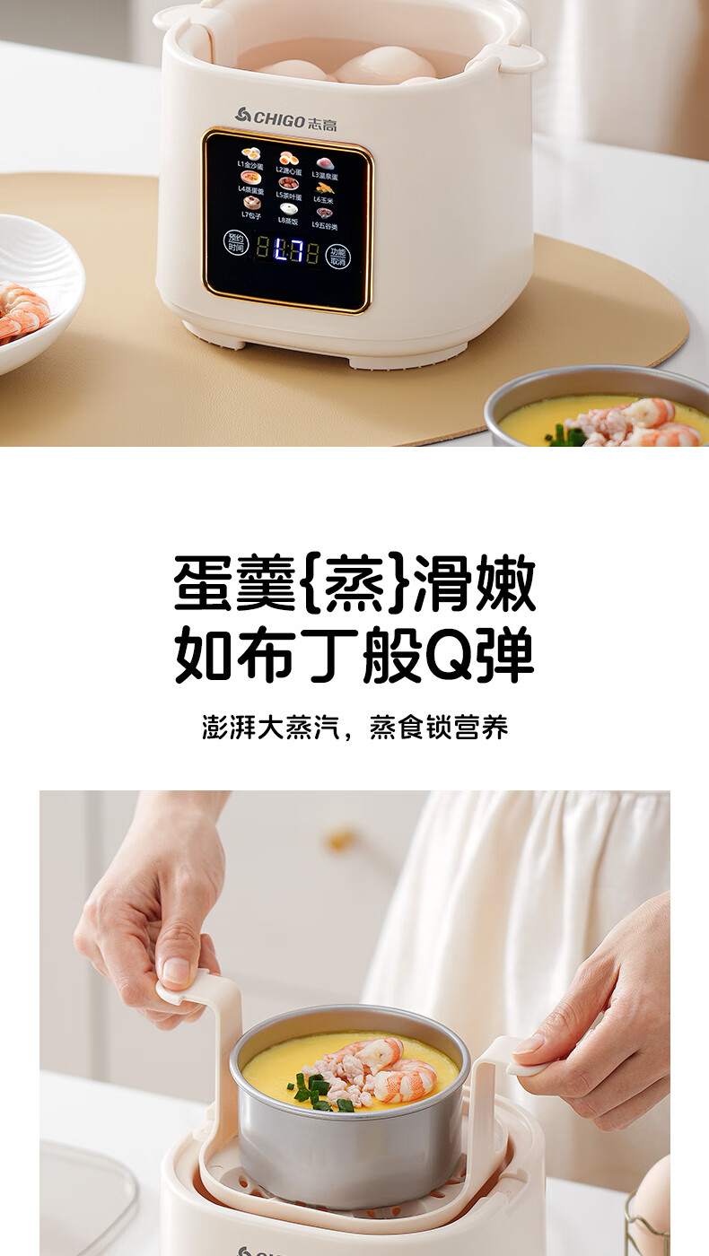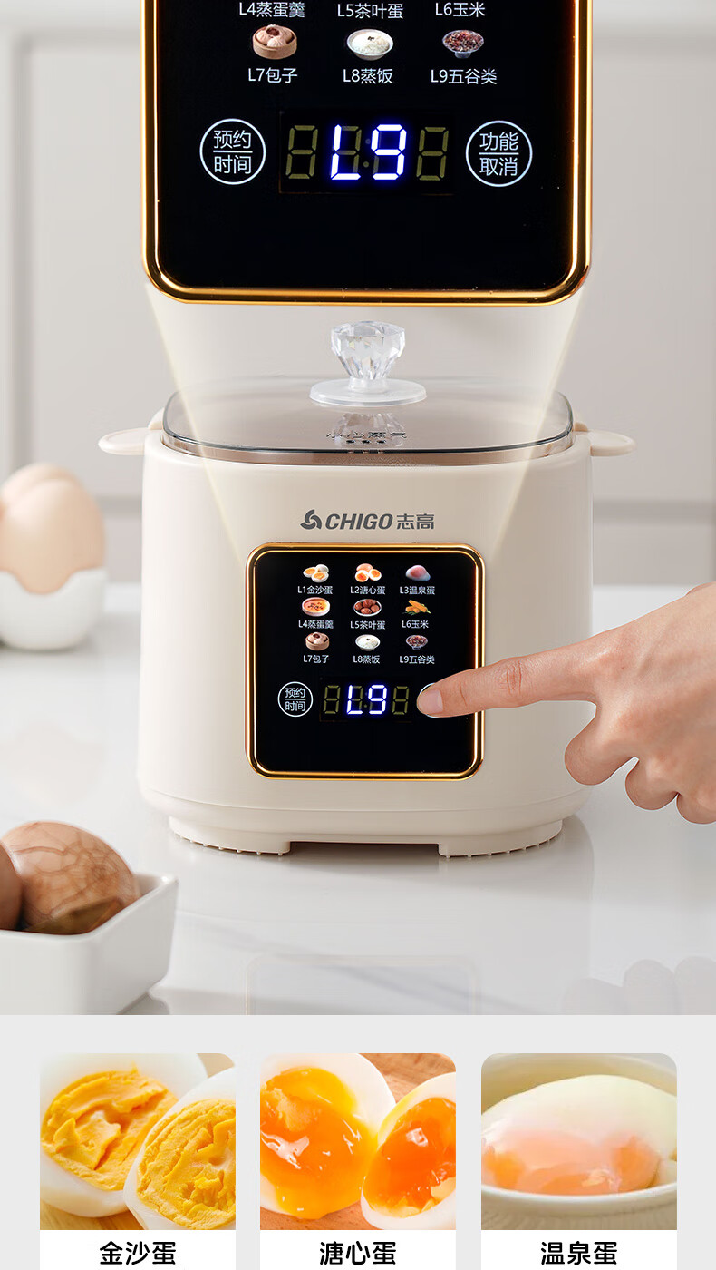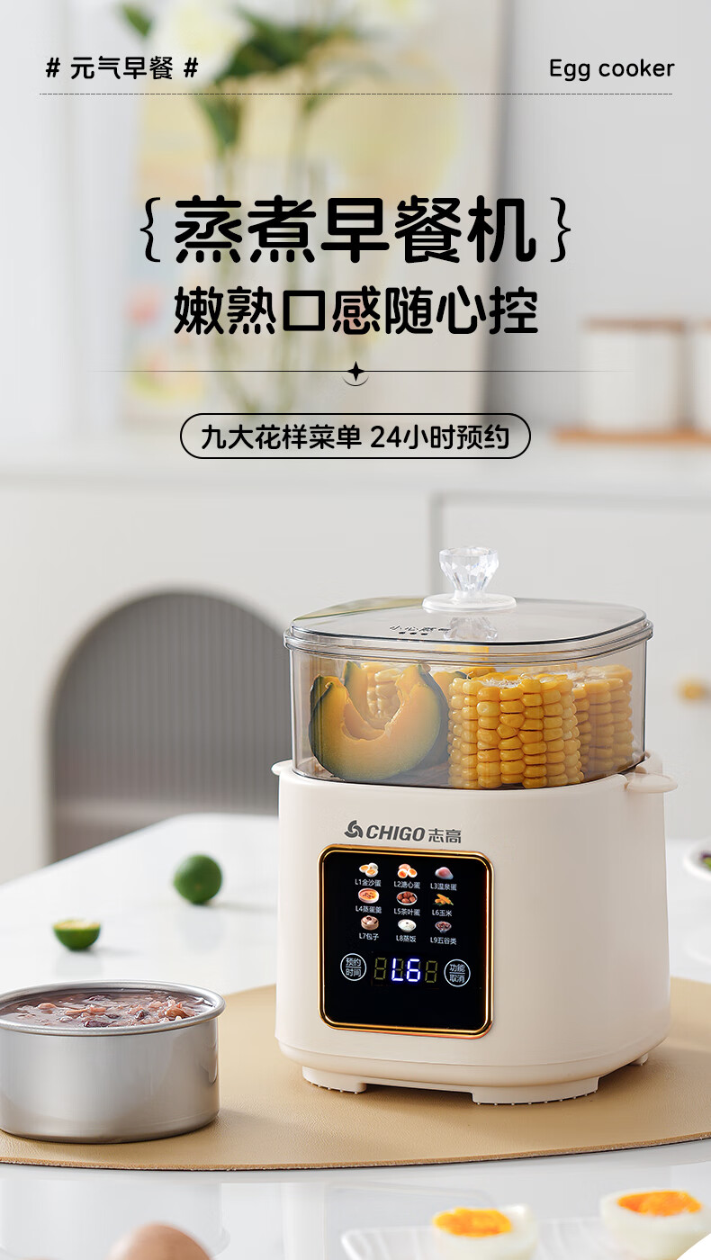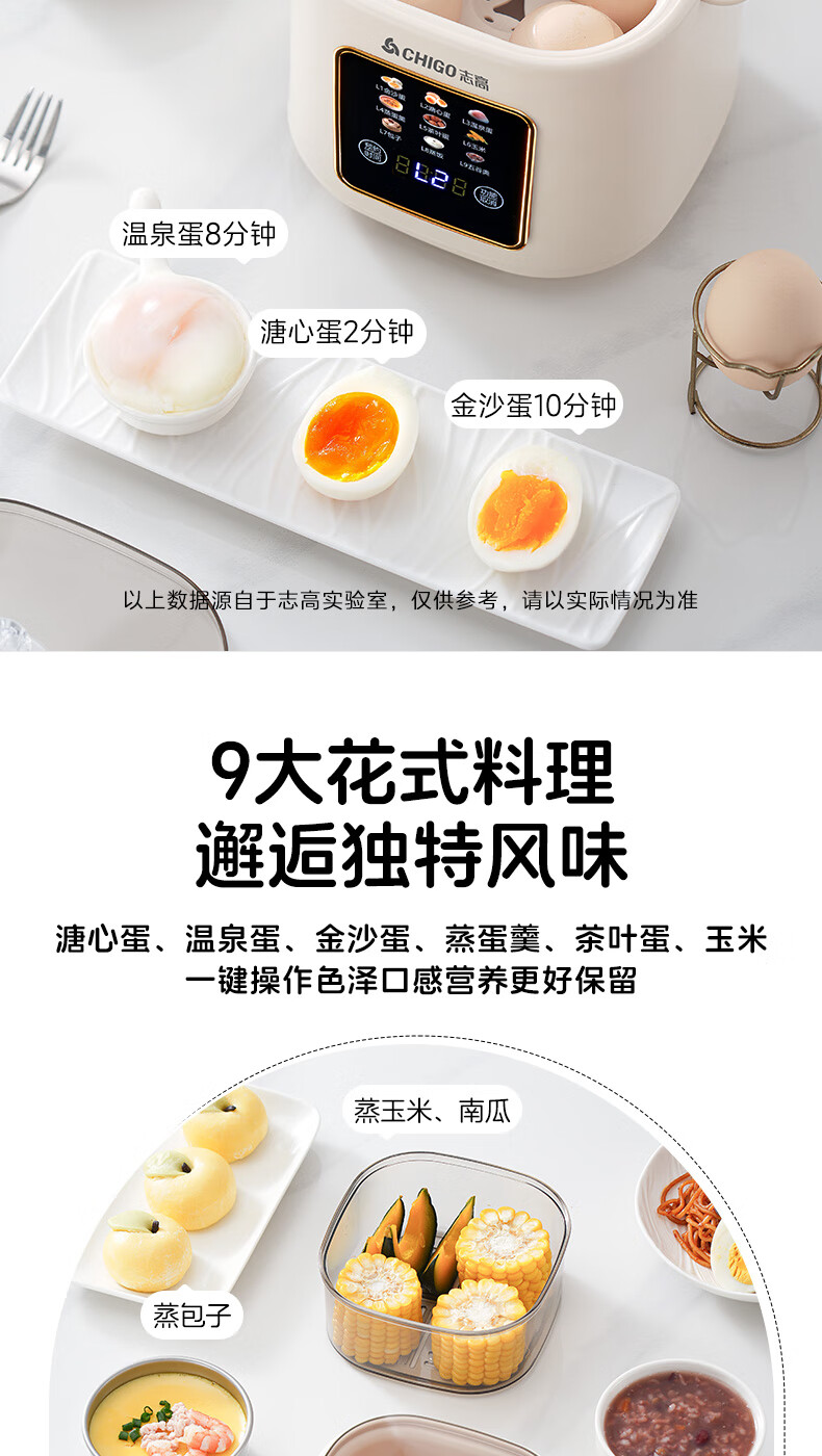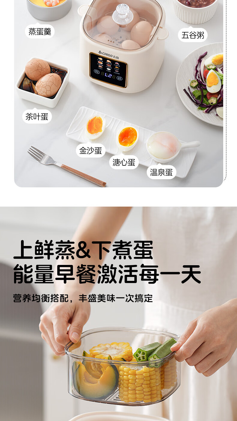 志高2025新款煮蛋器蒸蛋器多功能自动断电家用小型煮鸡蛋早餐神器蒸煮一体机预约定时七夕礼物 双层 彩屏款【无蒸碗】