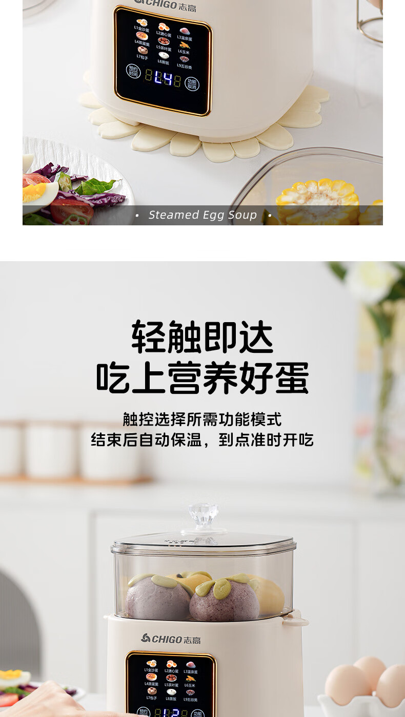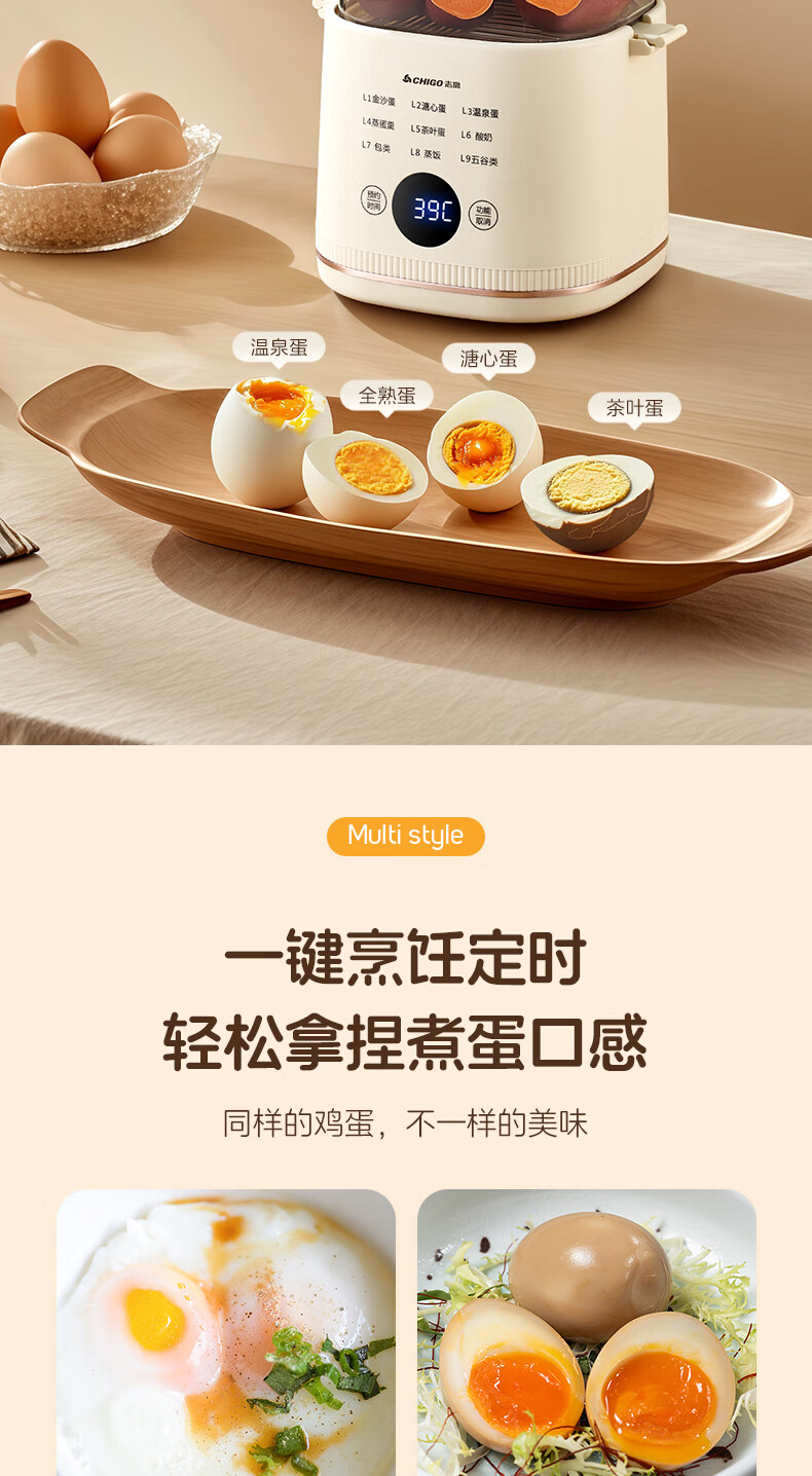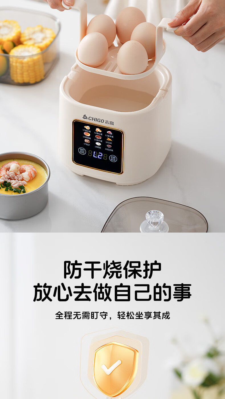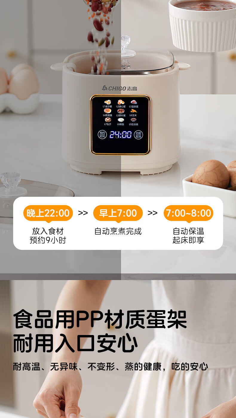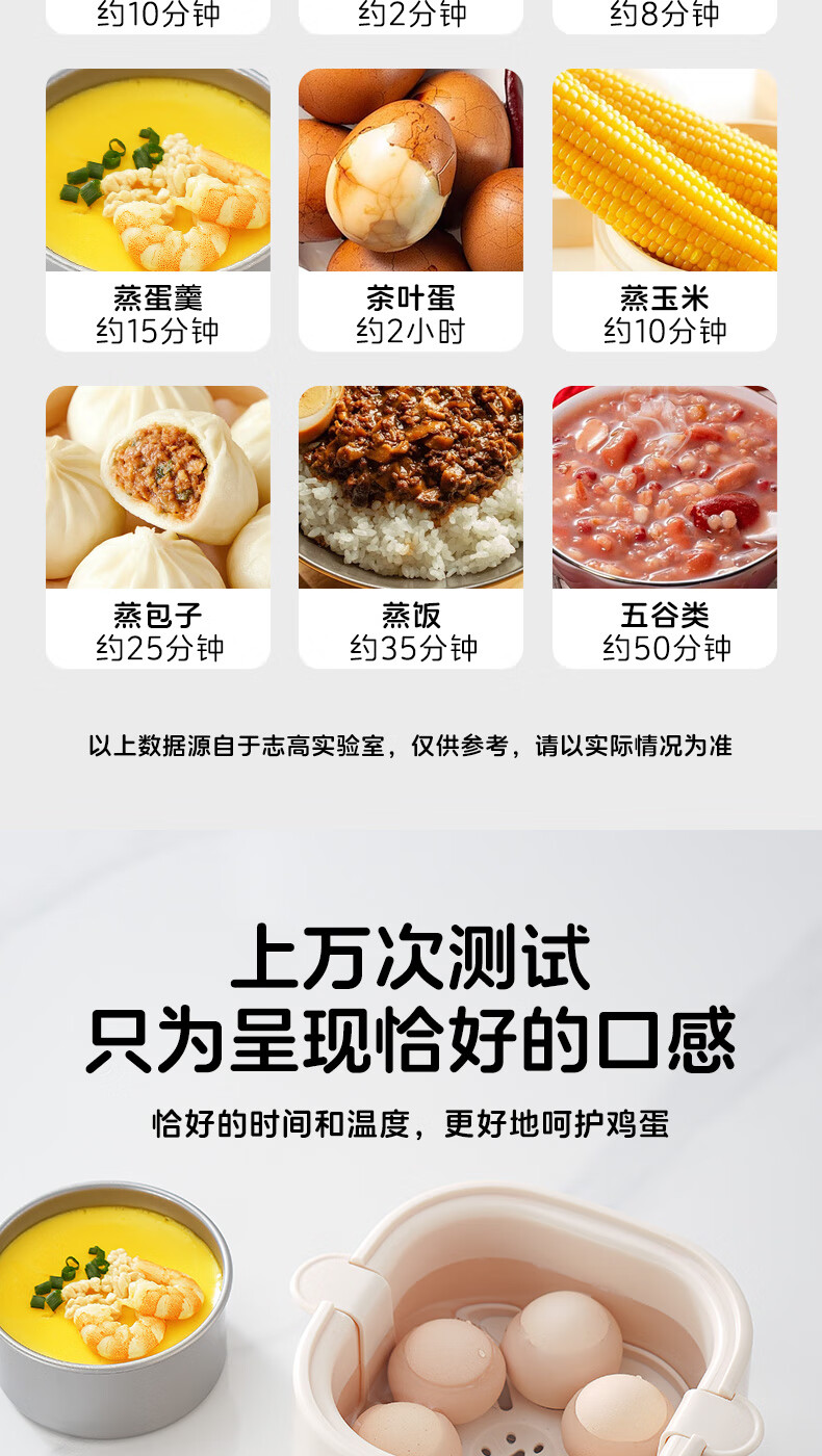 志高2025新款煮蛋器蒸蛋器多功能自动断电家用小型煮鸡蛋早餐神器蒸煮一体机预约定时七夕礼物 双层 彩屏款【无蒸碗】