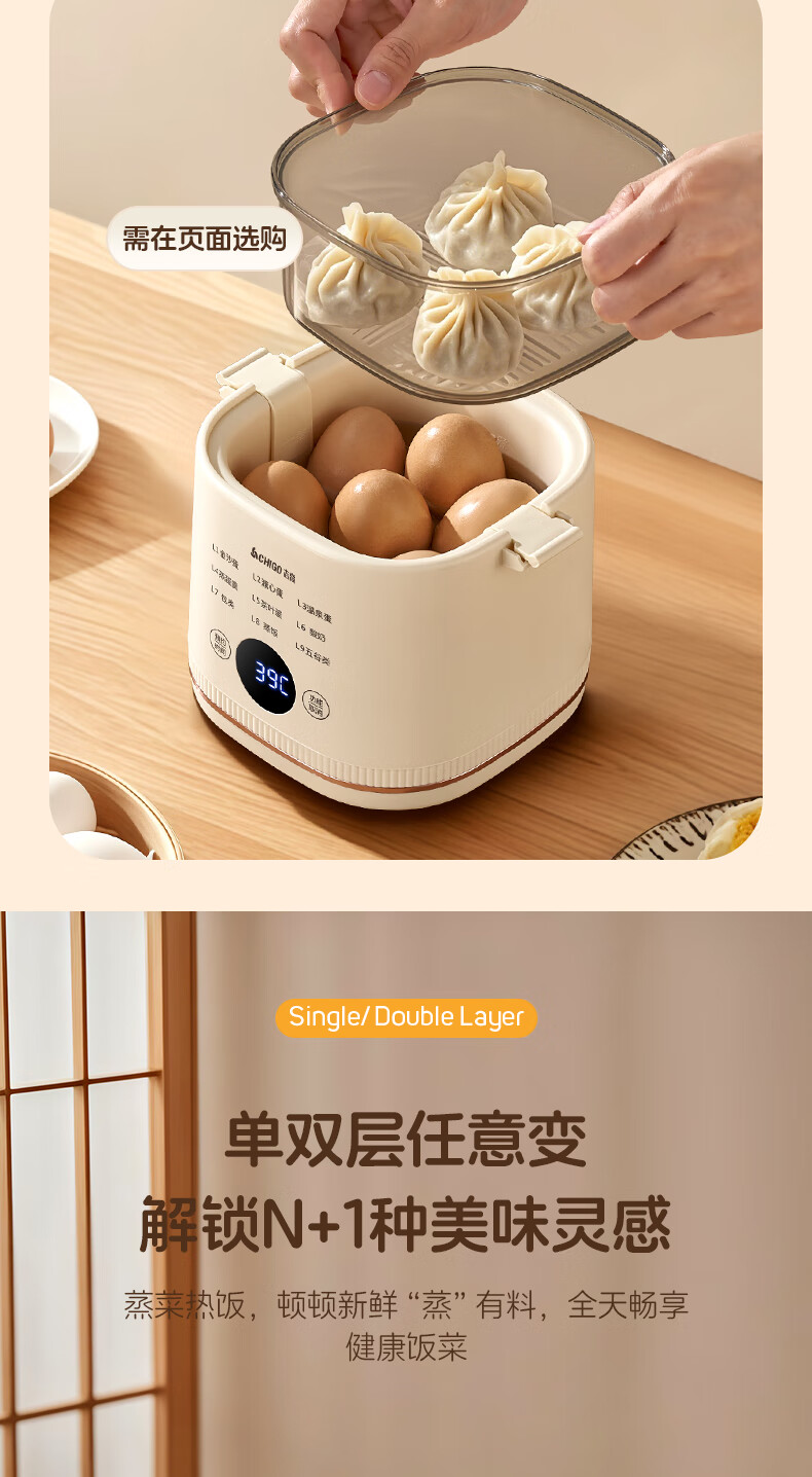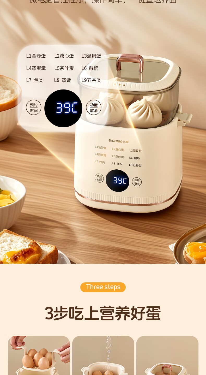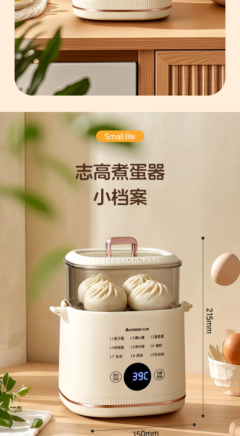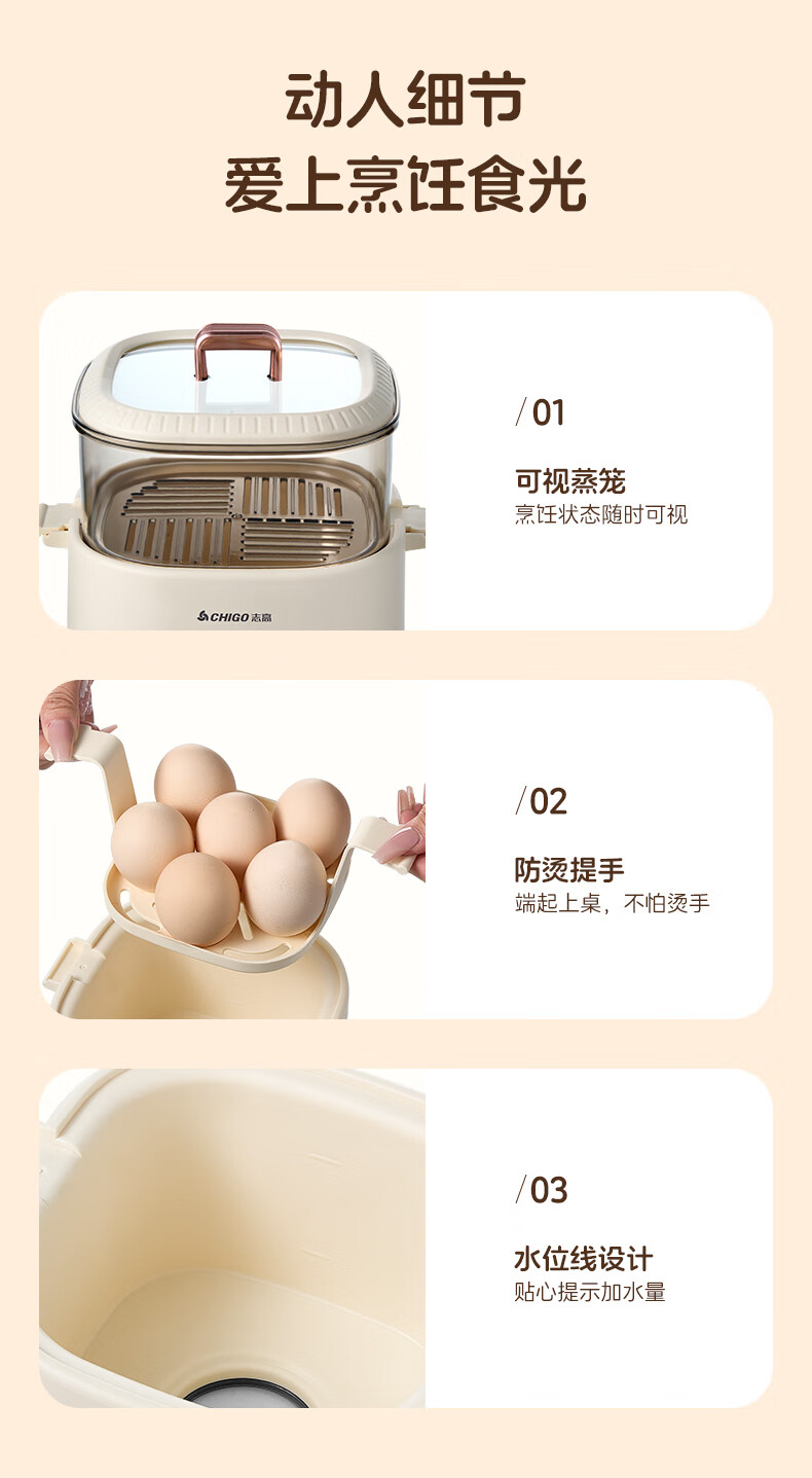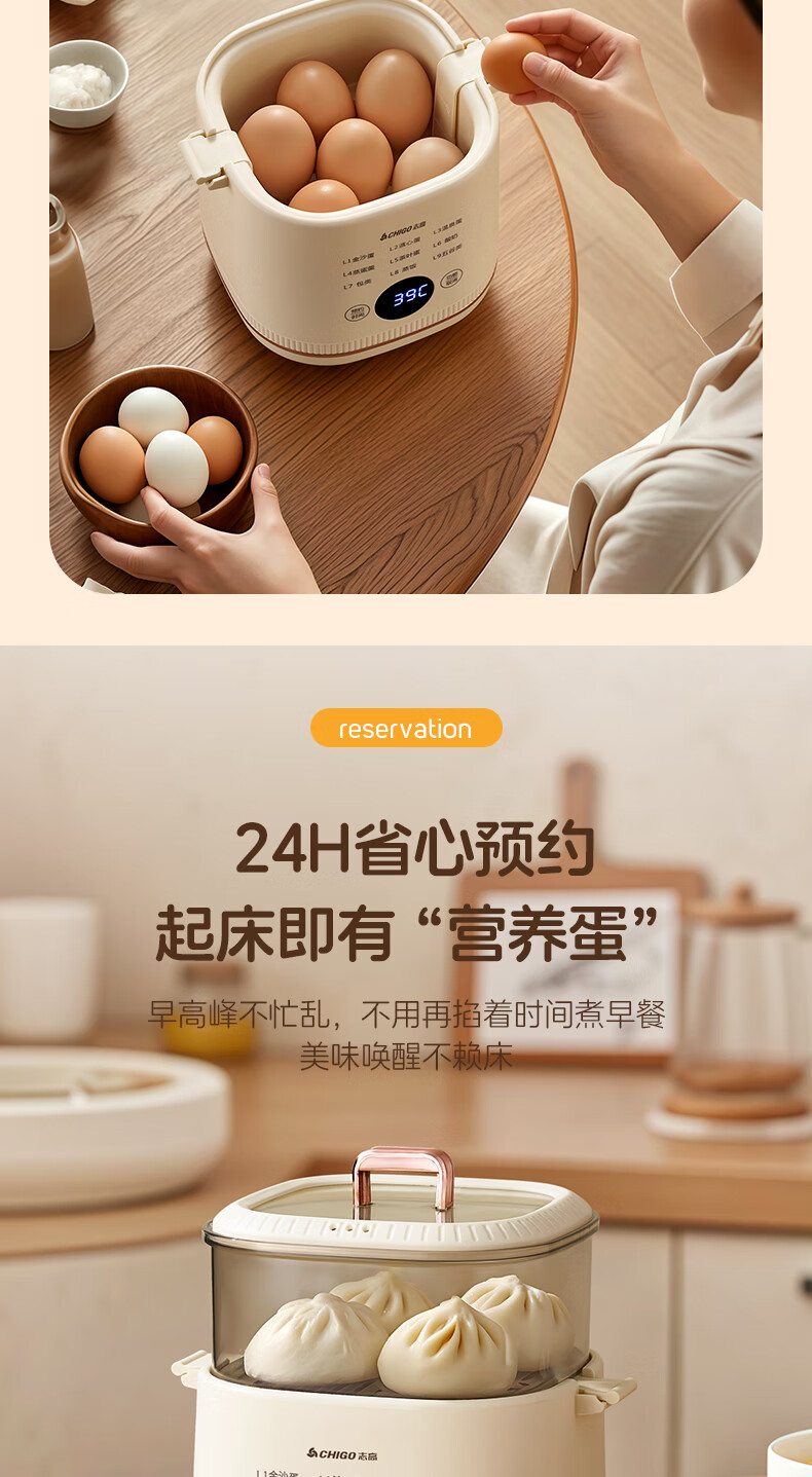 志高2025新款煮蛋器蒸蛋器多功能自动断电家用小型煮鸡蛋早餐神器蒸煮一体机预约定时七夕礼物 双层 彩屏款【无蒸碗】