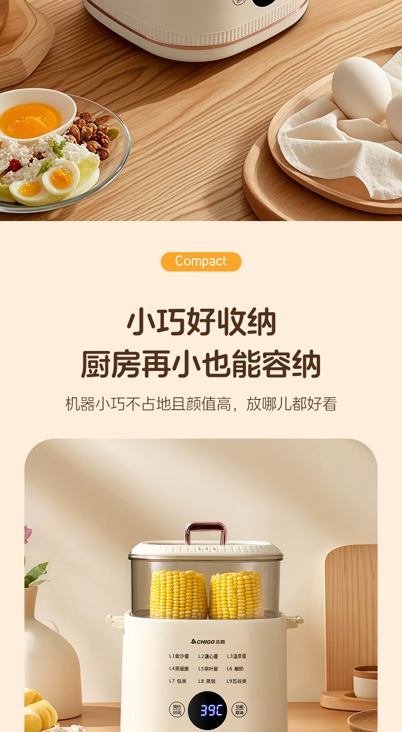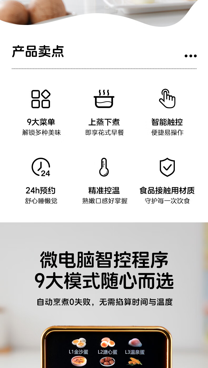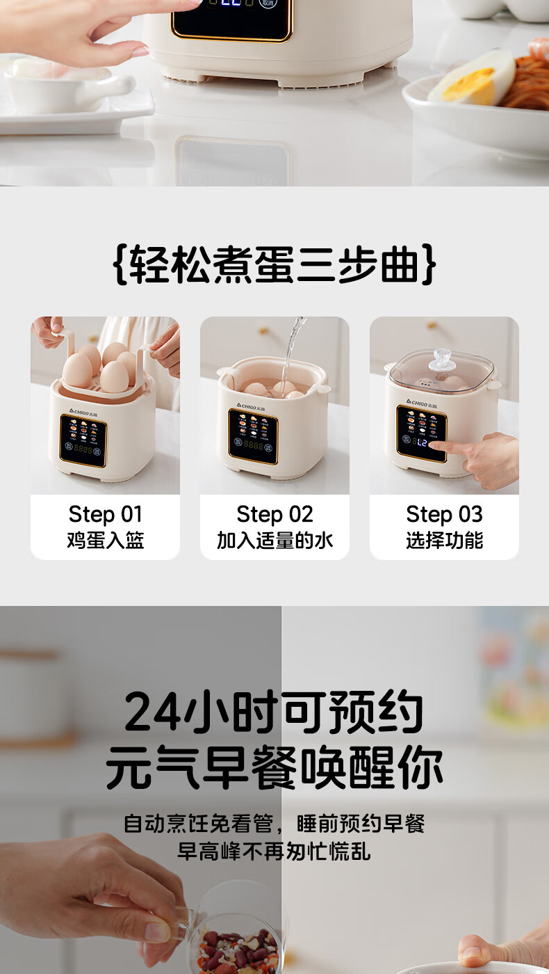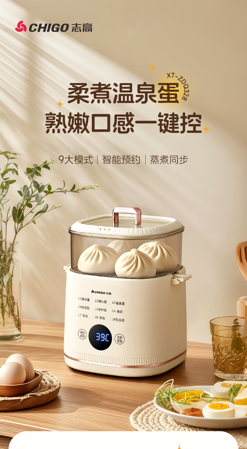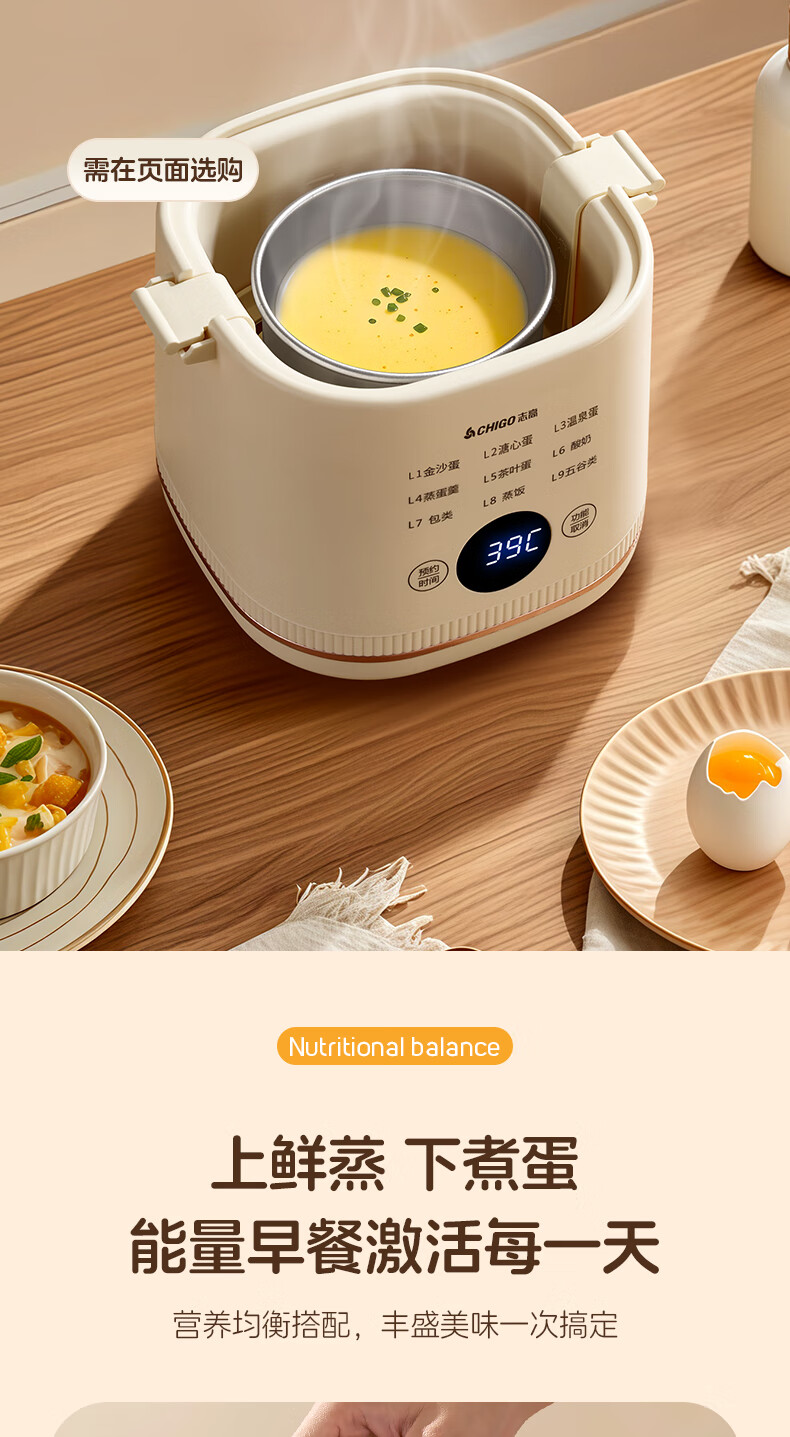 志高2025新款煮蛋器蒸蛋器多功能自动断电家用小型煮鸡蛋早餐神器蒸煮一体机预约定时七夕礼物 双层 彩屏款【无蒸碗】