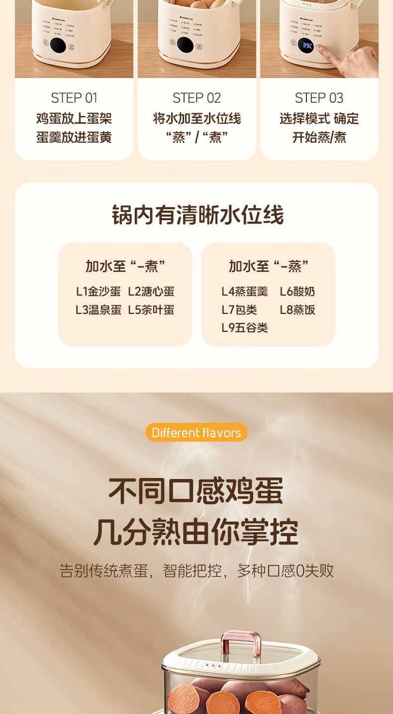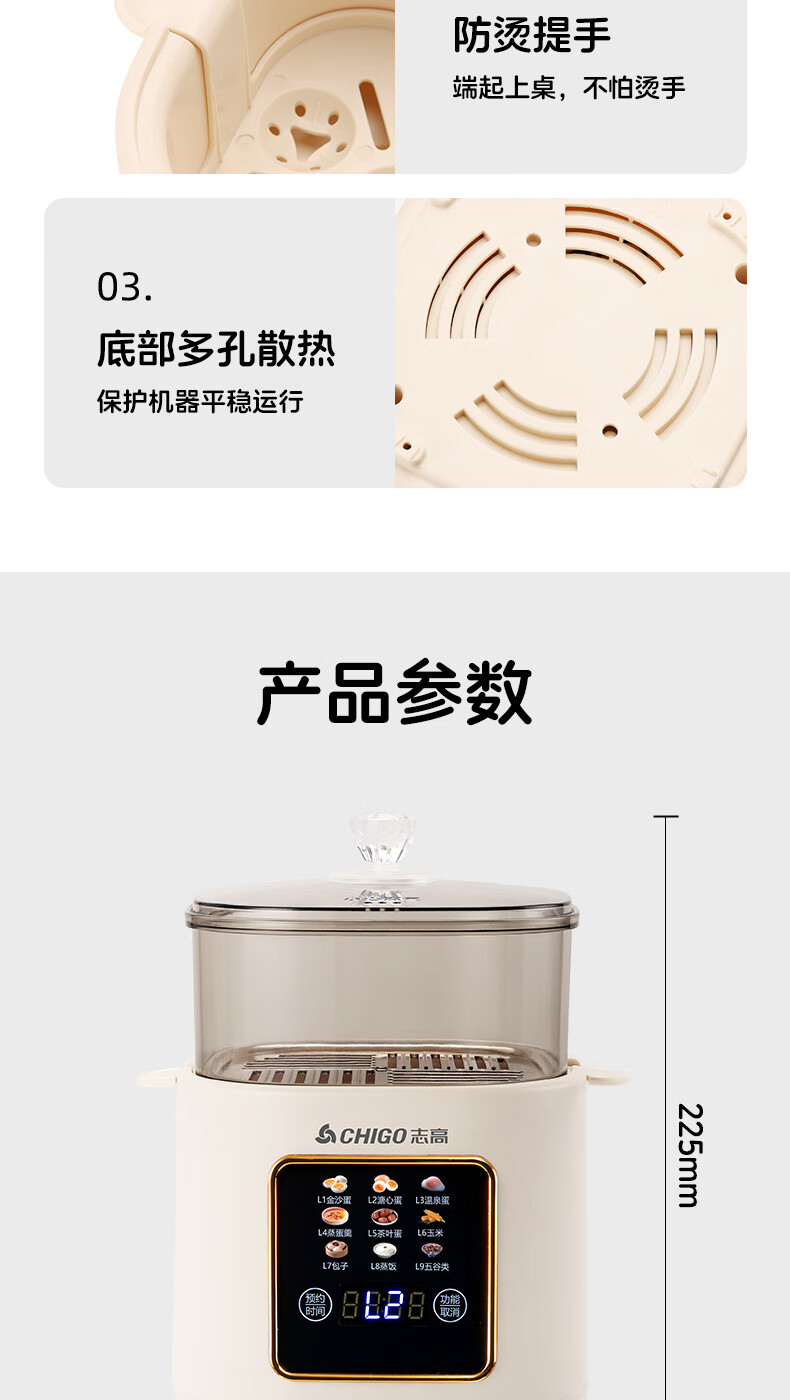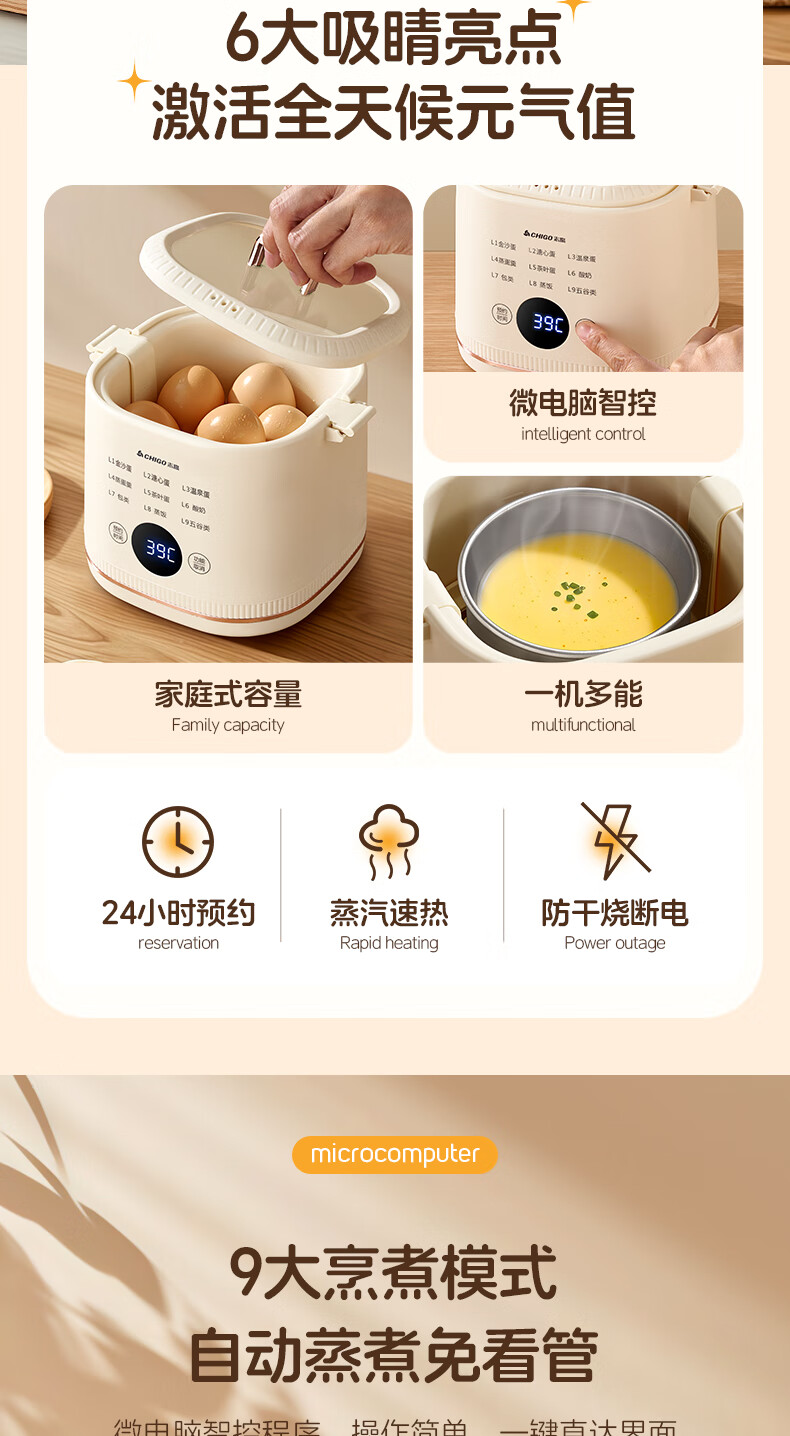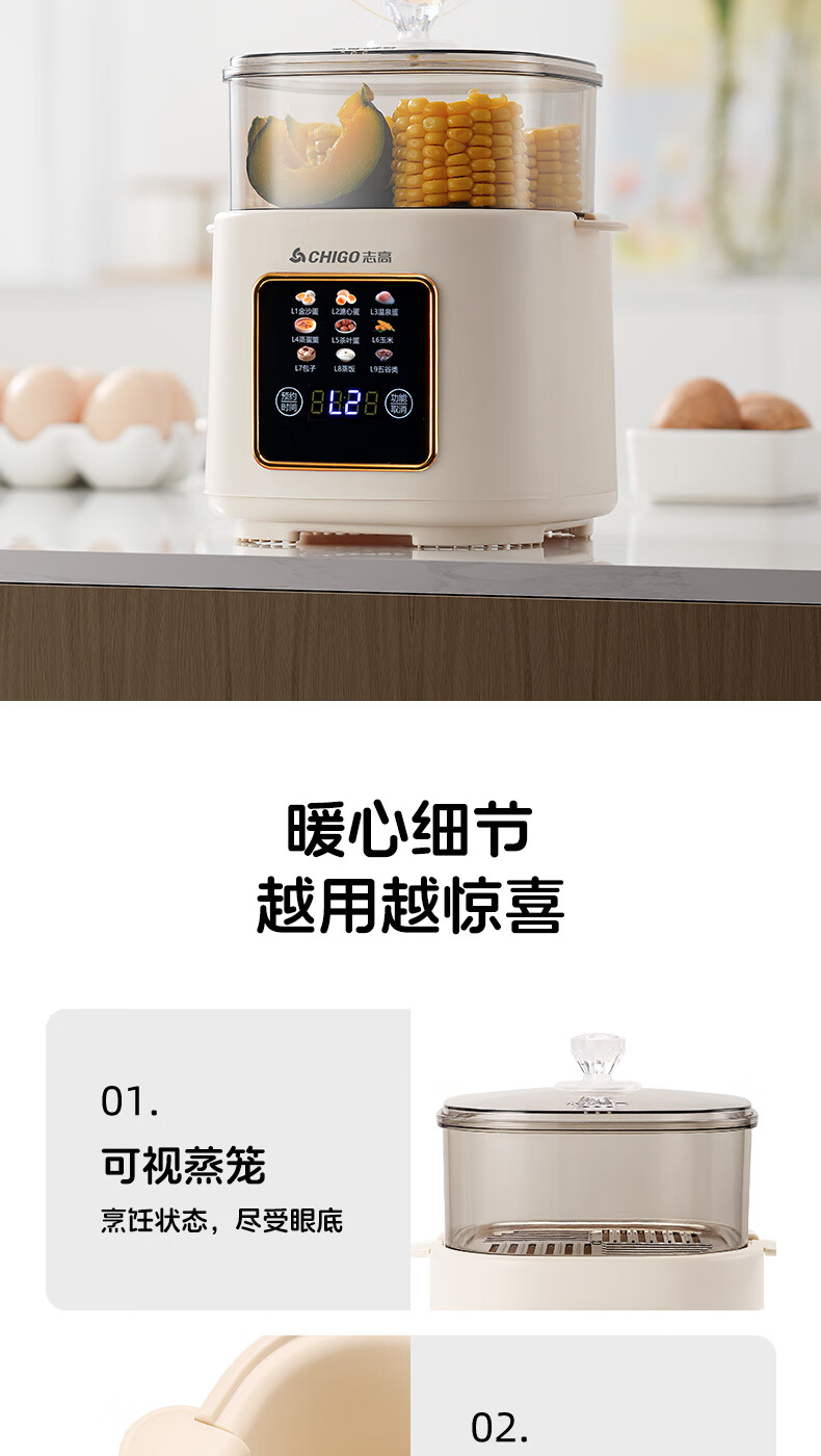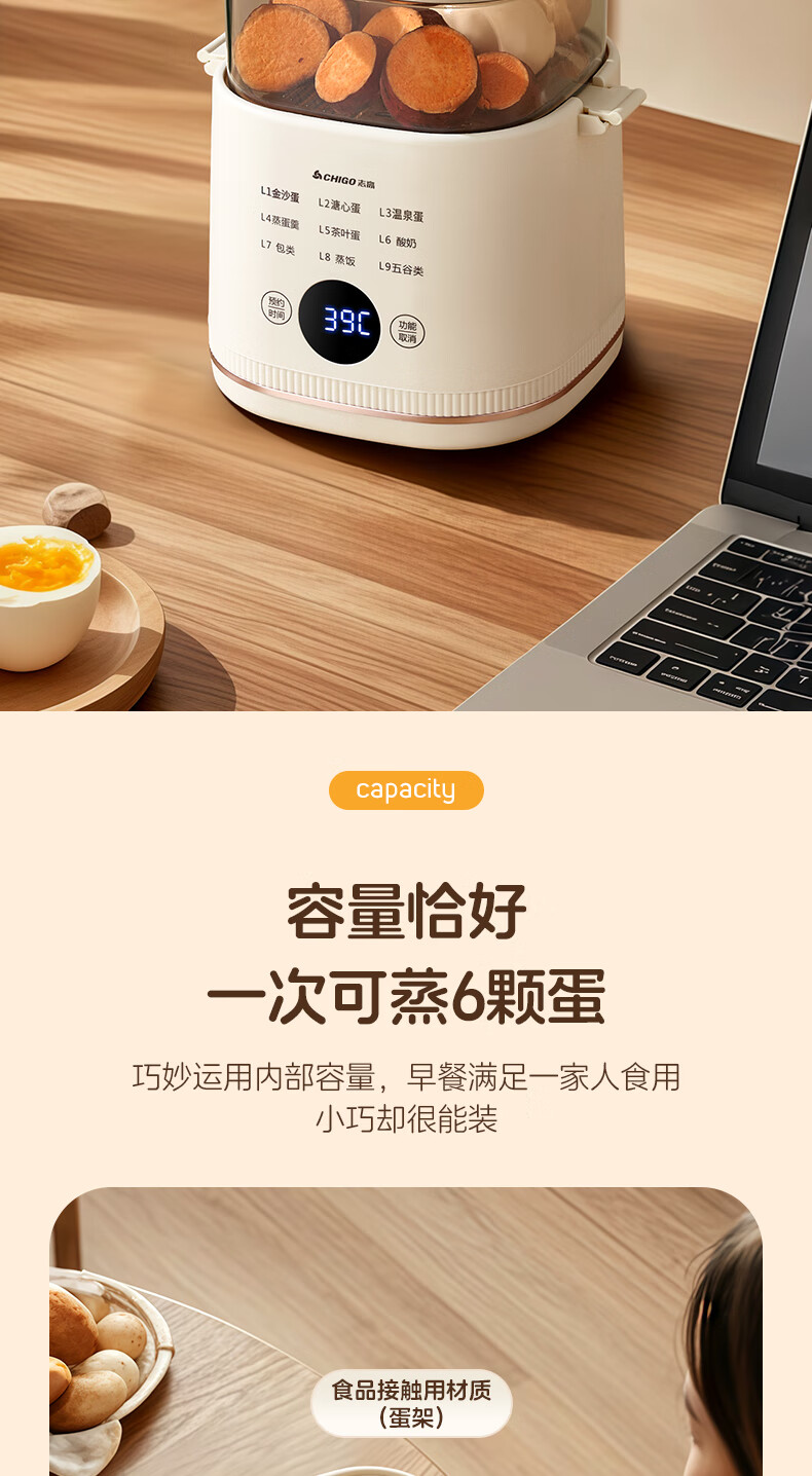 志高2025新款煮蛋器蒸蛋器多功能自动断电家用小型煮鸡蛋早餐神器蒸煮一体机预约定时七夕礼物 双层 彩屏款【无蒸碗】