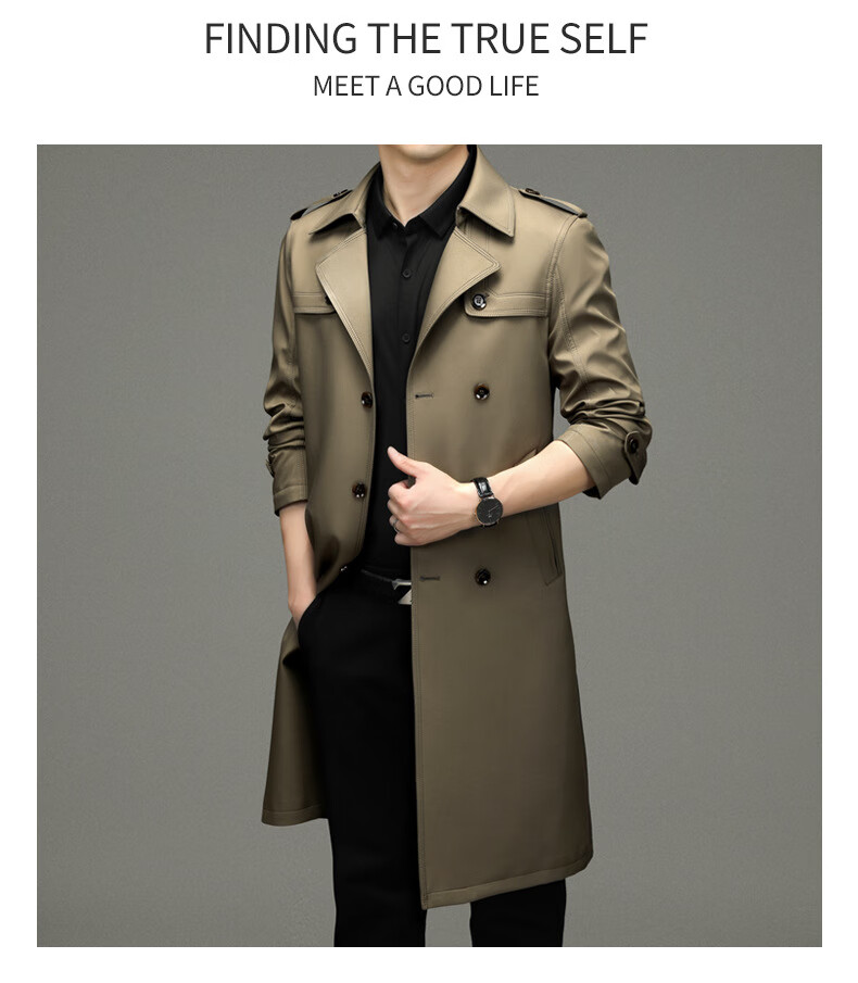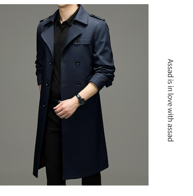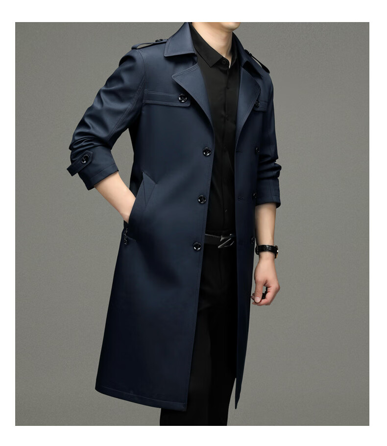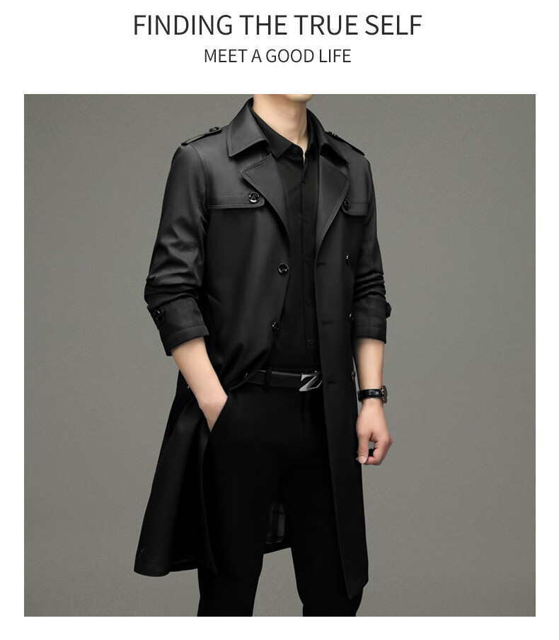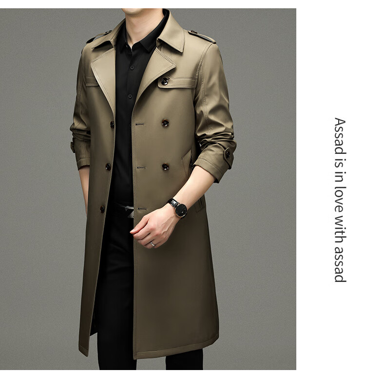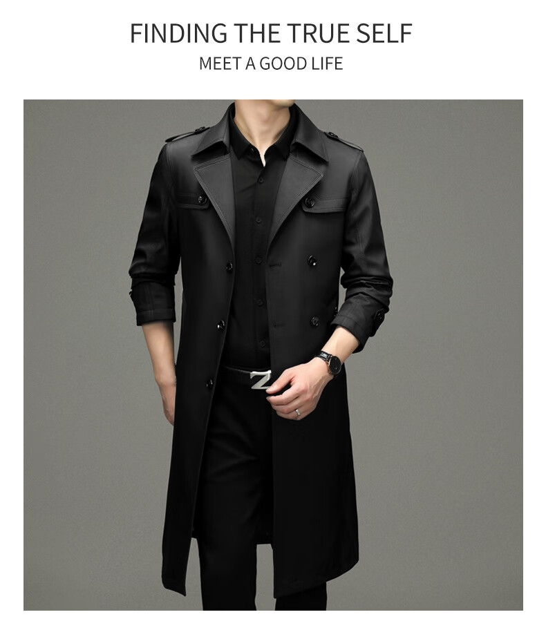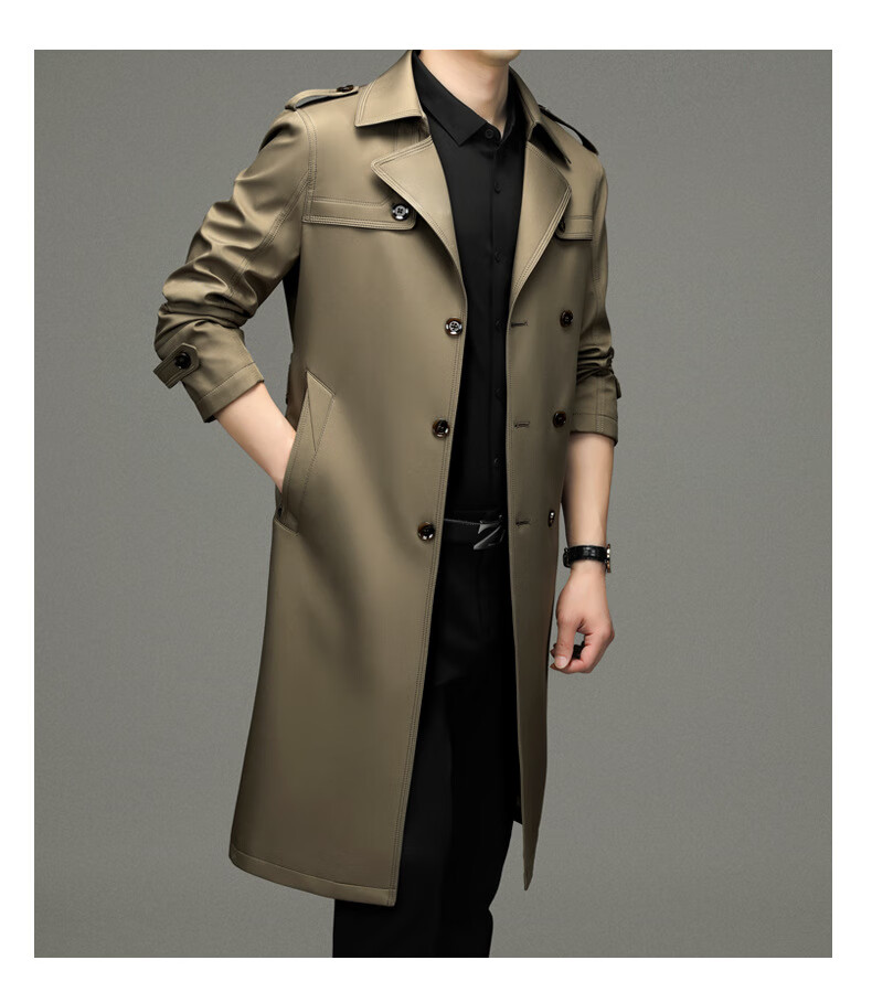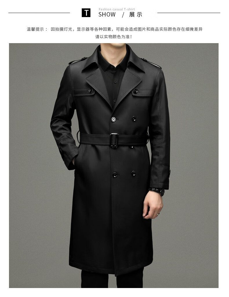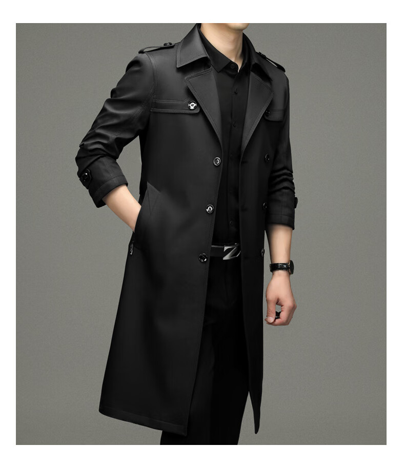 罗蒙(ROMON)男士免烫过膝长款双排扣风衣大衣2025春秋季新款长款风衣男 黑色 XL 180
