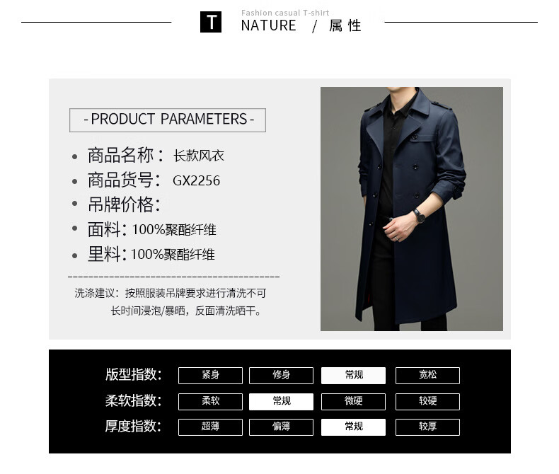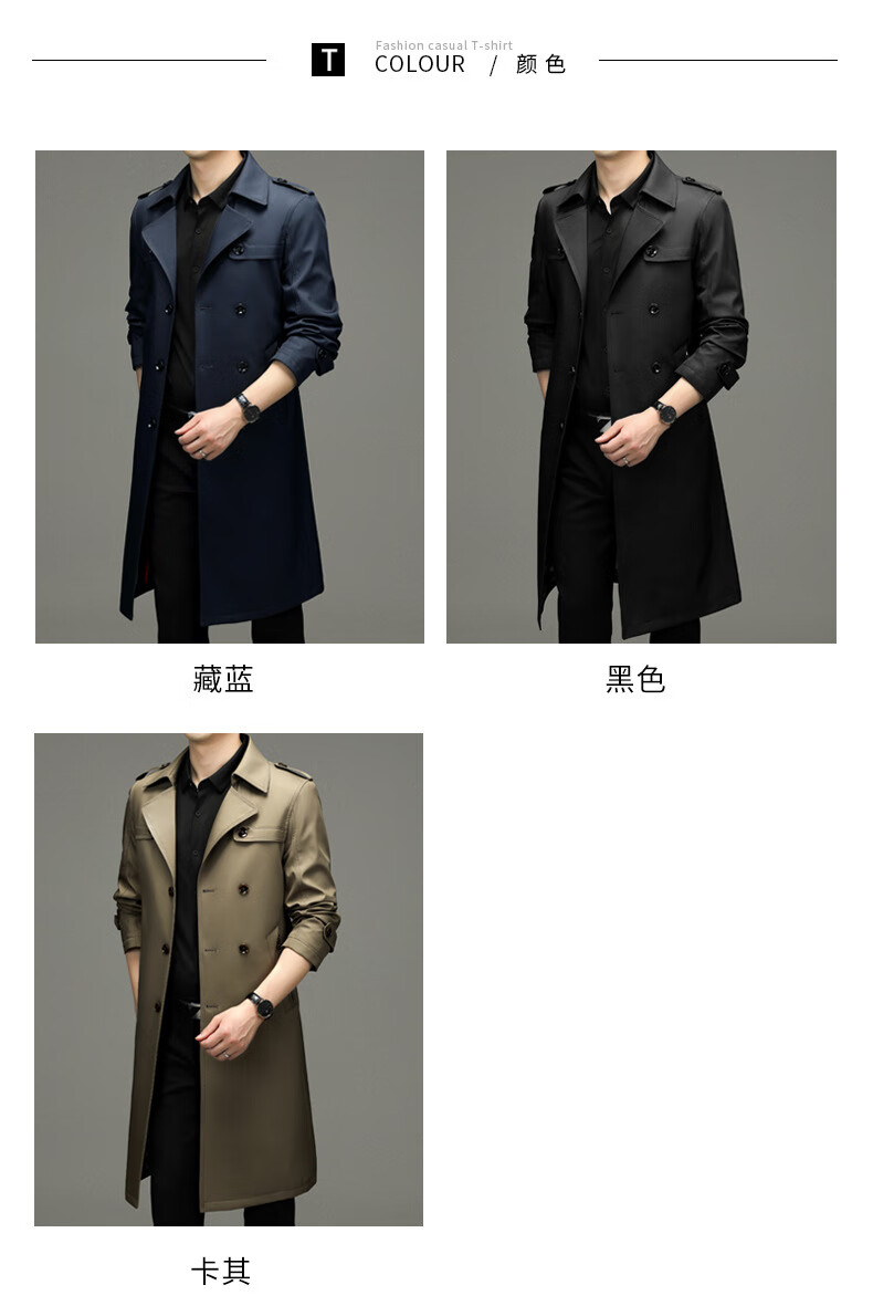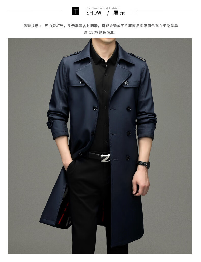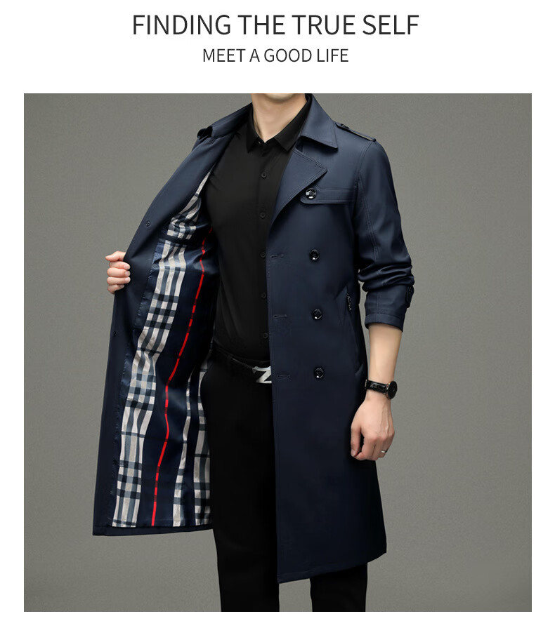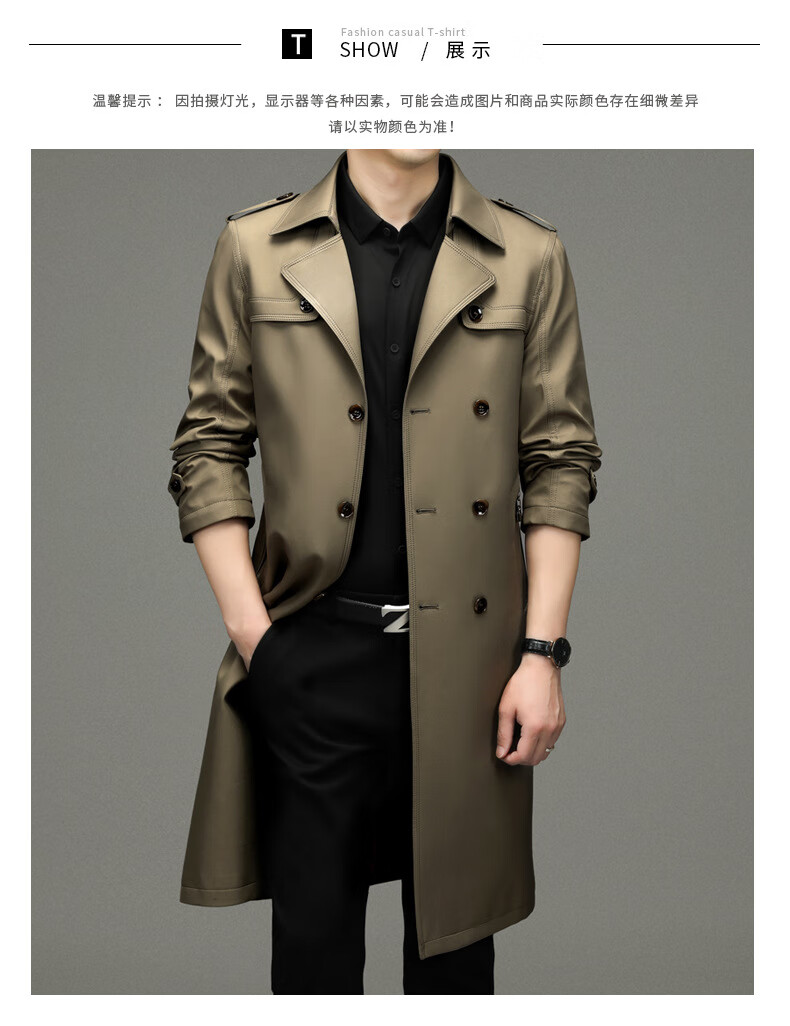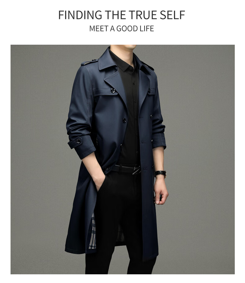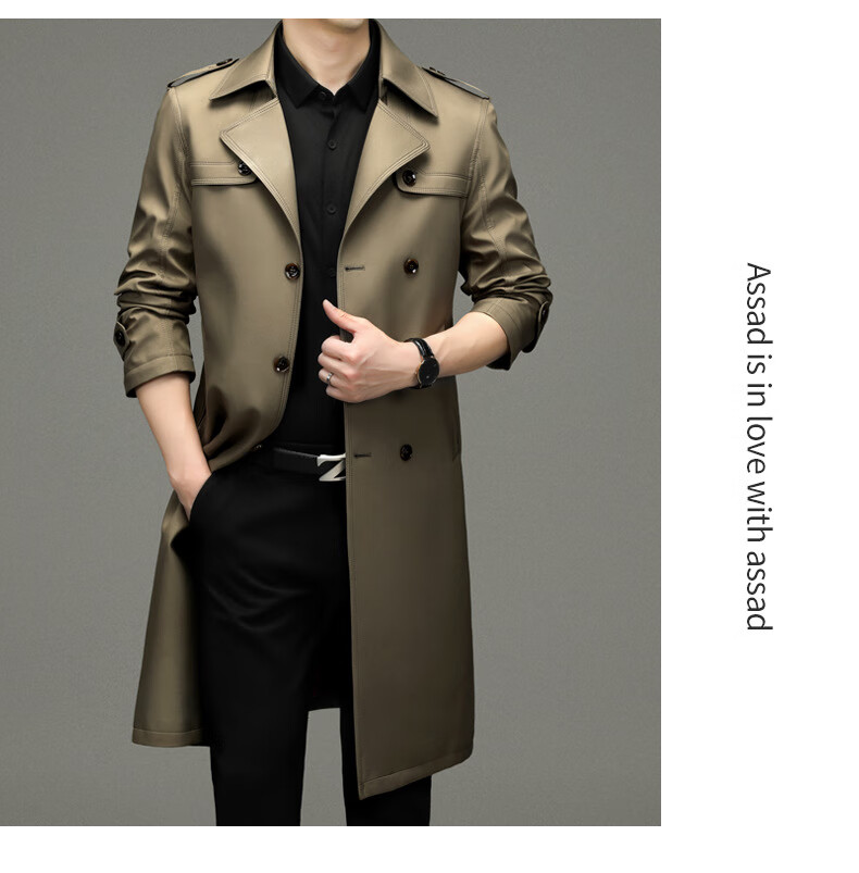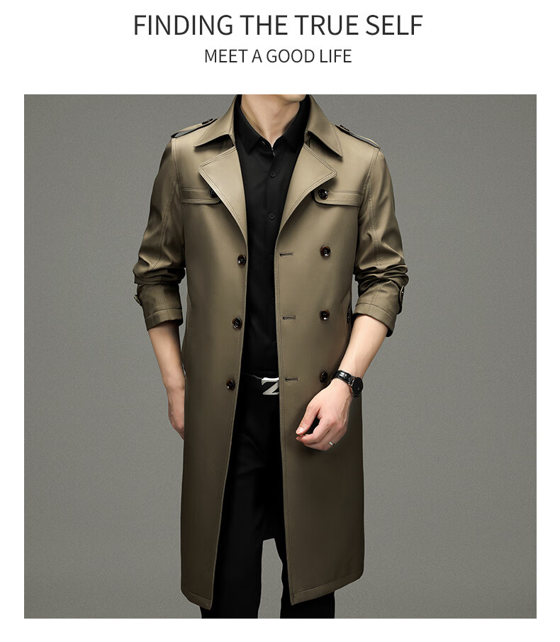 罗蒙(ROMON)男士免烫过膝长款双排扣风衣大衣2025春秋季新款长款风衣男 黑色 XL 180