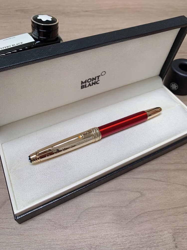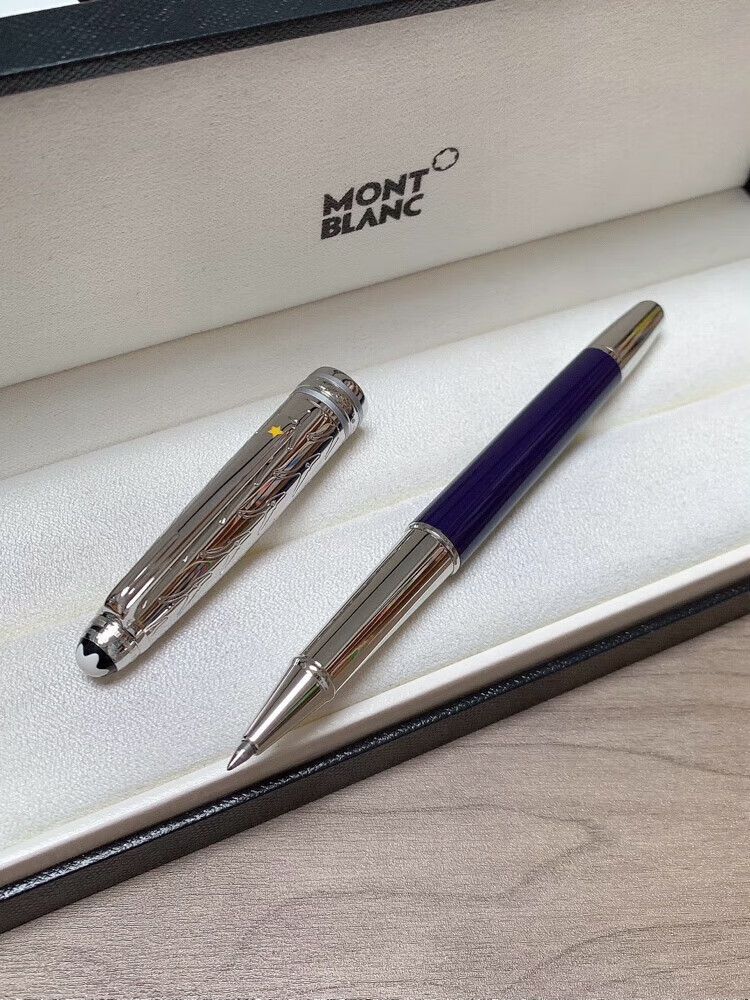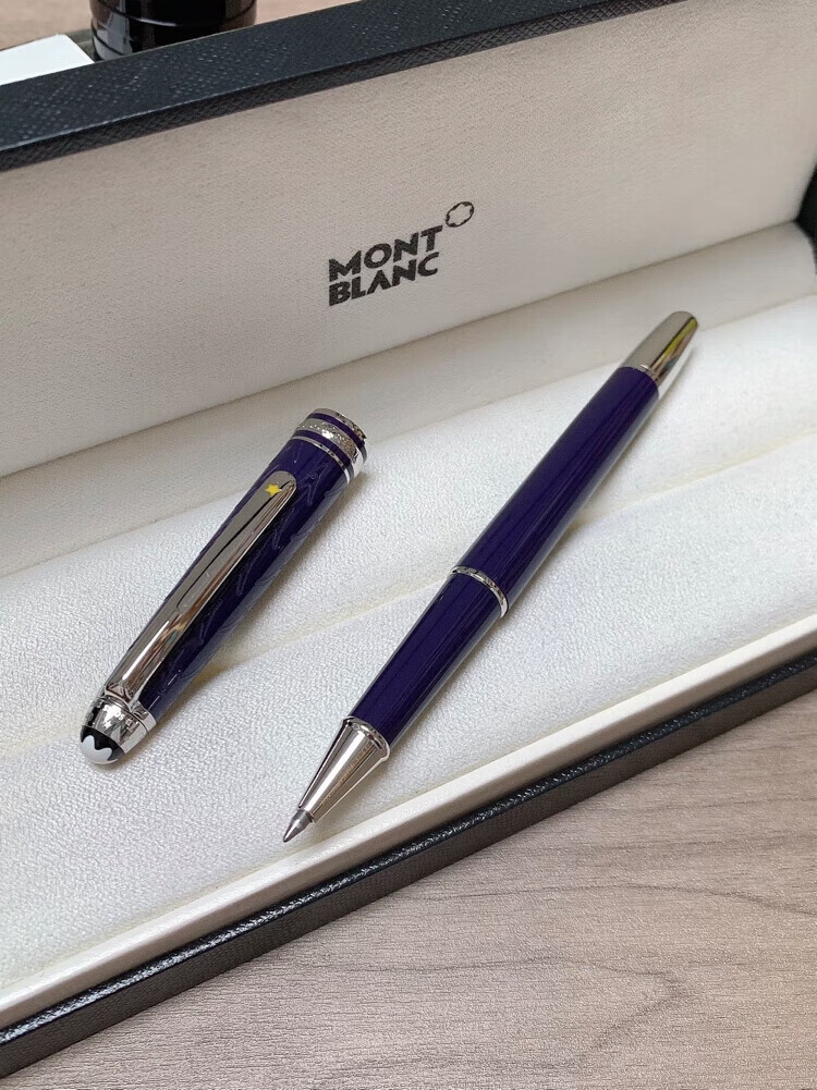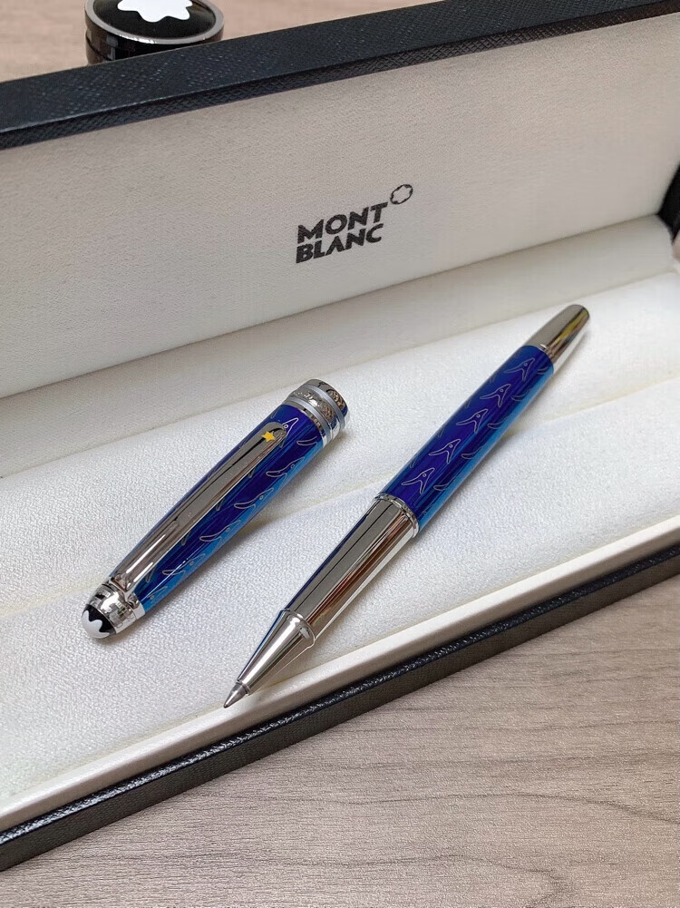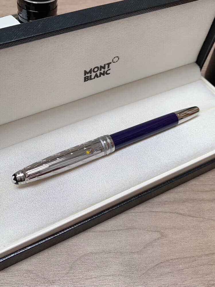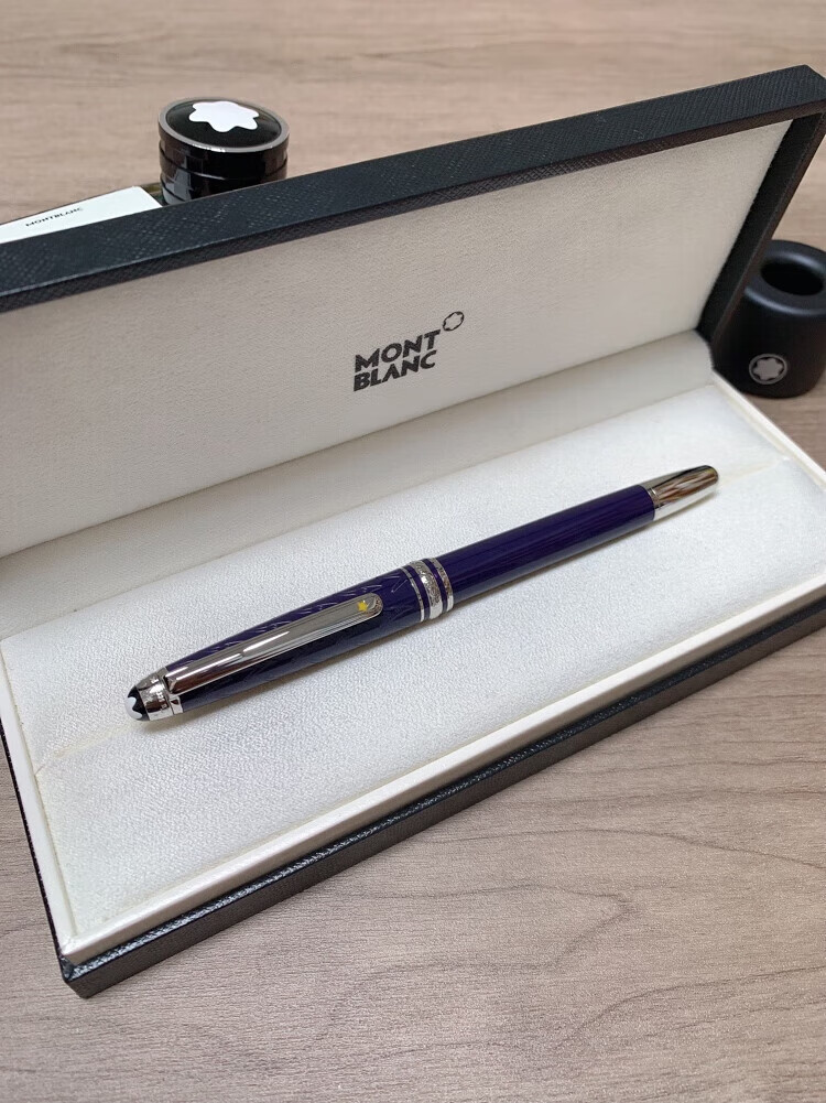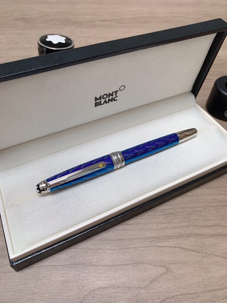 万宝龙小王子签字笔玫瑰宝珠笔经典款商务送礼定制刻字全国联保 全蓝款+礼盒包装+(赠原装笔芯两只)