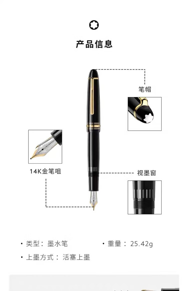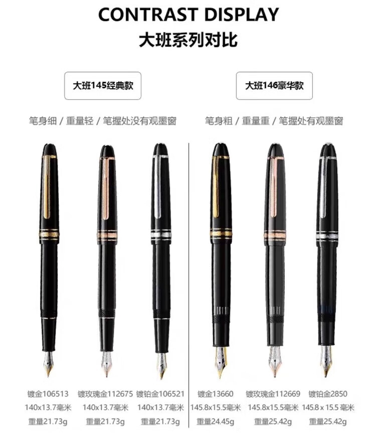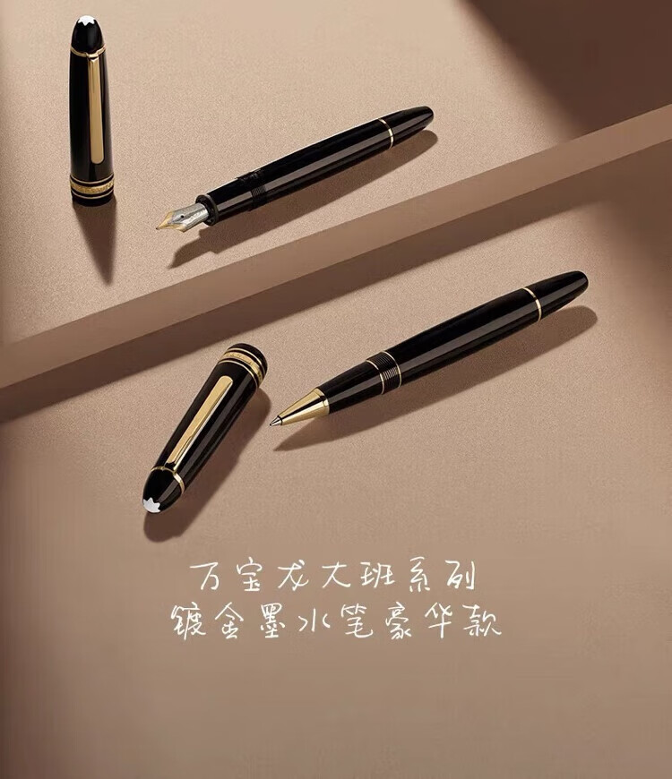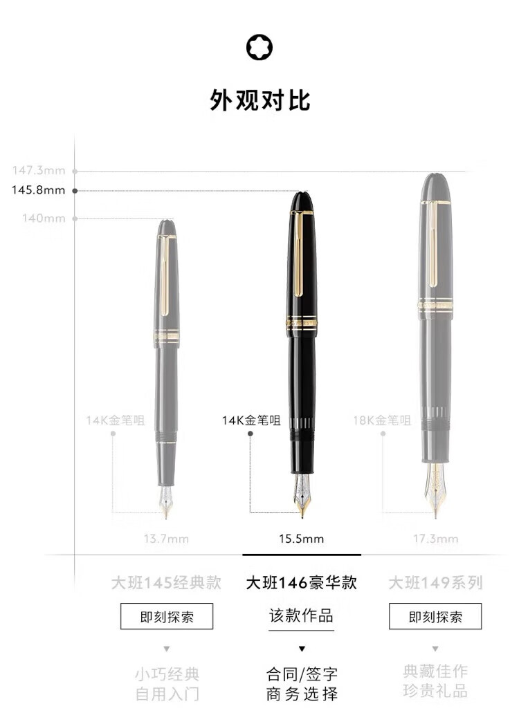 万宝龙Montblanc145/146经典款豪华商务钢笔大班系列送礼墨水笔 联保刻字 146镀金色赠送原装墨水 F尖 官方标配 明尖