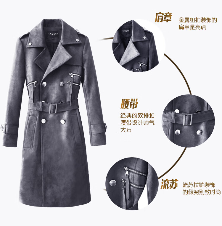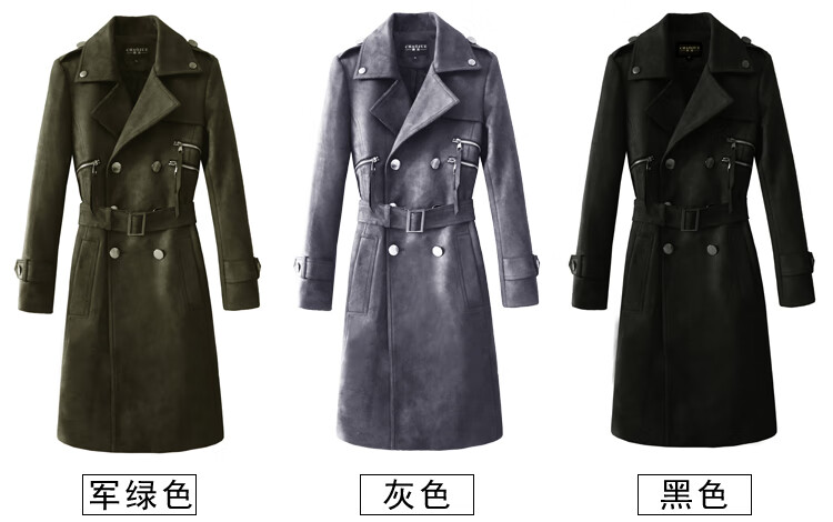 花花公子(PLAYBOY)复古麂皮风衣男士春秋季新款时尚欧货流苏帅气中长版外套男装潮流 军绿色 男款 S