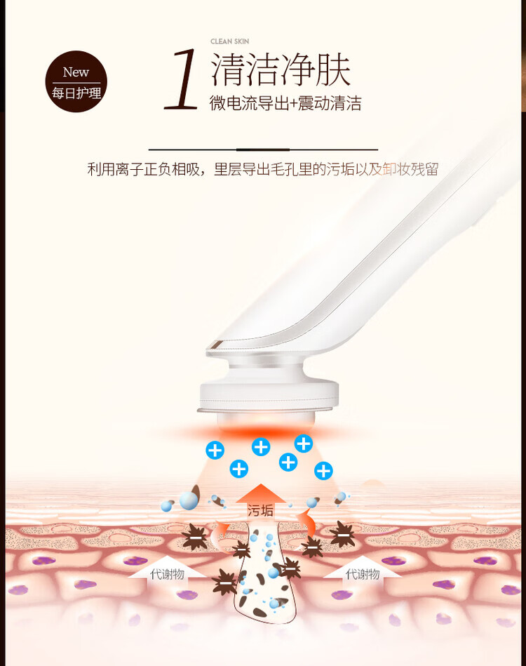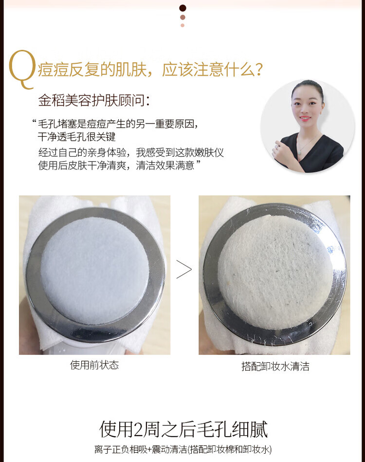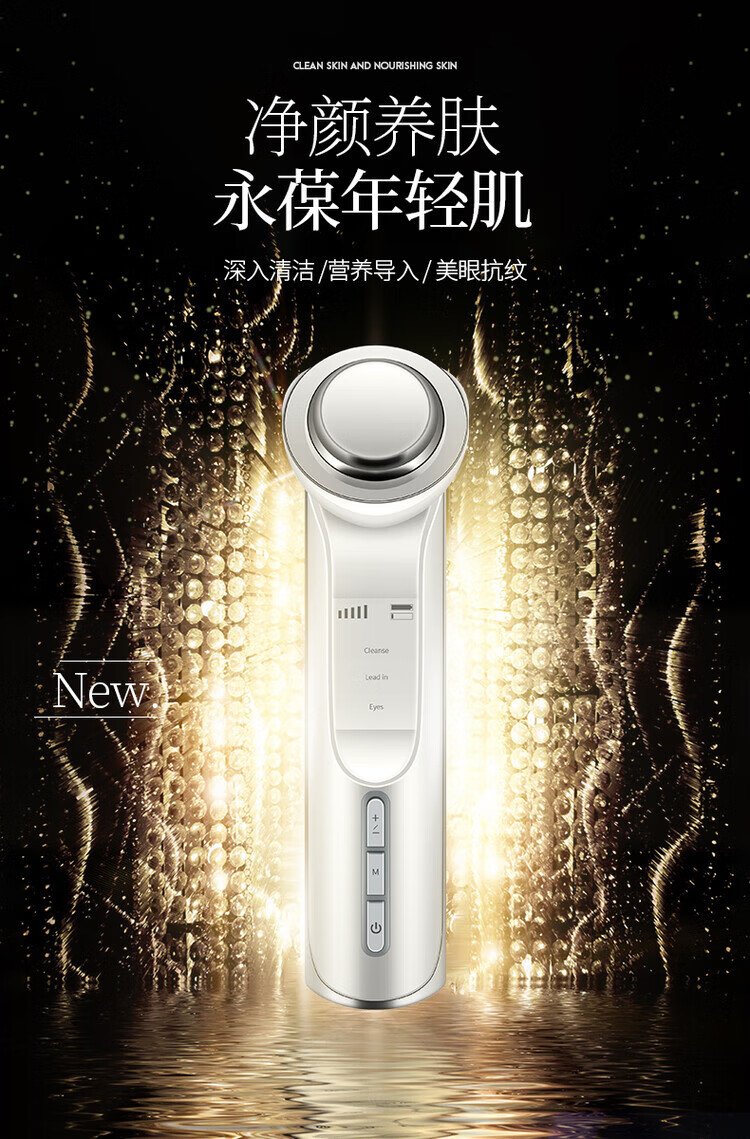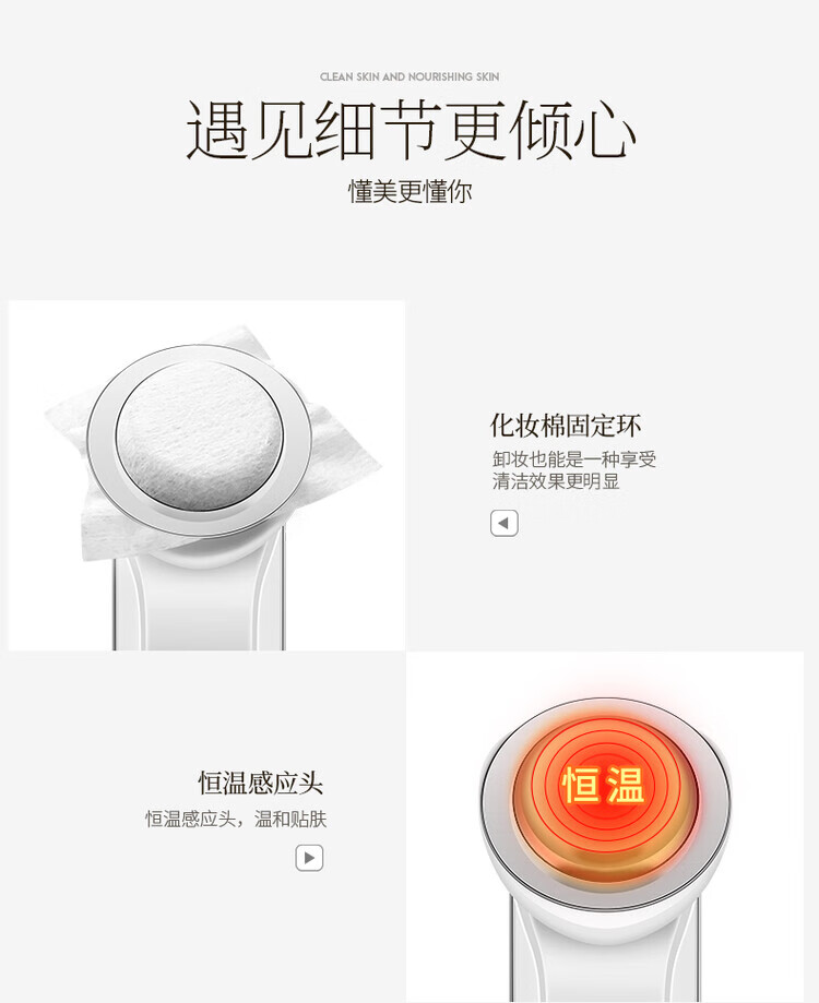 Qiaran Japanese facial cleansing instrument, deep cleaning facial pore cleaning household facial mask essence introduction instrument, facial massage beauty instrument KD9960 white-introduction + makeup removal + warming (comes with cotton pads)