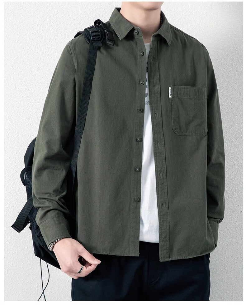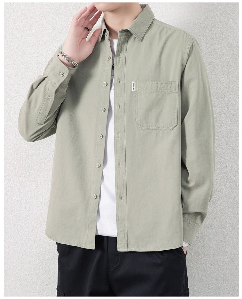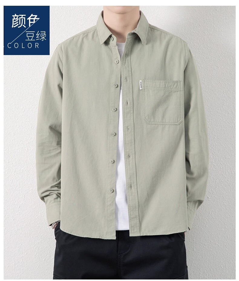 ROMON рубашка с длинными рукавами, мужская рубашка из чистого хлопка без железа, 2025, осенне-зимняя бархатная модная повседневная рубашка-куртка для мужчин, зеленый боб, XL, рекомендуется 126-140Jin Jin, вес 0,5 кг.