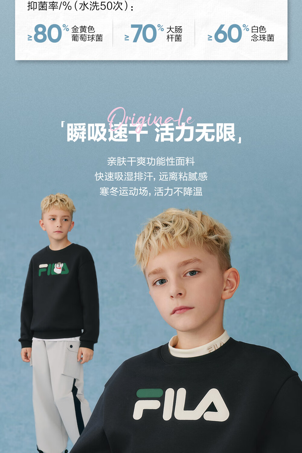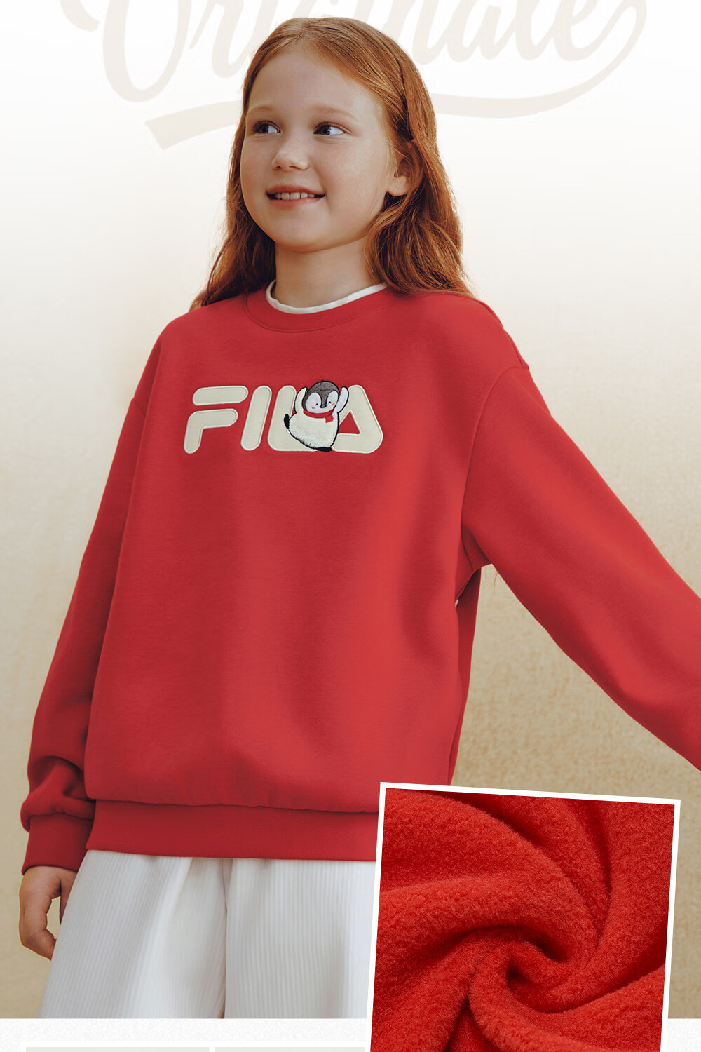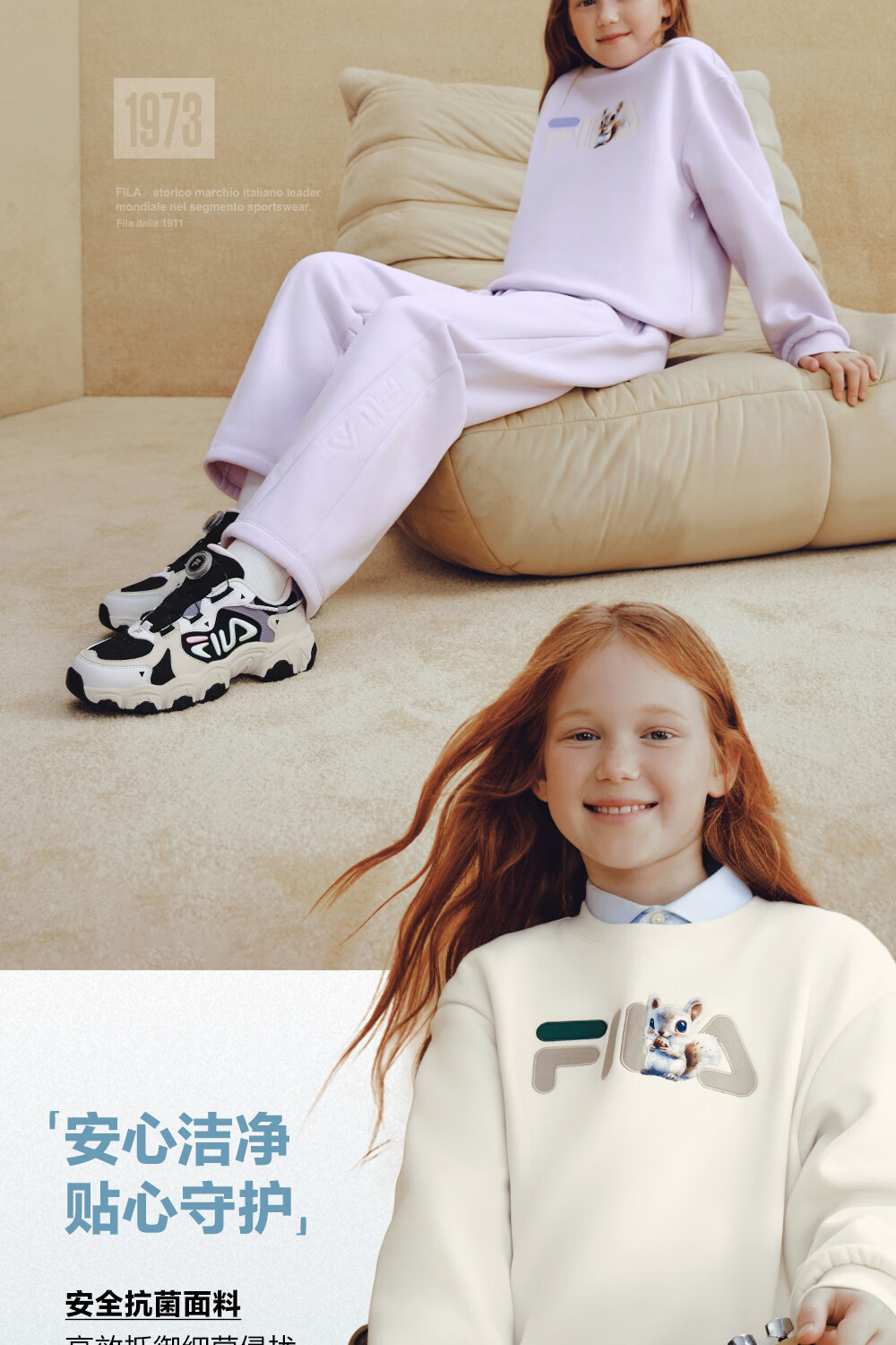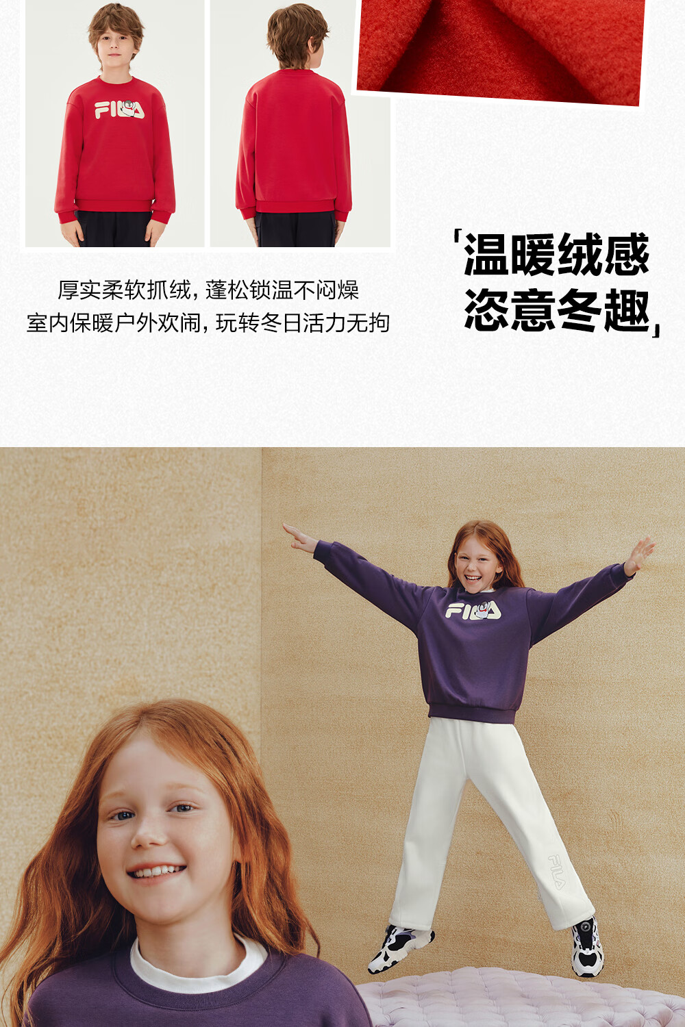 FILA【抗菌功能】斐乐儿童童装2025年冬季新款男女童小童加绒卫衣 樱花浅粉-PK 150
