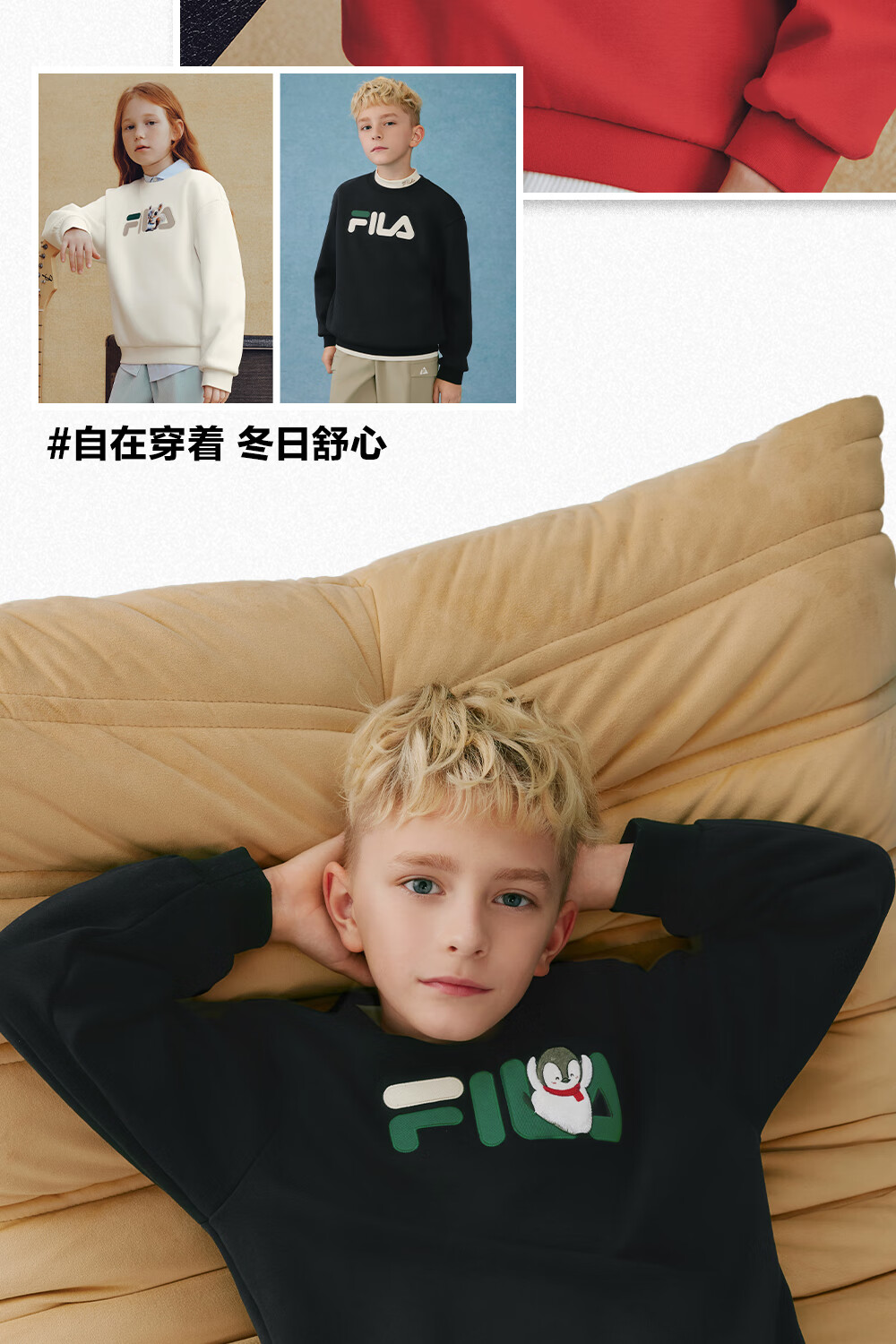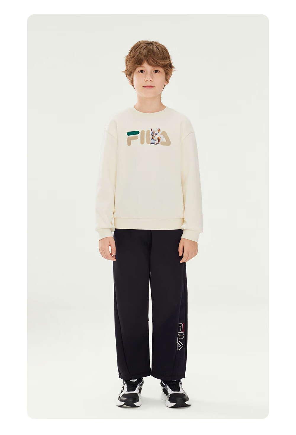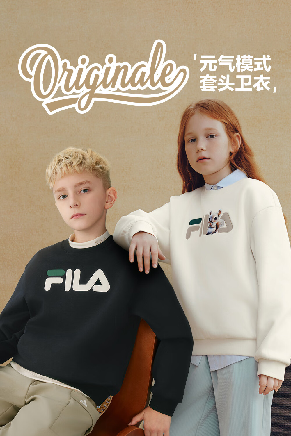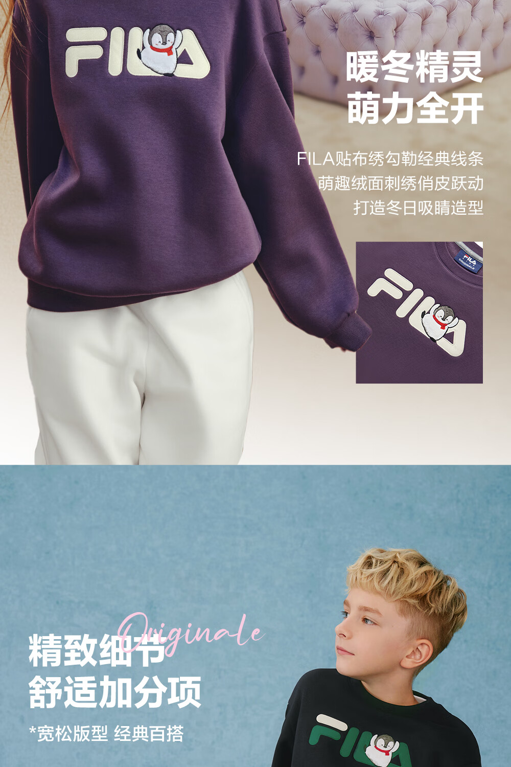FILA【抗菌功能】斐乐儿童童装2025年冬季新款男女童小童加绒卫衣 樱花浅粉-PK 150