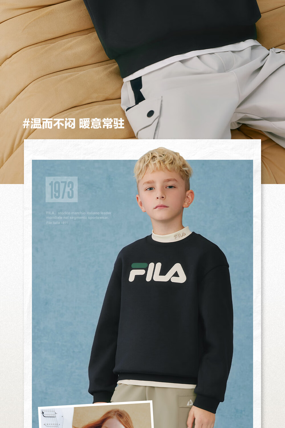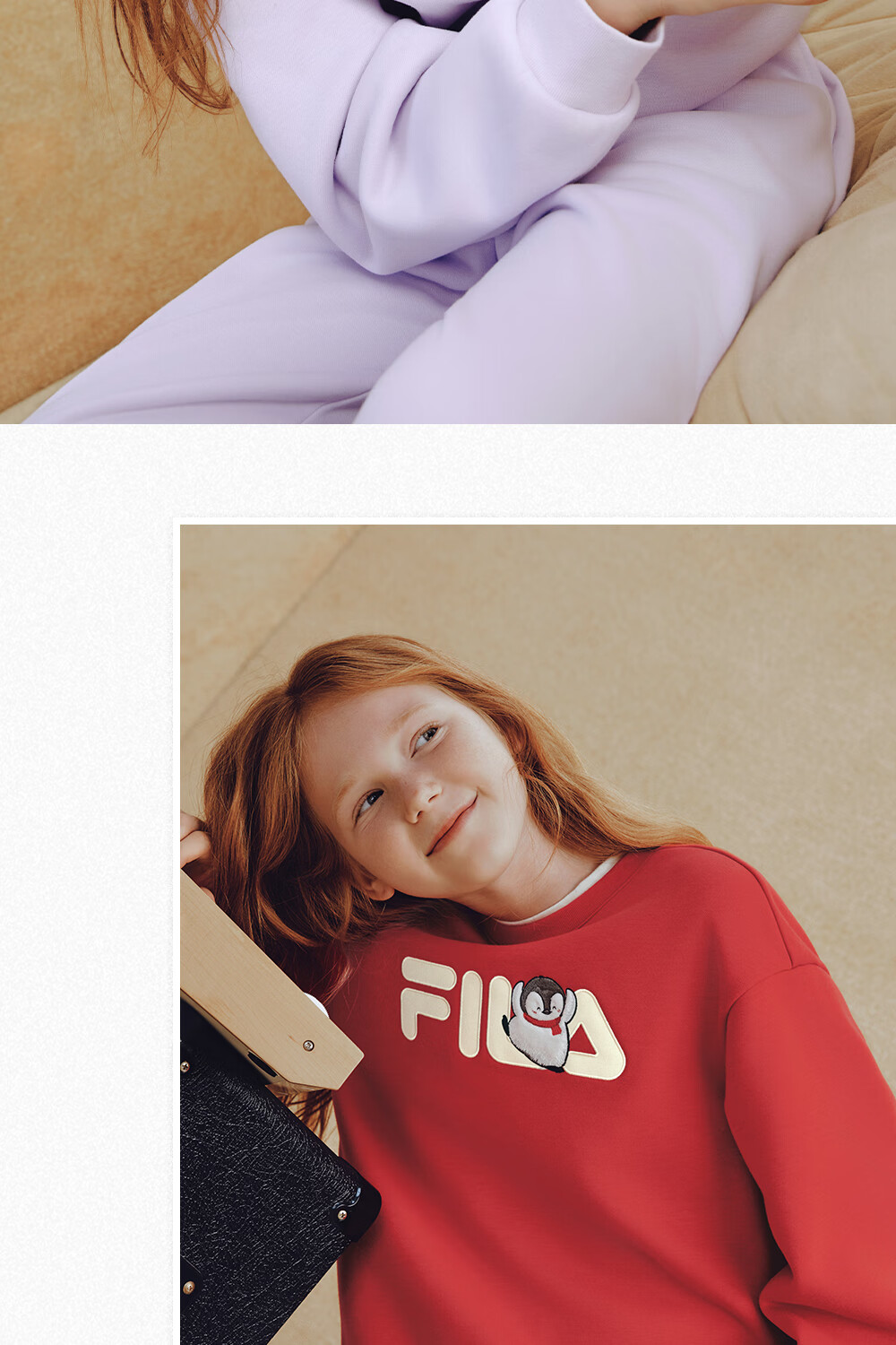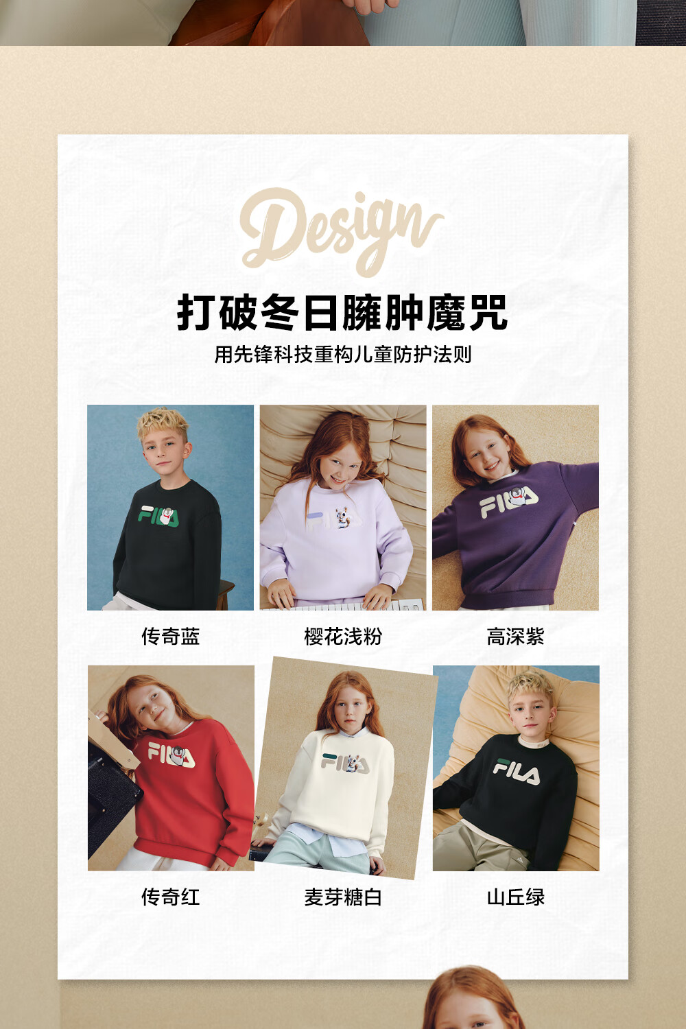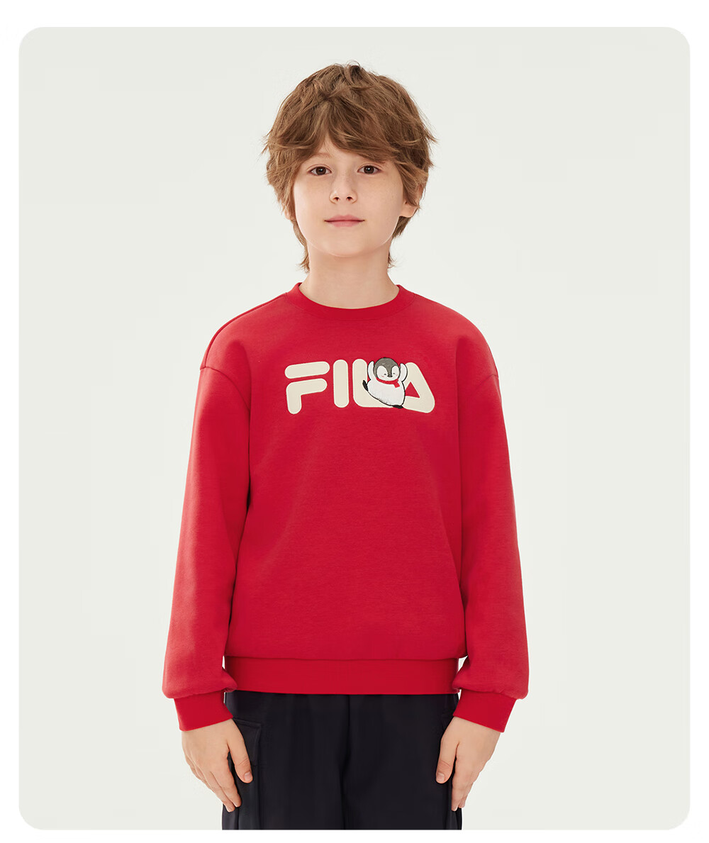 FILA【抗菌功能】斐乐儿童童装2025年冬季新款男女童小童加绒卫衣 樱花浅粉-PK 150
