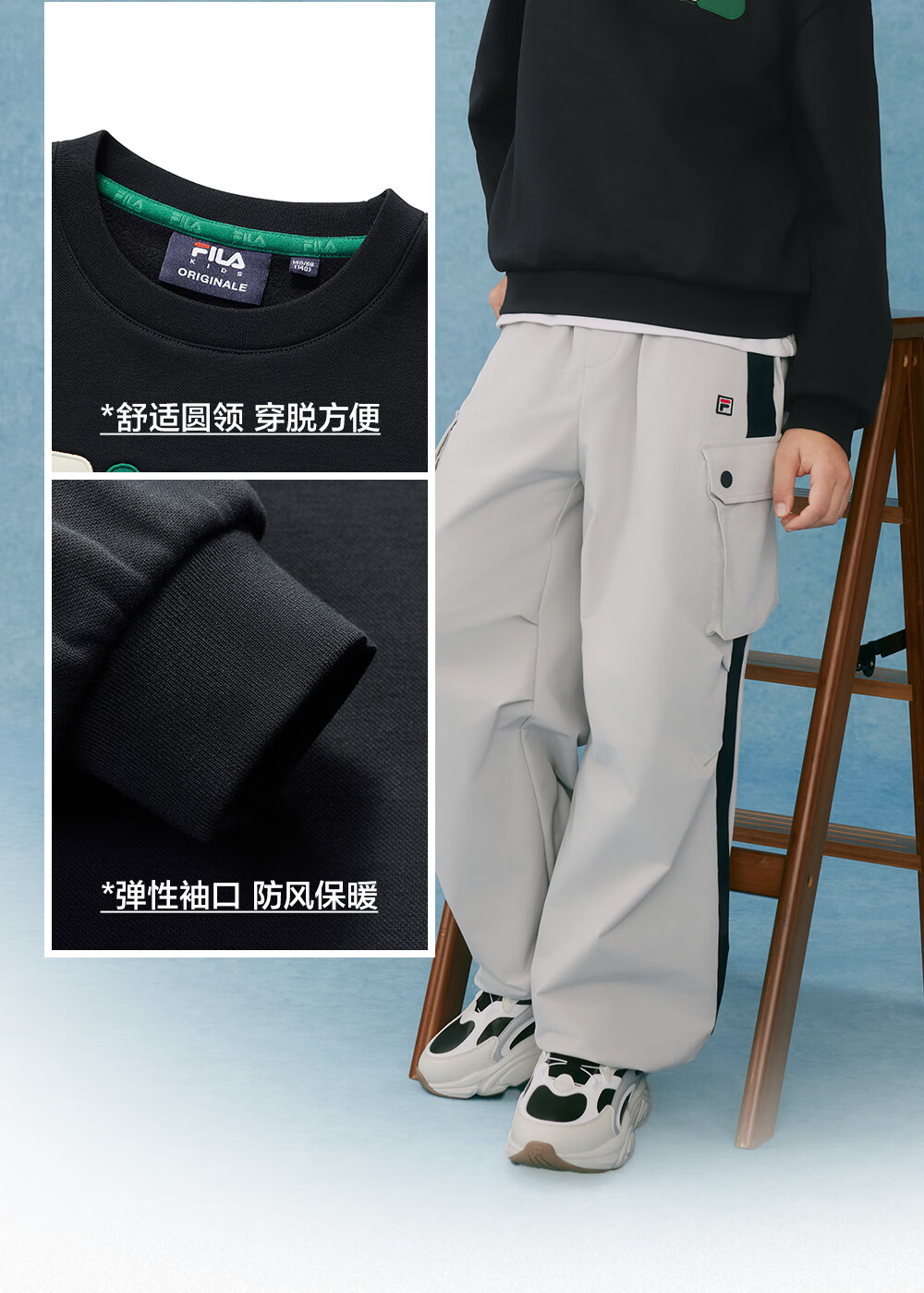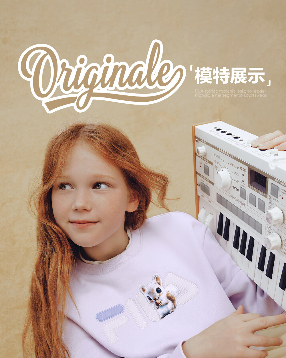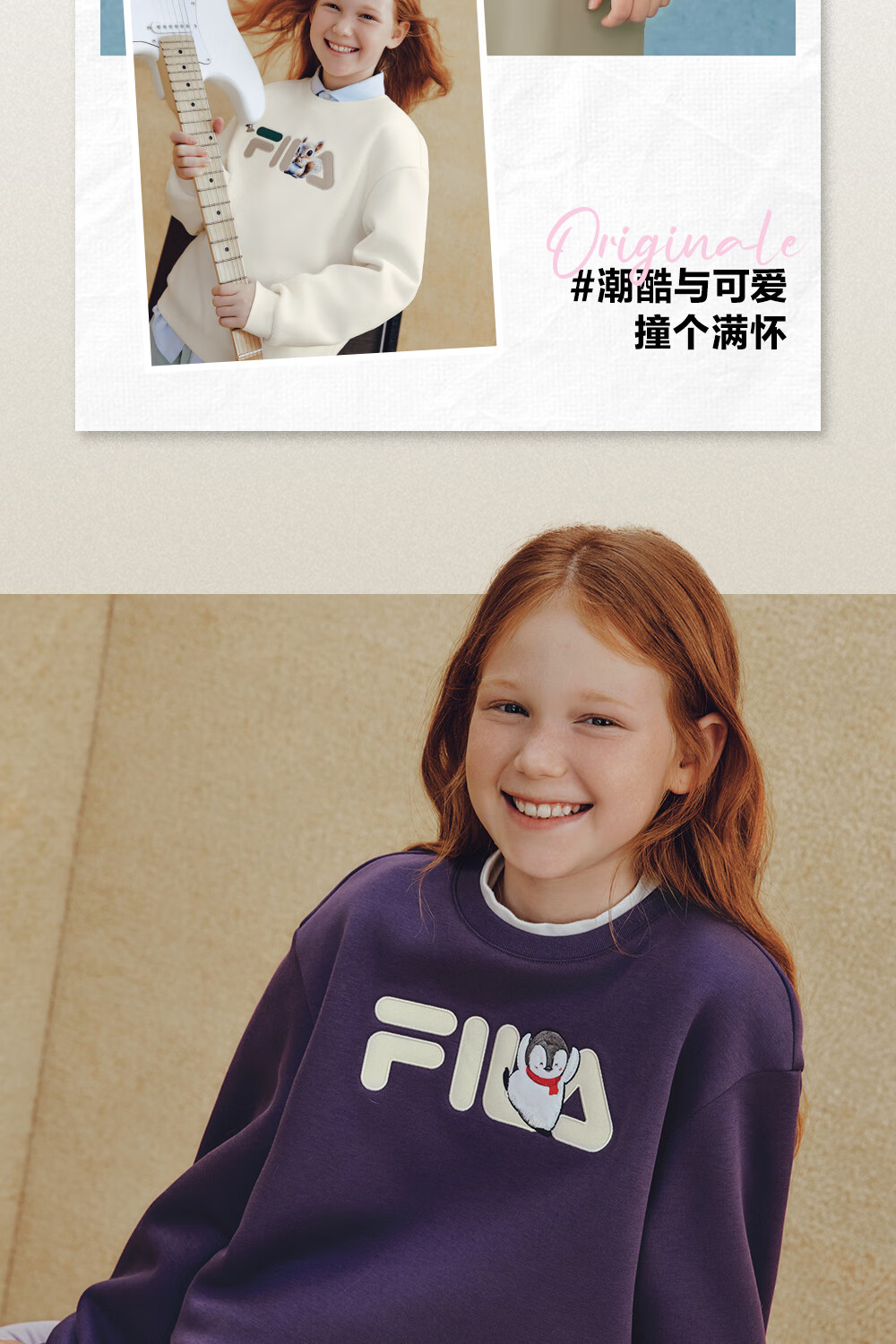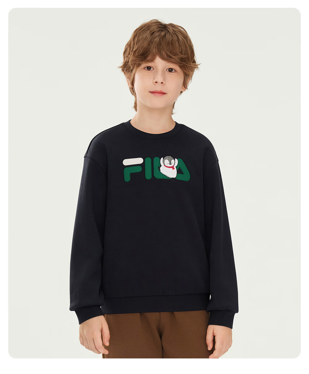 FILA【抗菌功能】斐乐儿童童装2025年冬季新款男女童小童加绒卫衣 樱花浅粉-PK 150