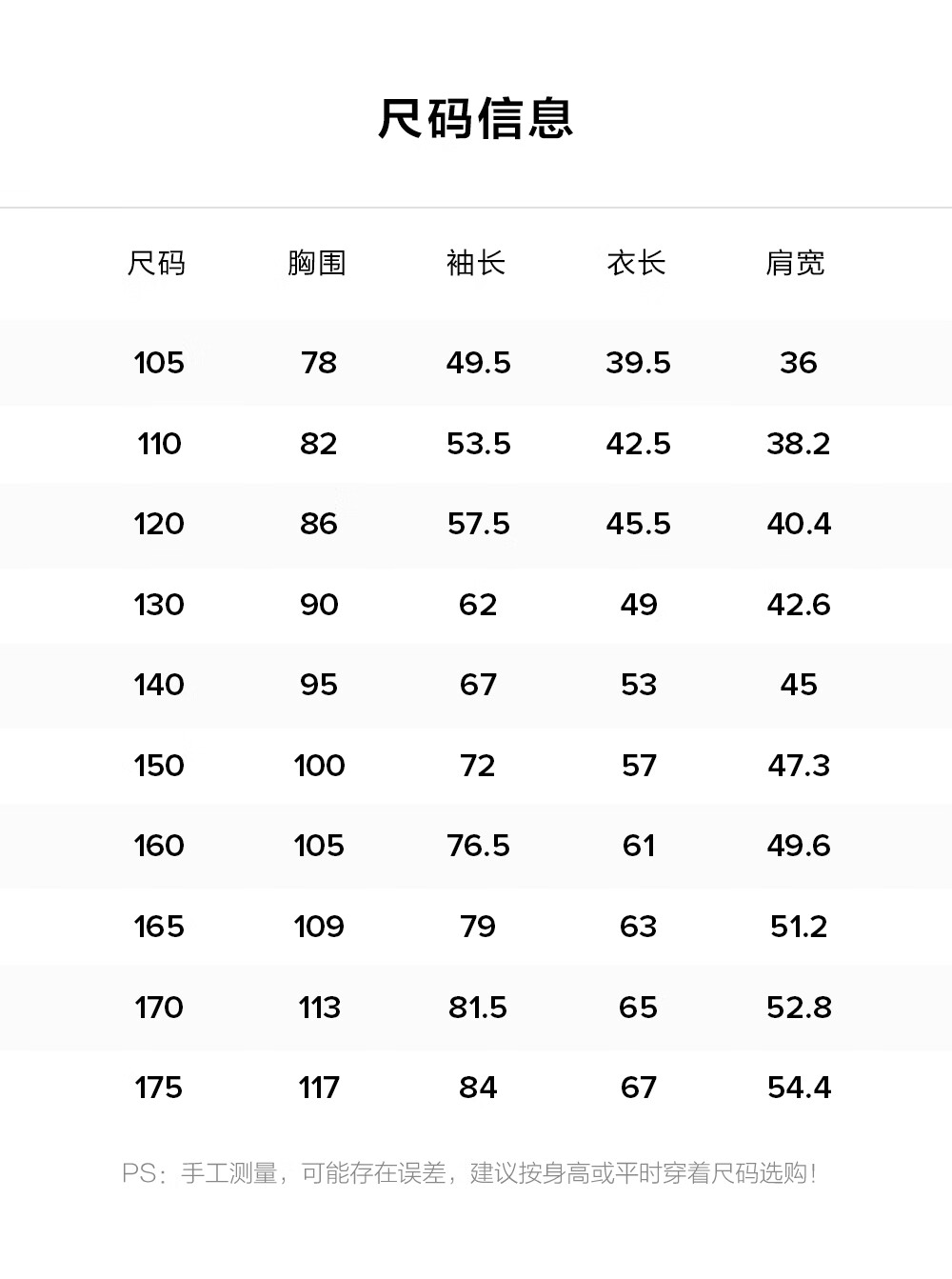 China (cm) 160-165/84-86 165-170 / 88-90 167-172 / 92-96 168-173 / 98-102 170-176 / 106-110