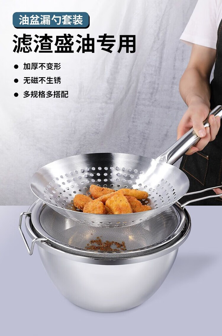 花沐禧304不锈钢漏勺特厚油炸家用厨师商用油鼓漏厨房过滤捞勺大号笊篱 【超厚304】1.5厚钢柄 22cm家用款