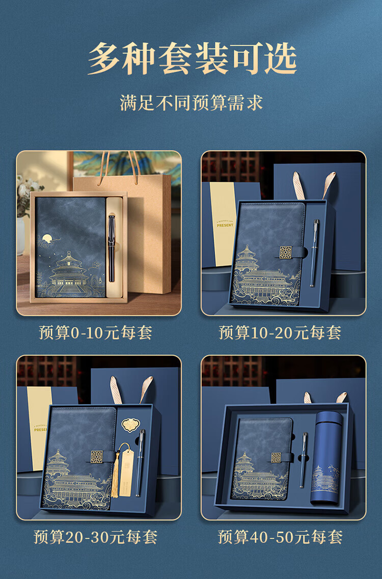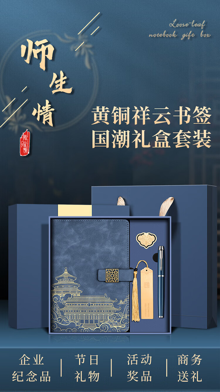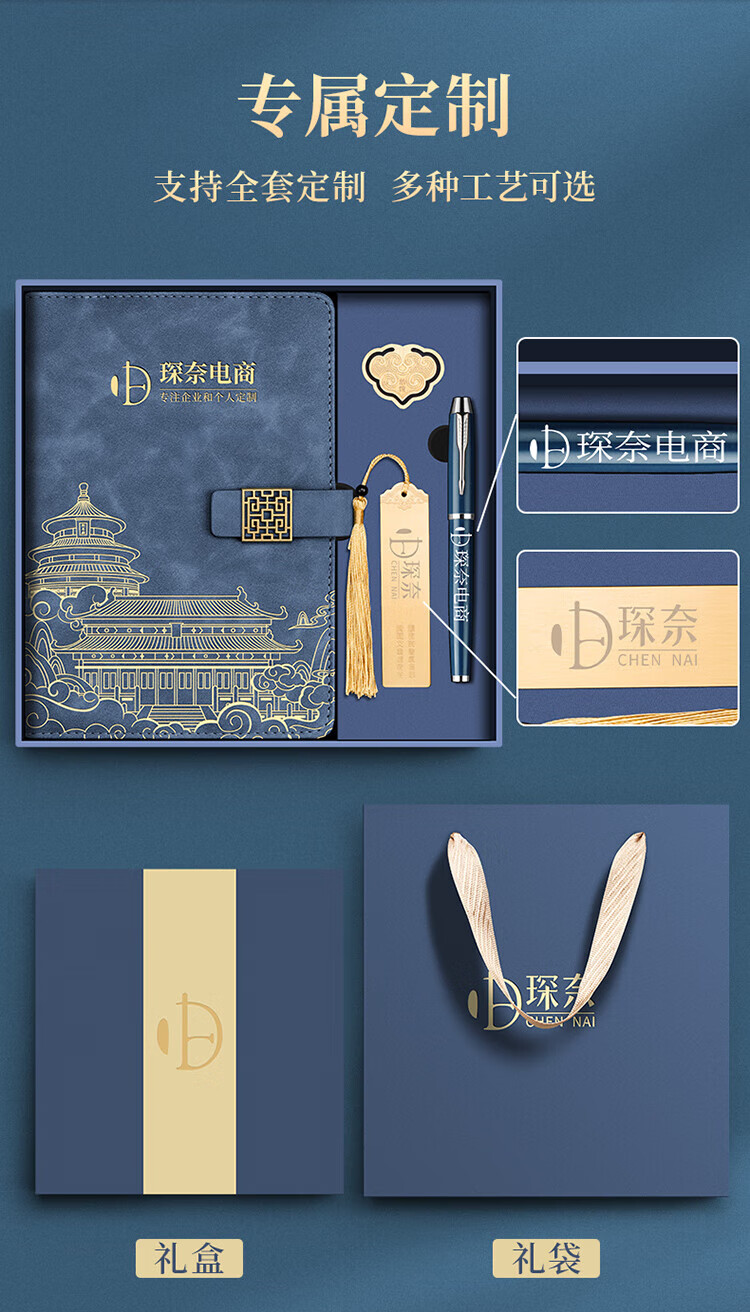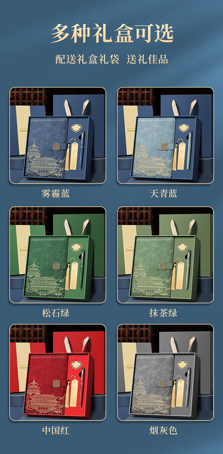 源提迪笔记本本子礼盒套装国潮风故宫书签文创记事本伴手礼商务纪念品送老师企业礼品公司礼物可定制 【牛皮纸礼盒】A5无扣款/中国红+签字笔