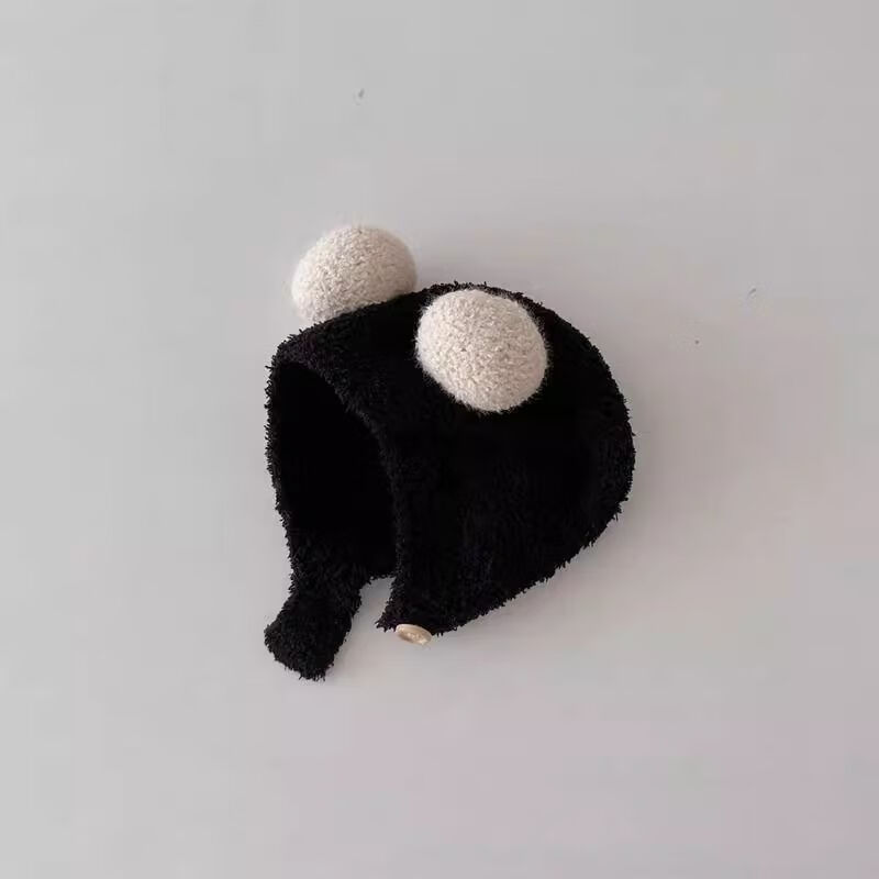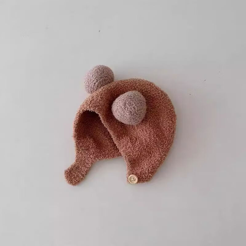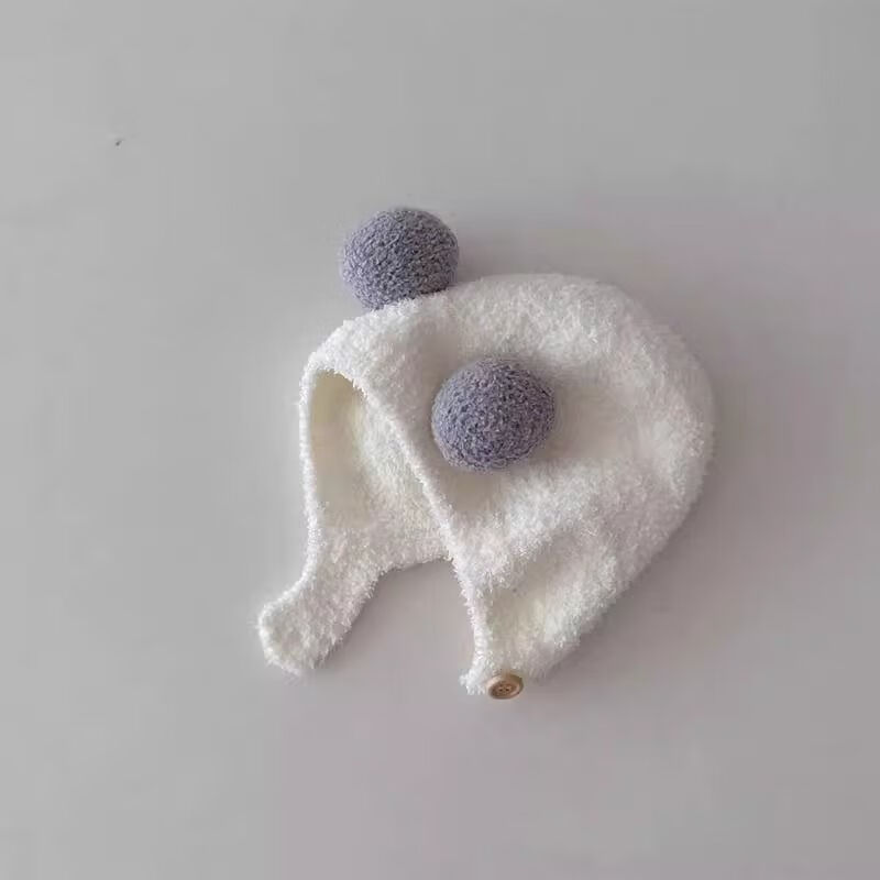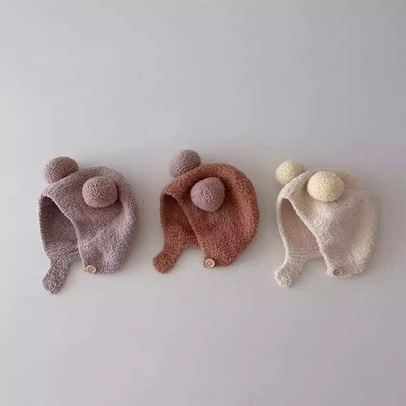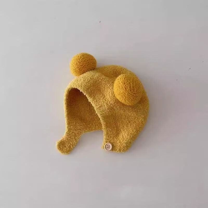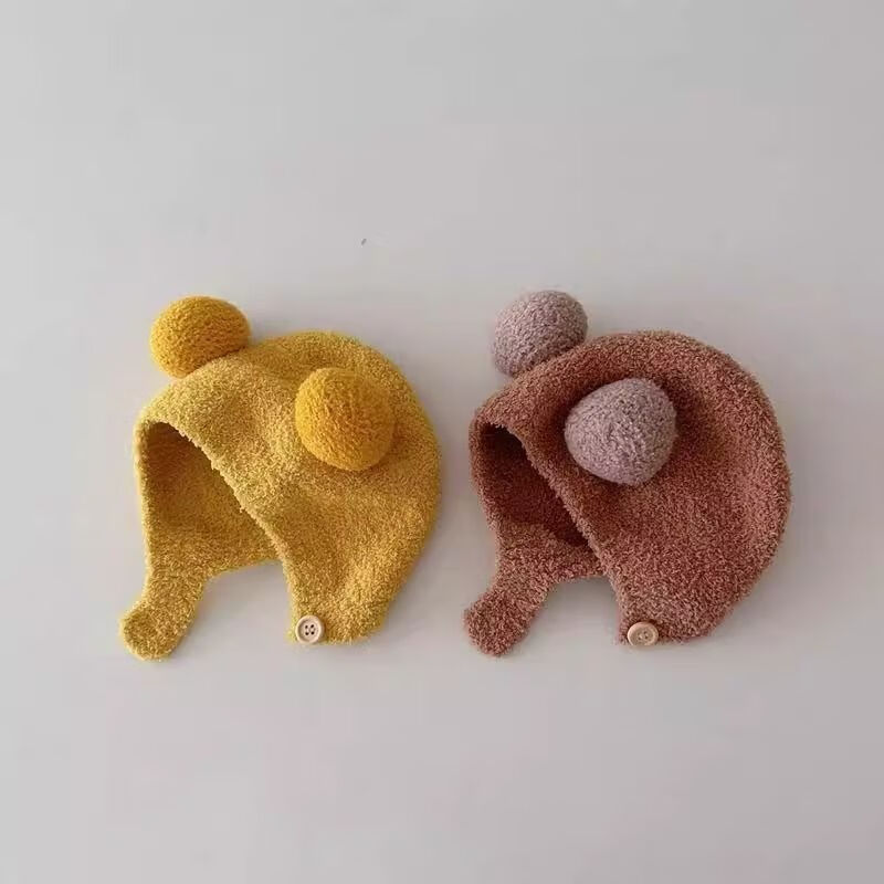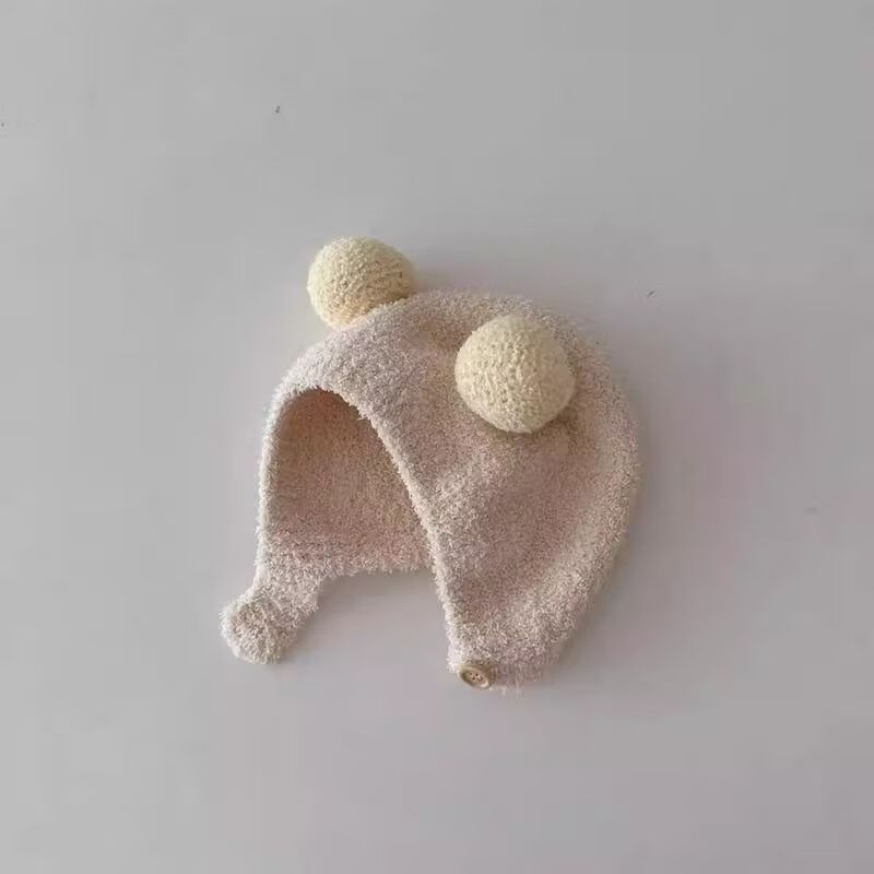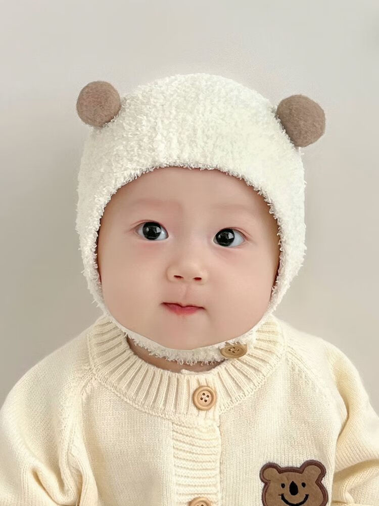 婴儿帽子秋冬款新生婴幼儿护耳帽纯棉可爱保暖男女宝宝针织毛绒帽 米色 3-18个月(38-45CM)