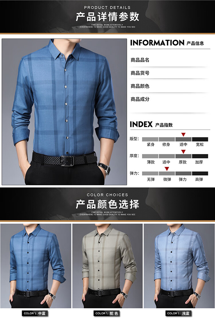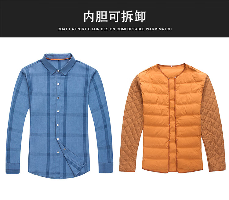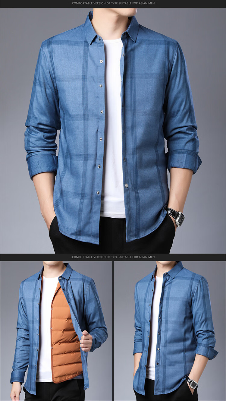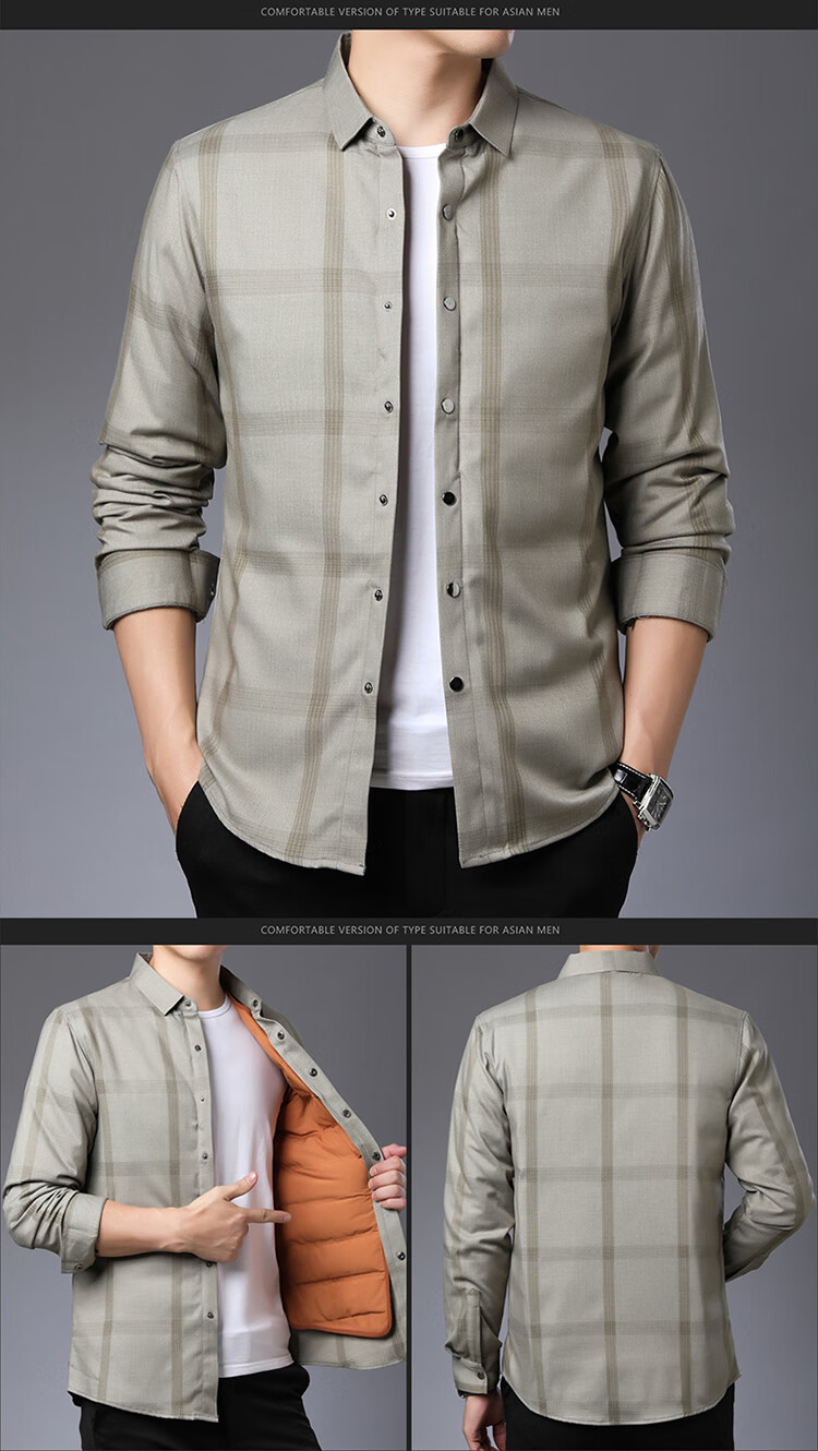 利郎男装长袖衬衫冬季加厚保暖可拆卸内胆男士休闲色衬衣潮 驼色9821(格子款) S 165/84A(建议95-120斤)
